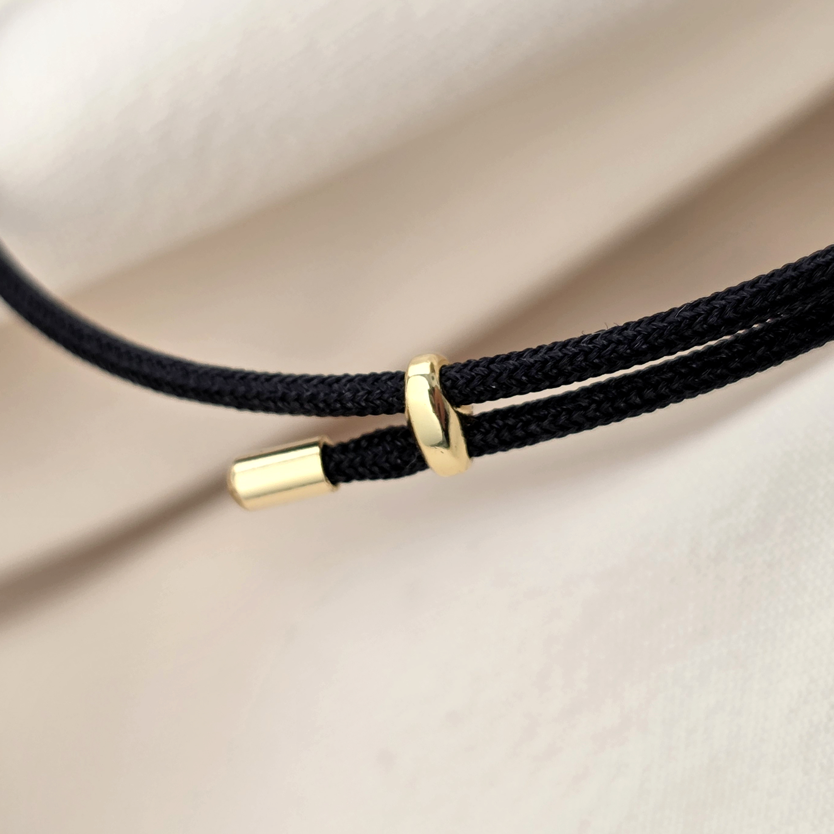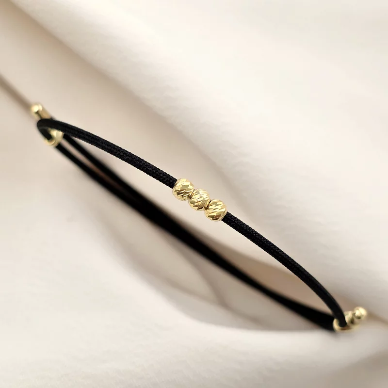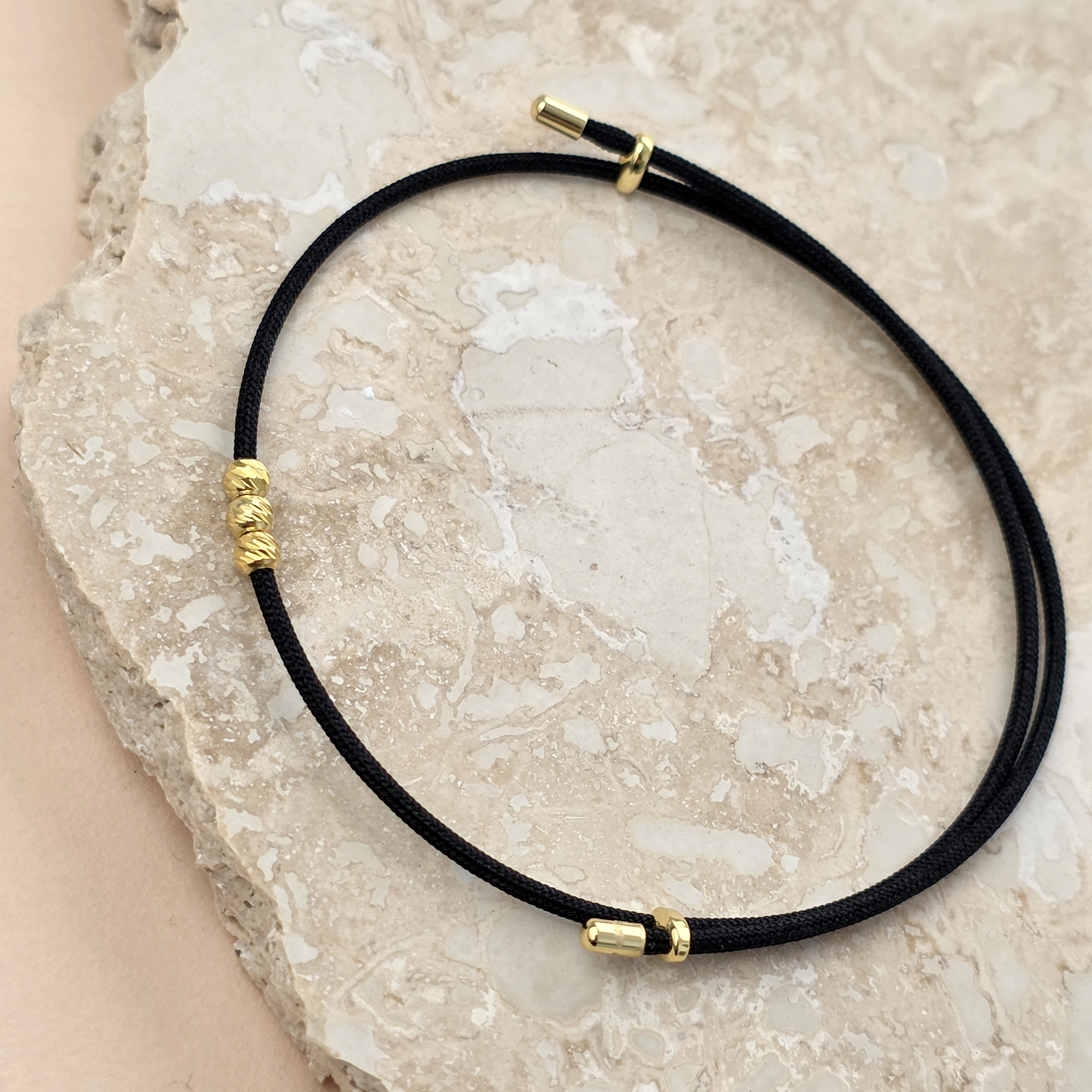 Șnurul gros adaugă un aer modern și casual, în timp ce cele 3 biluțe din Argint 925 placat cu Aur 18K oferă o notă luxoasă, discretă.
