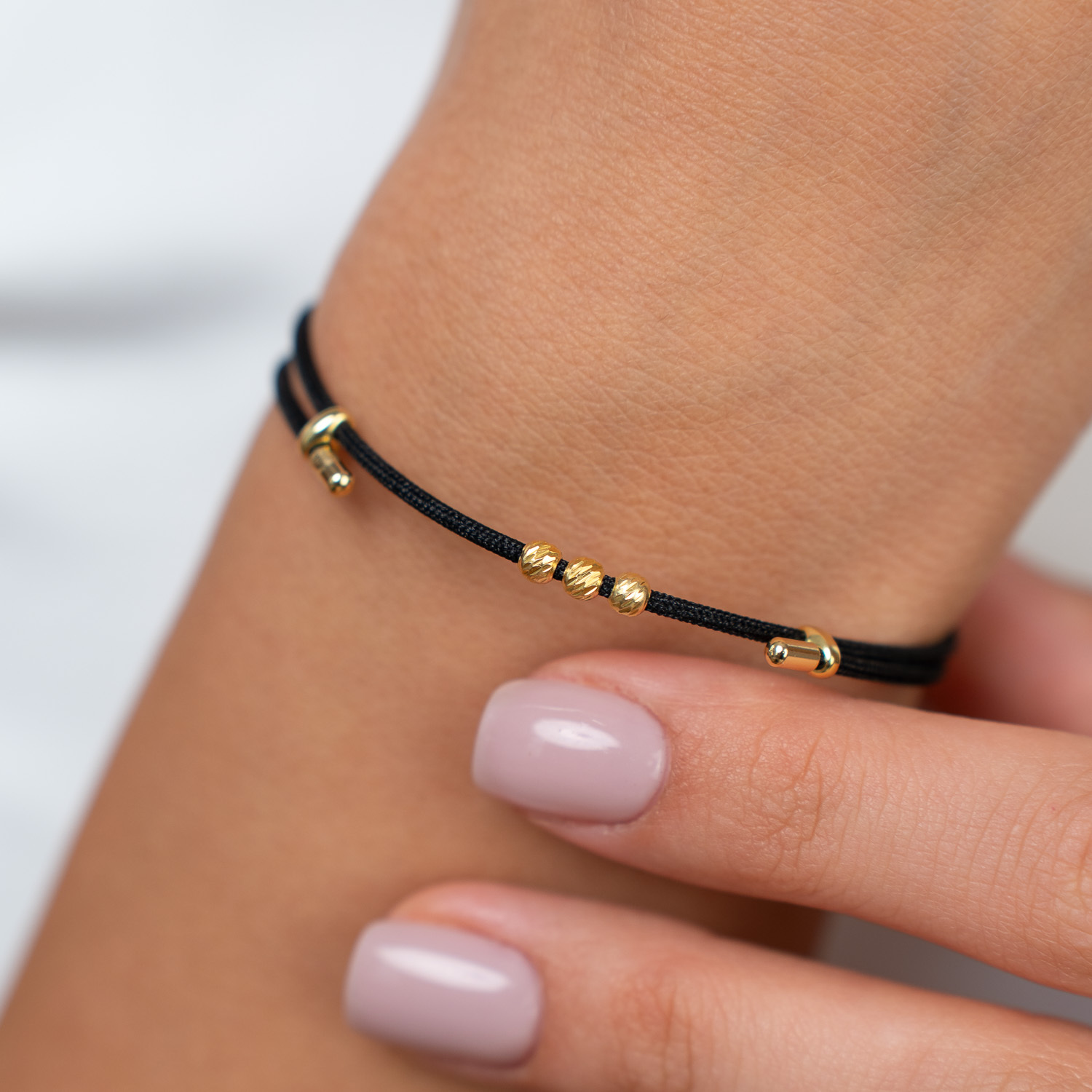 Brățară cu Șnur Gros și 3 Biluțe din Argint 925 Placat cu Aur Galben 18K