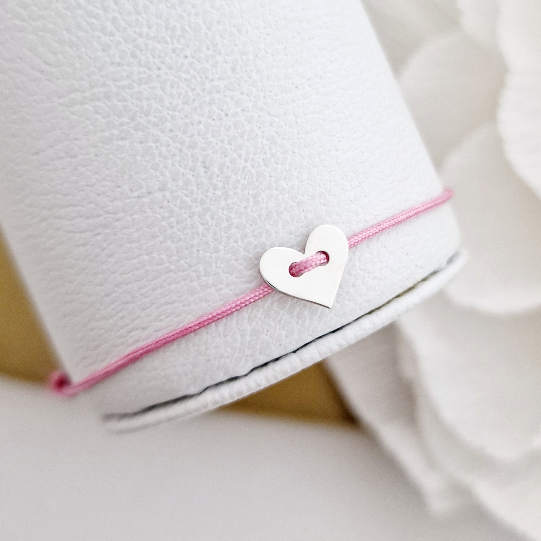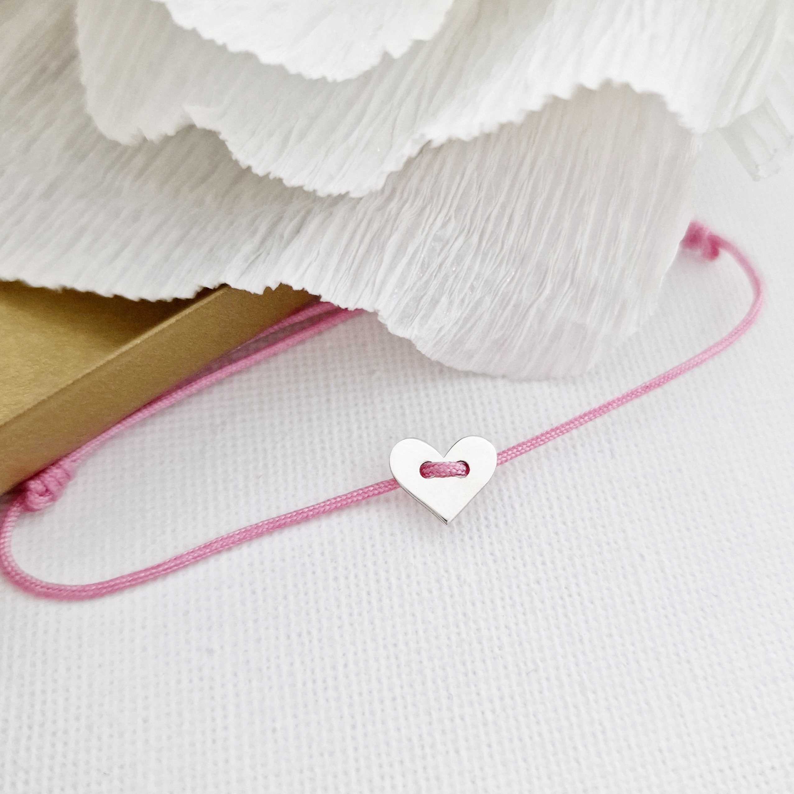 Bratara cu snur reglabil - Inima tip nasture - Argint 925