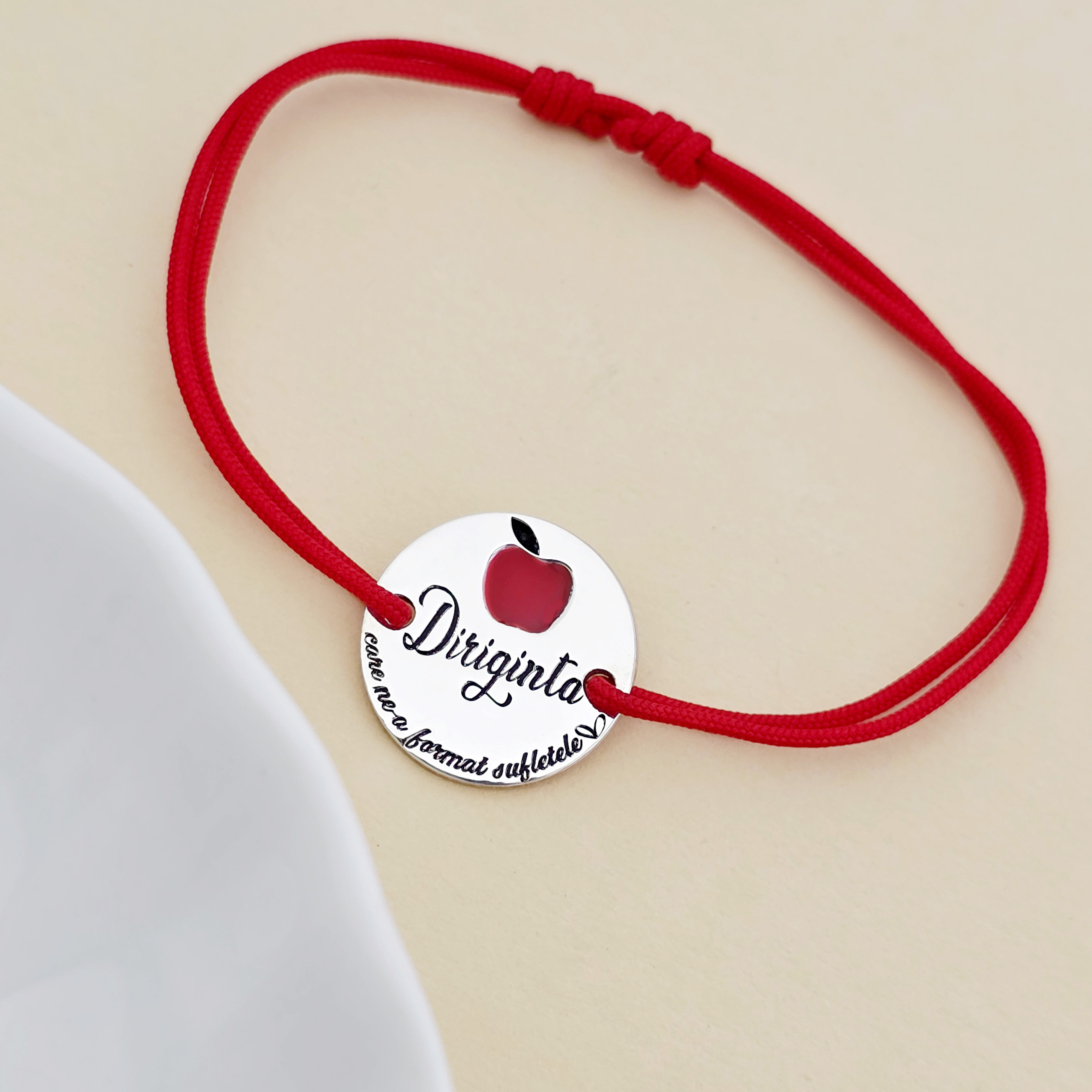 Această brățară este dedicată dirigintelui care ne-a ghidat și ne-a format pe drumul nostru, fiind un simbol al recunoștinței și respectului. Realizată din argint 925 și email roșu, brățara are un design elegant și emoționant, perfectă pentru a păstra amintirile celor mai importante momente din școala. Snurul reglabil asigură un confort deosebit, potrivindu-se oricărei încheieturi.