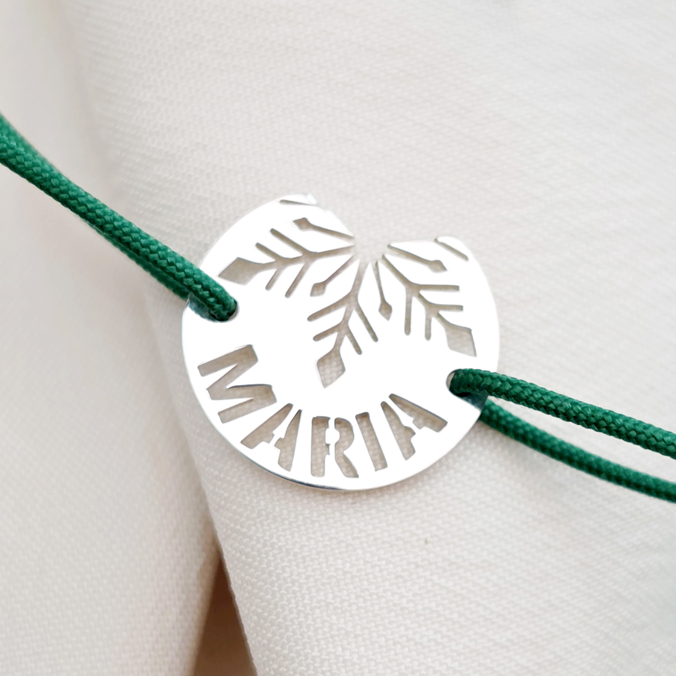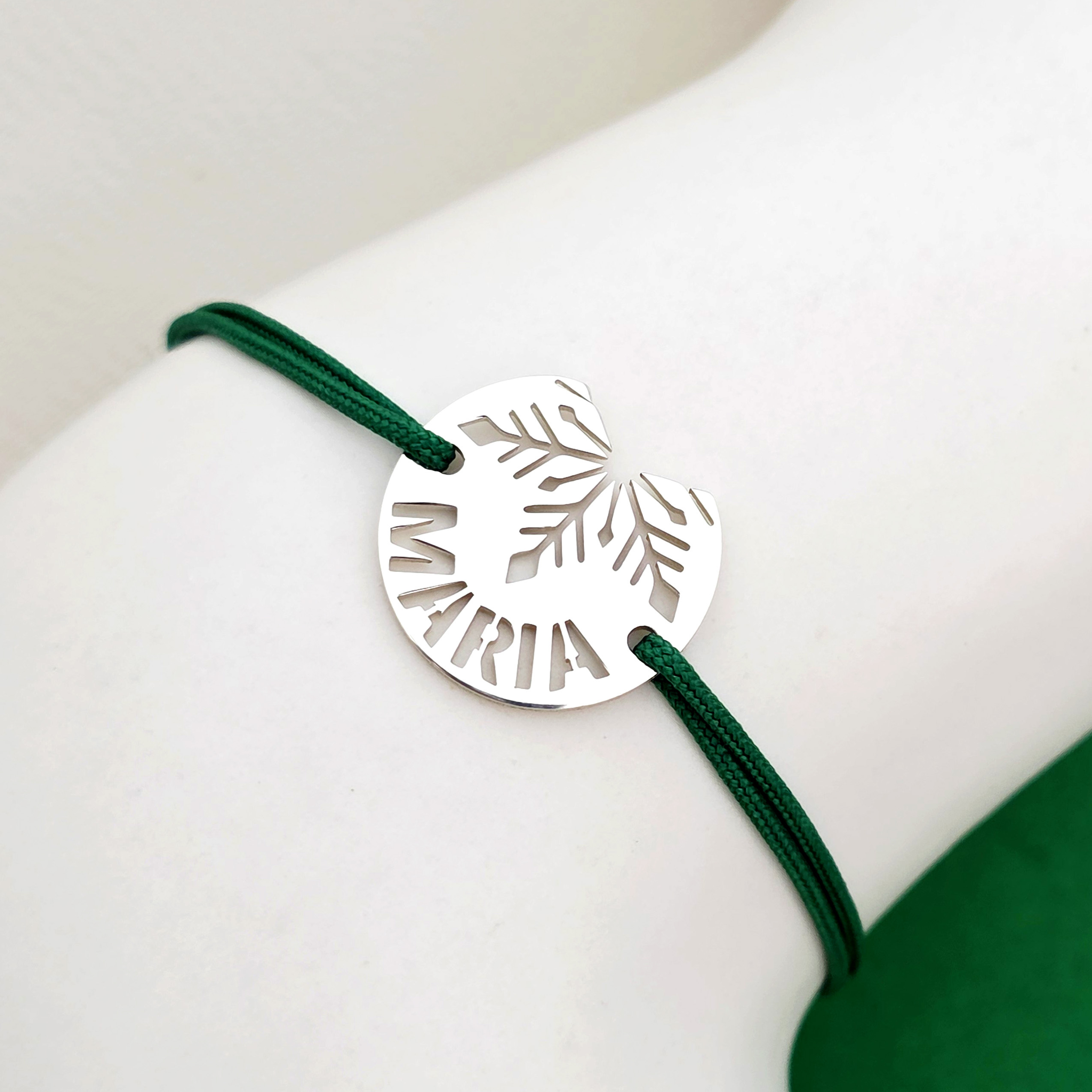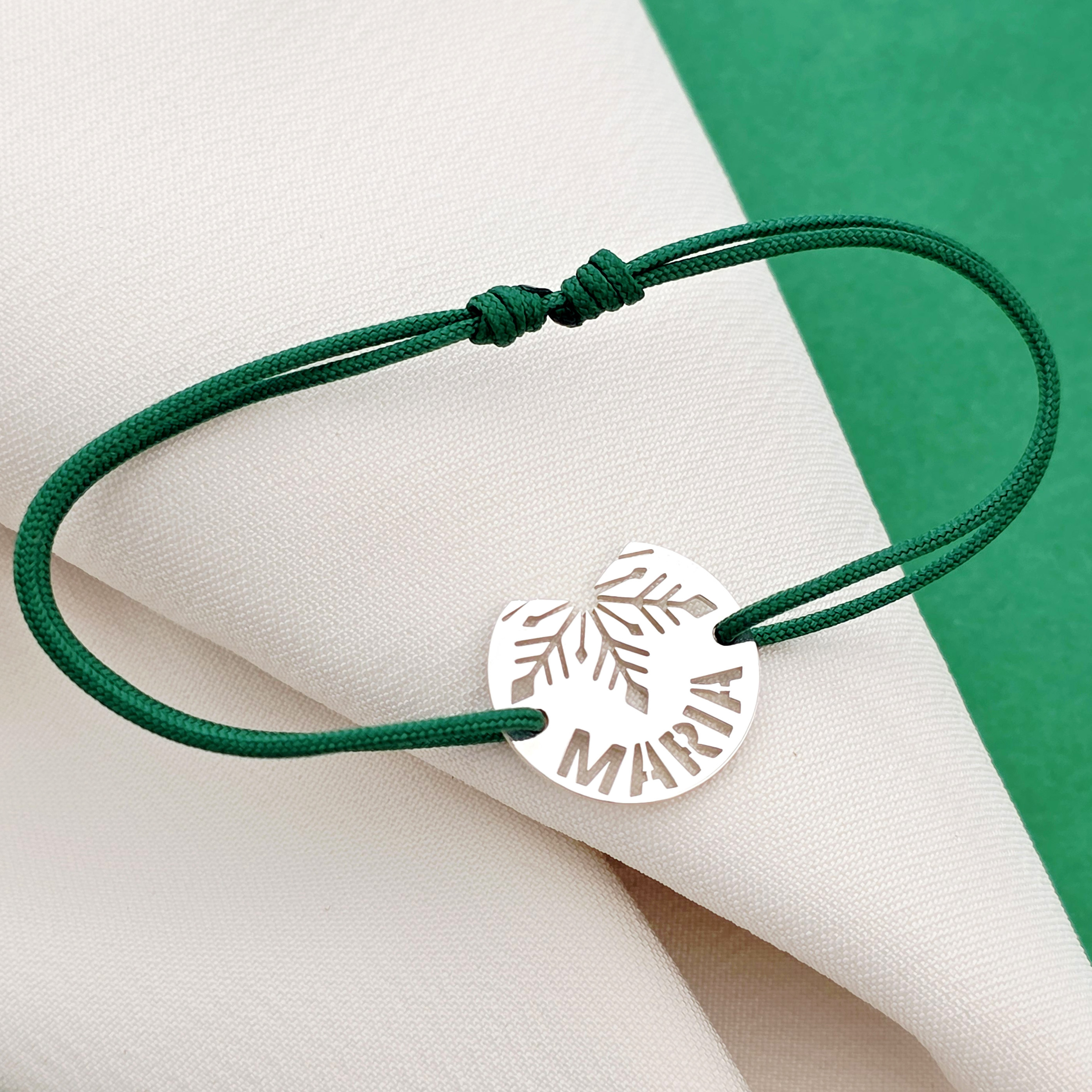 Bratara festiva - Disc cu fulg si nume decupat - Argint 925 - Snur reglabil