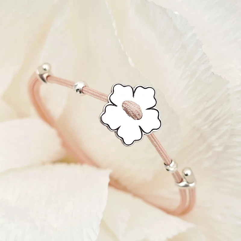 Brățara cu floare cu 5 petale este realizată din Argint 925, având un design fin și plin de simbolism. Șnurul roz gros, completat de două biluțe decorative, oferă un aspect jucăuș și modern, perfect pentru purtare zilnică. Această bijuterie adaugă o notă de prospețime și eleganță oricărei ținute.