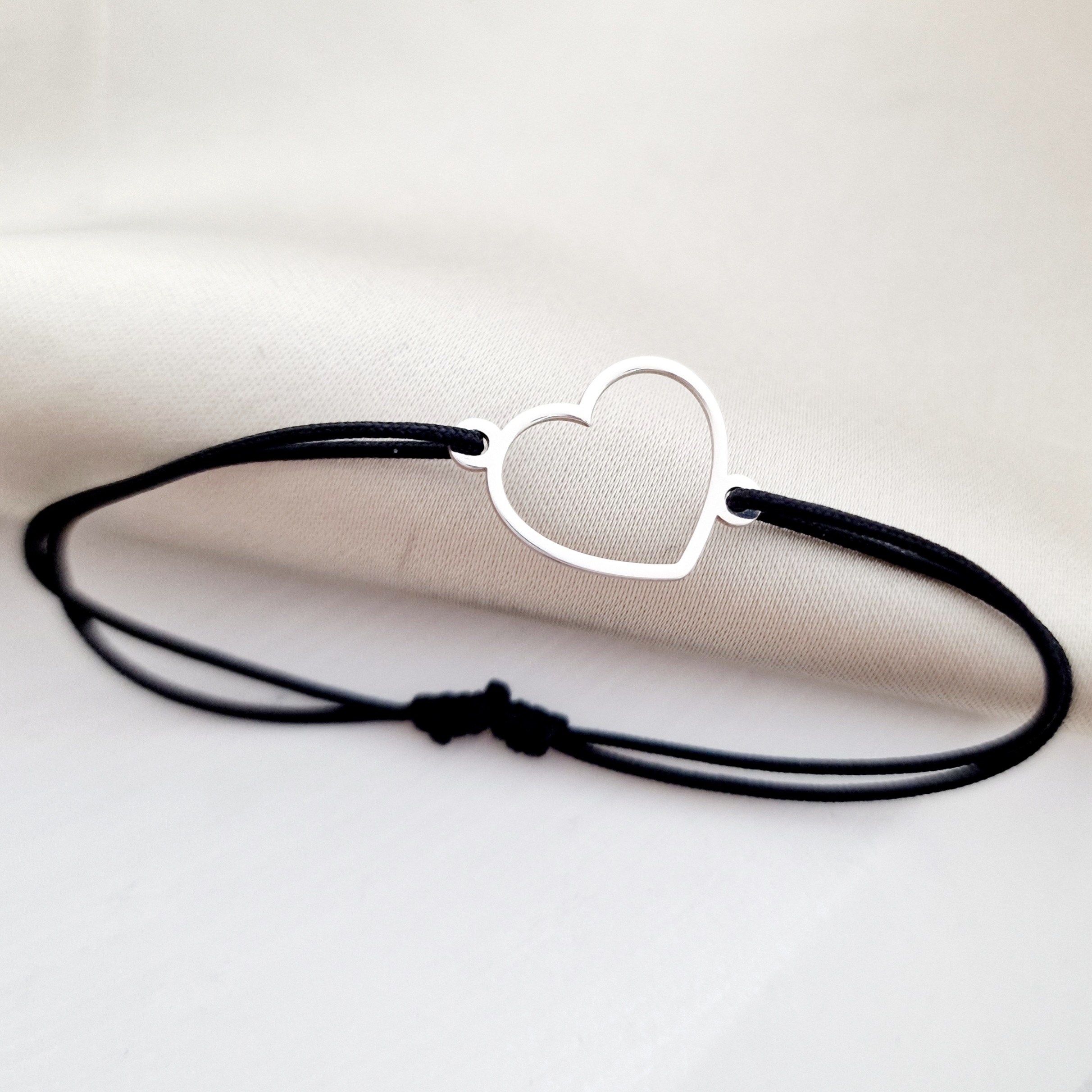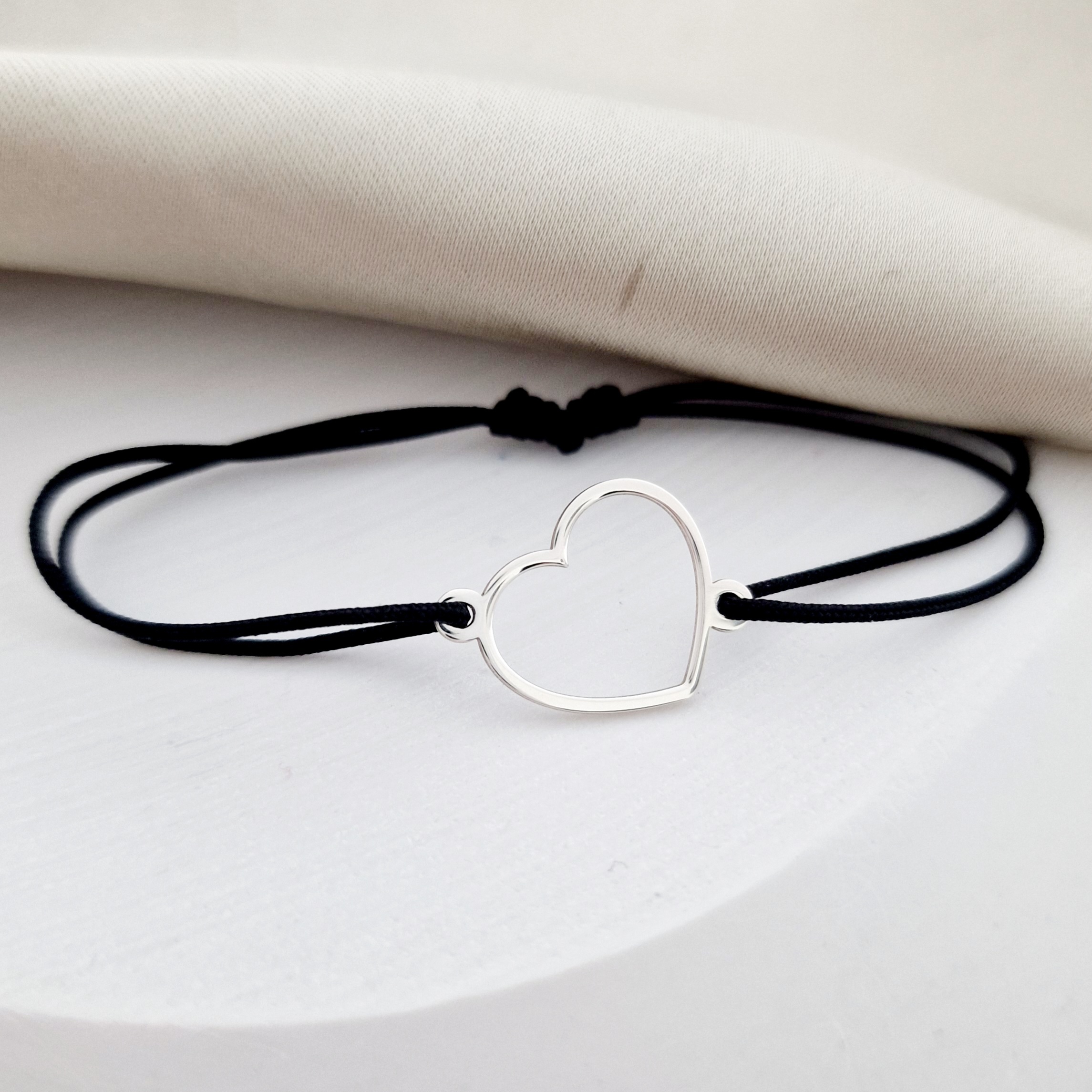 Bratara Forma Inimii - Argint 925 - snur reglabil diverse culori