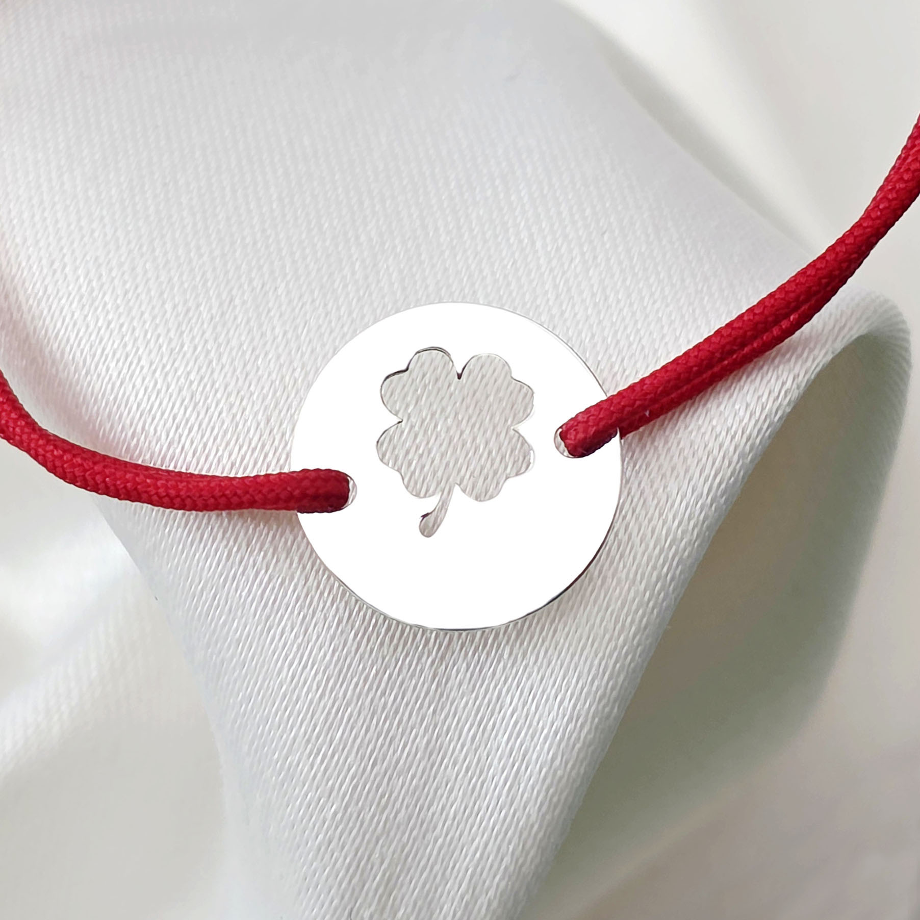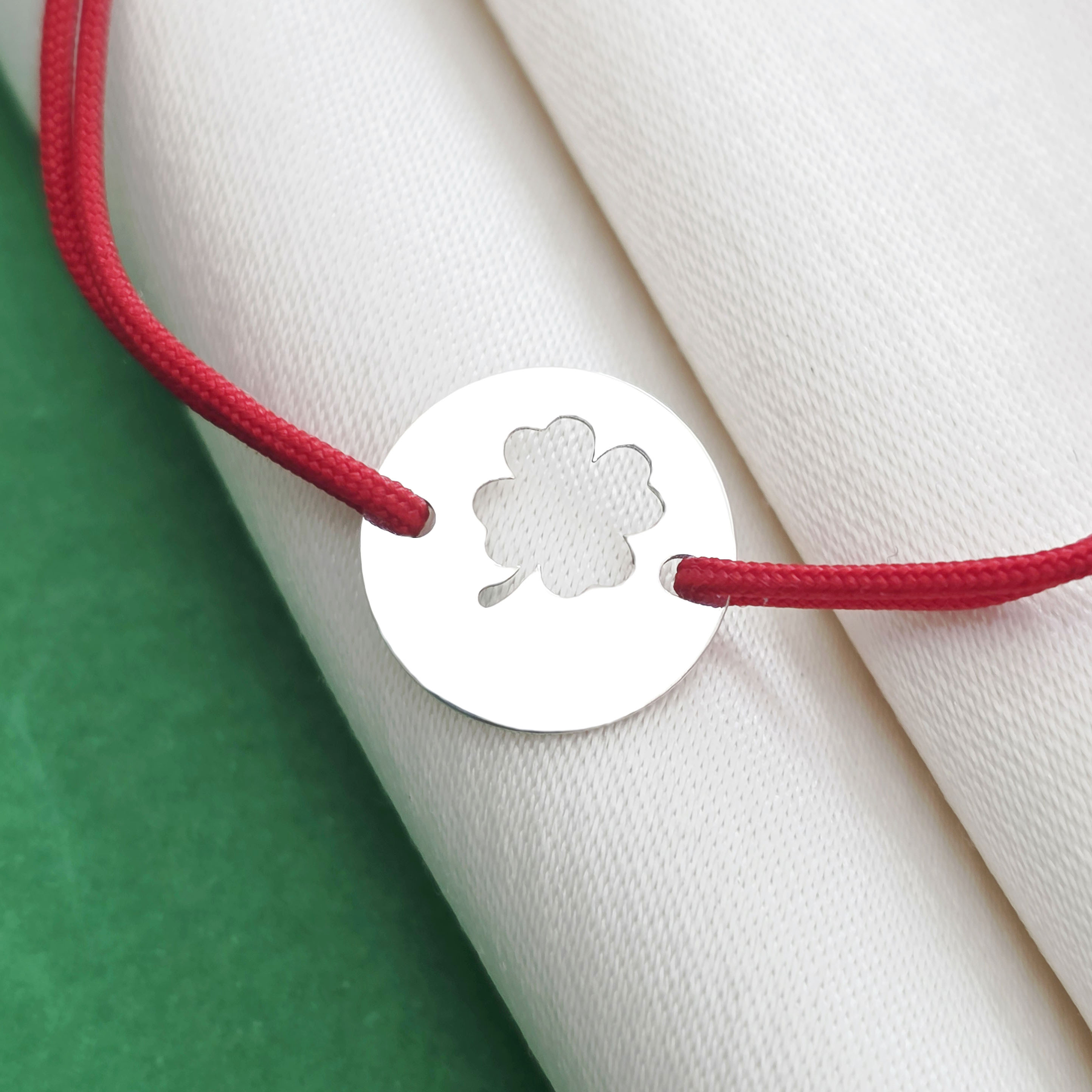 Bratara Good luck - Trifoi decupat si nume - Argint 925 - Snur reglabil, diverse culori