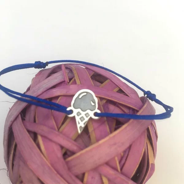 Simpatica bratara este creata din Argint 925 prin taiere si gravare laser in atelierul nostru. Snurul reglabil este din matase vegetala.