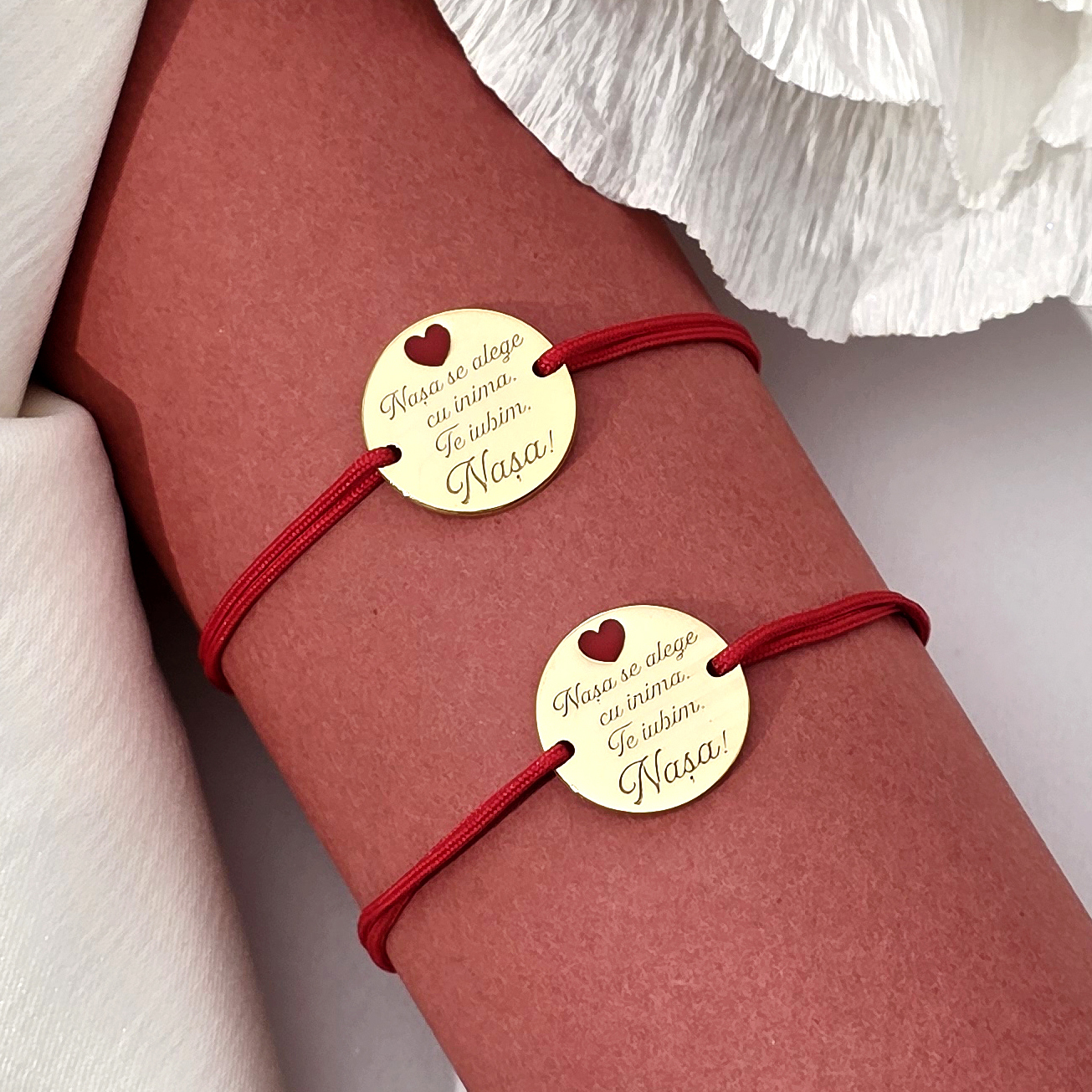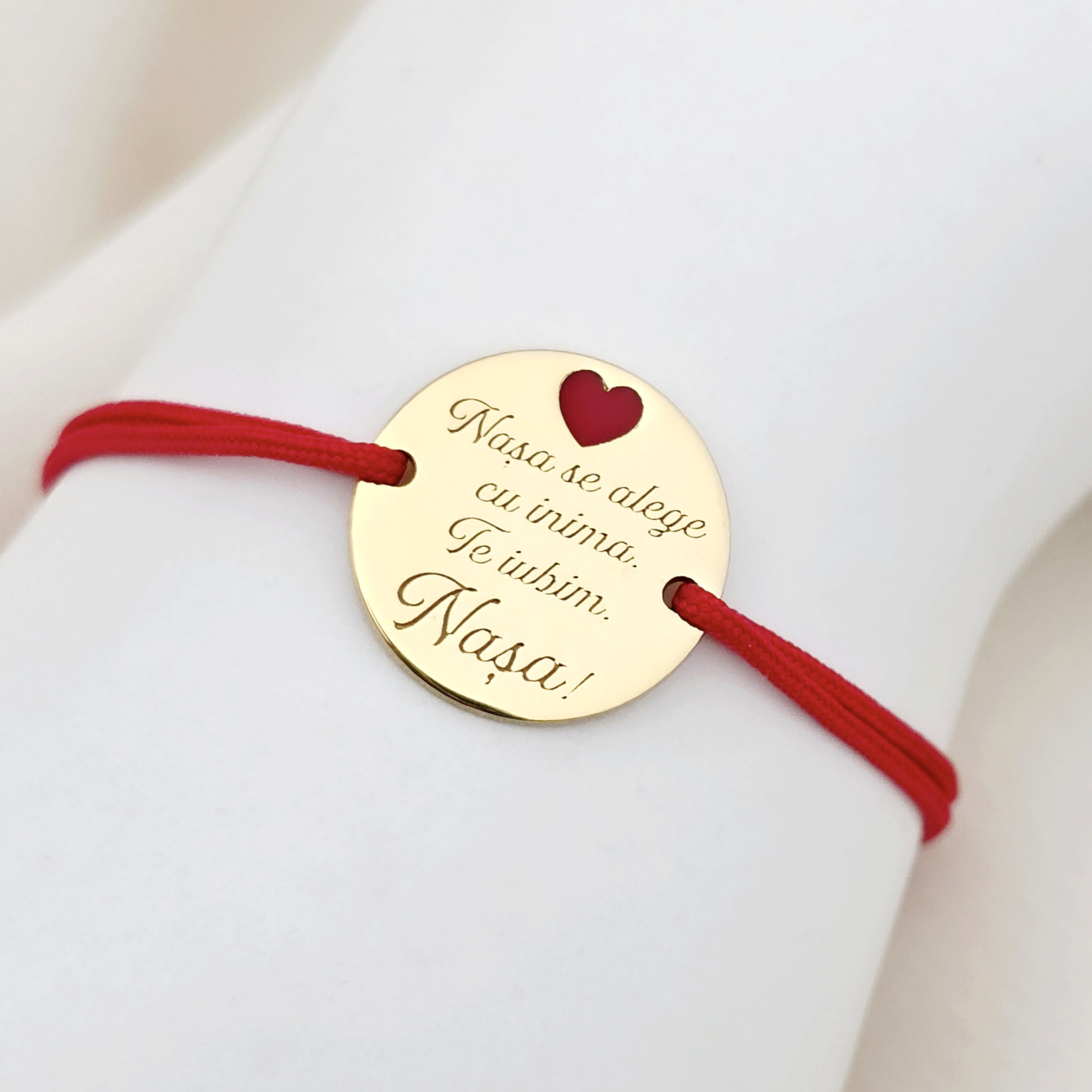 Bratara Nasa mea - Argint 925 placat cu Aur Galben 18K - Inimioara cu email rosu - Snur reglabil, diverse culori