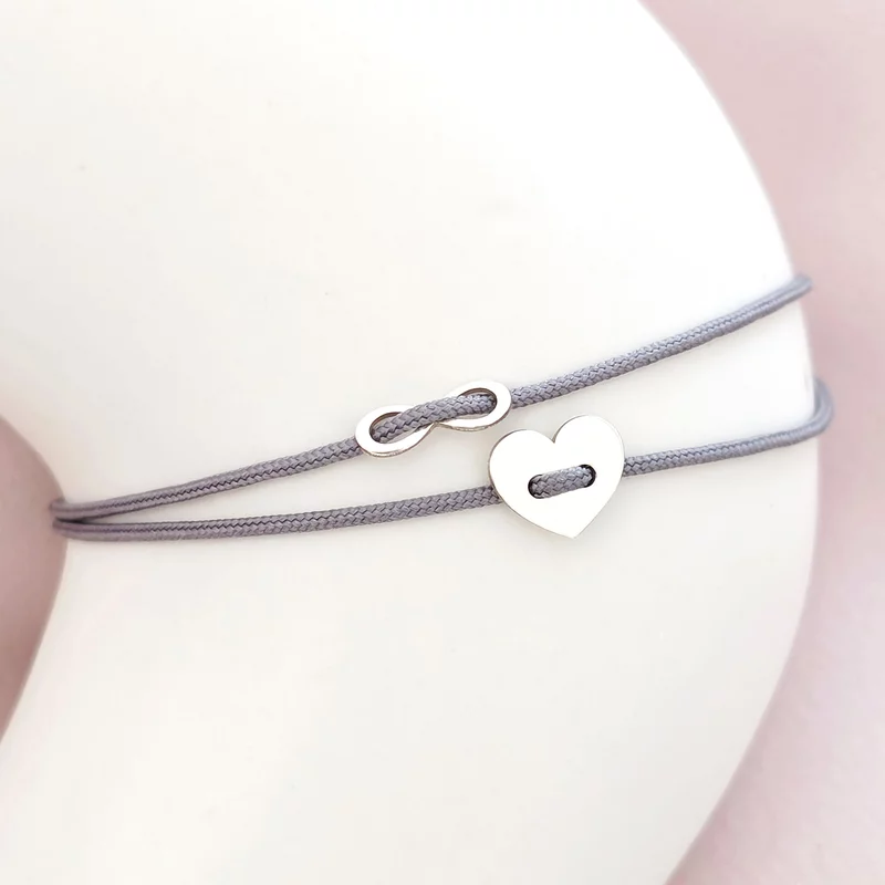 Ofera-i cuiva inima ta, sau doar o bratara cu o inima si un infinit impletite pe un snur al iubirii. Aceasta frumoasa bratara este distractiva si perfecta pentru purtarea de zi cu zi. Pentru a face aceasta bratara si mai speciala, selectati una dintre numeroasele optiuni de culoare pentru snur!