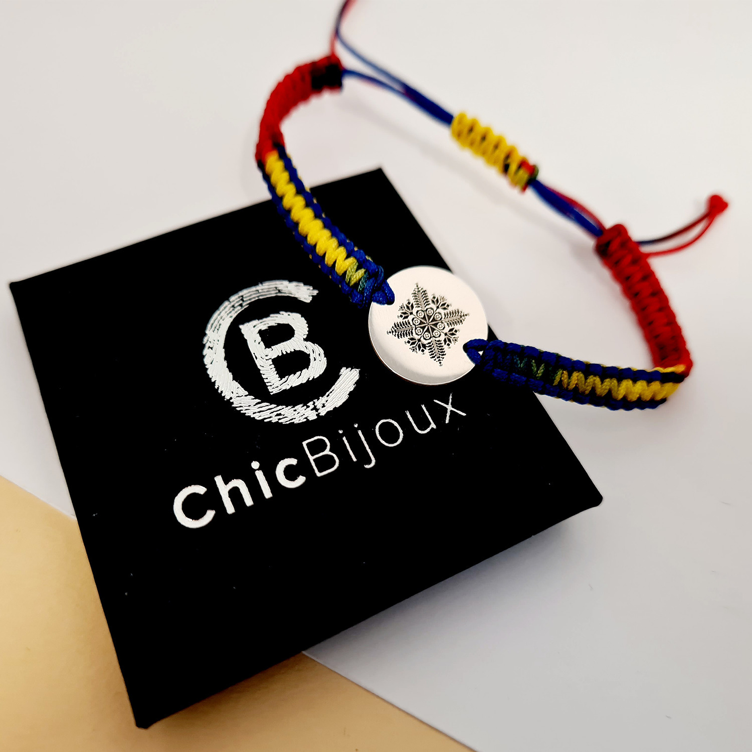Snurul impletit creaza tricolorul tarii noastre, astfel intreaga bijuterie devine un simbol al mandriei nationale. De asemenea, bratara poate fi un cadou minunat de 1 Decembrie, Ziua Nationala a Romaniei.