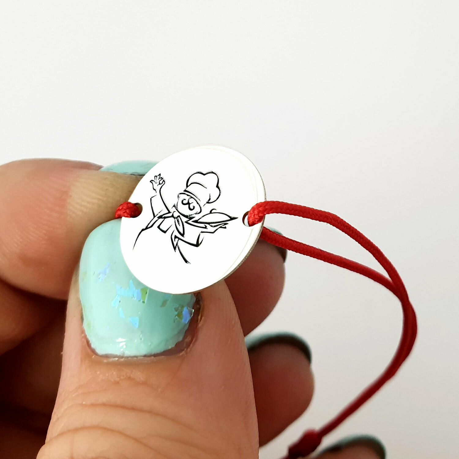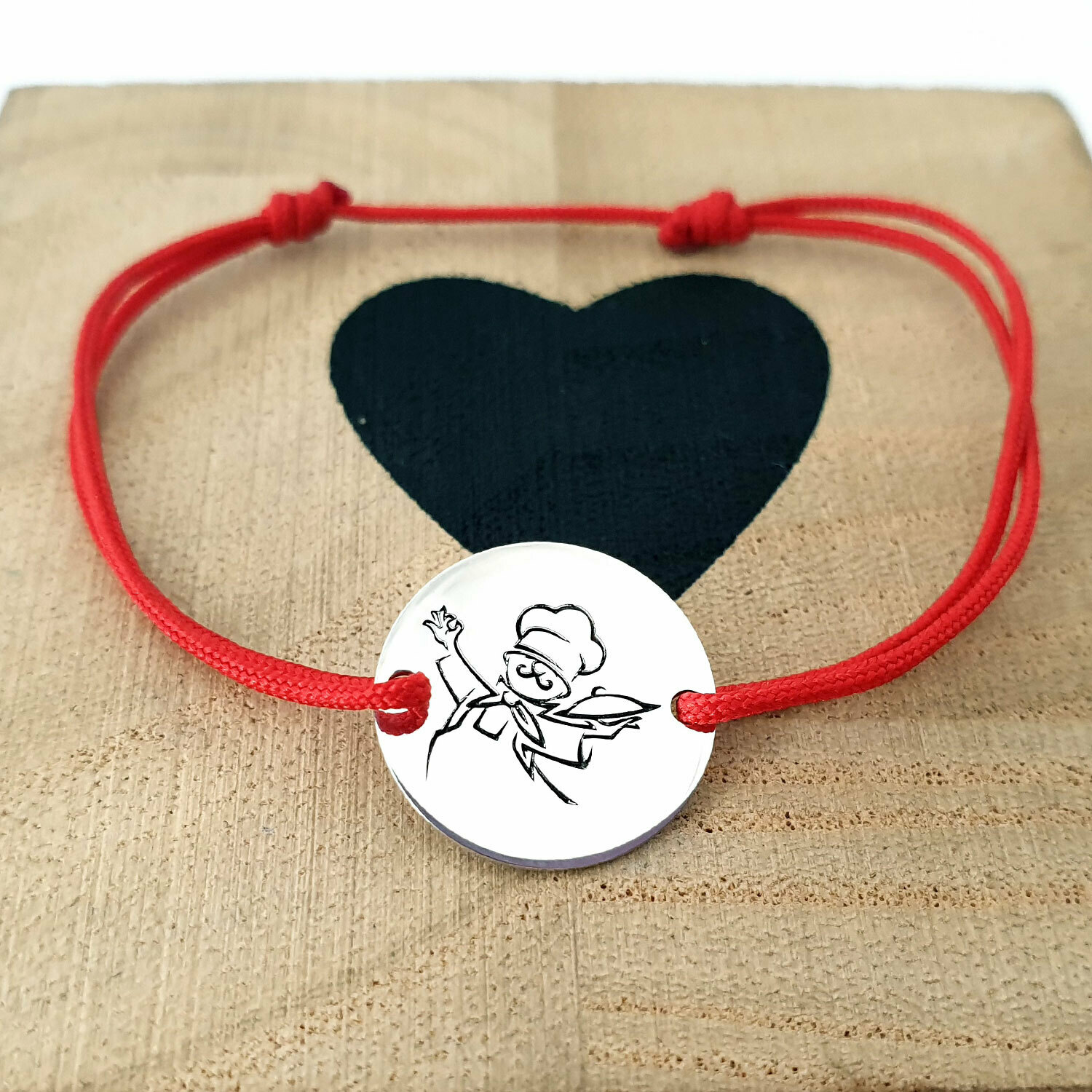 Bratara personalizata - Bucatar Master Chef - banut de 15 mm - Argint 925 - snur reglabil