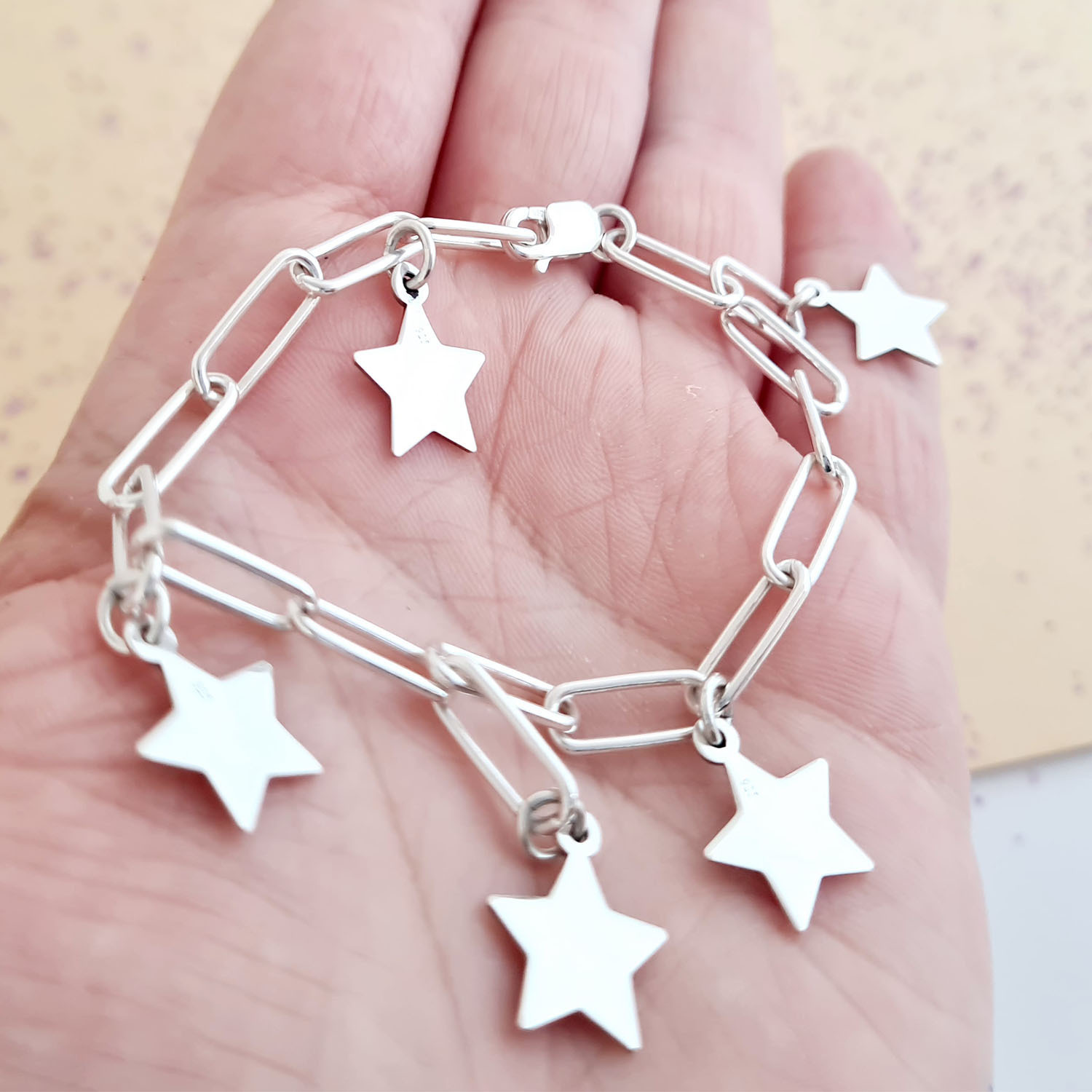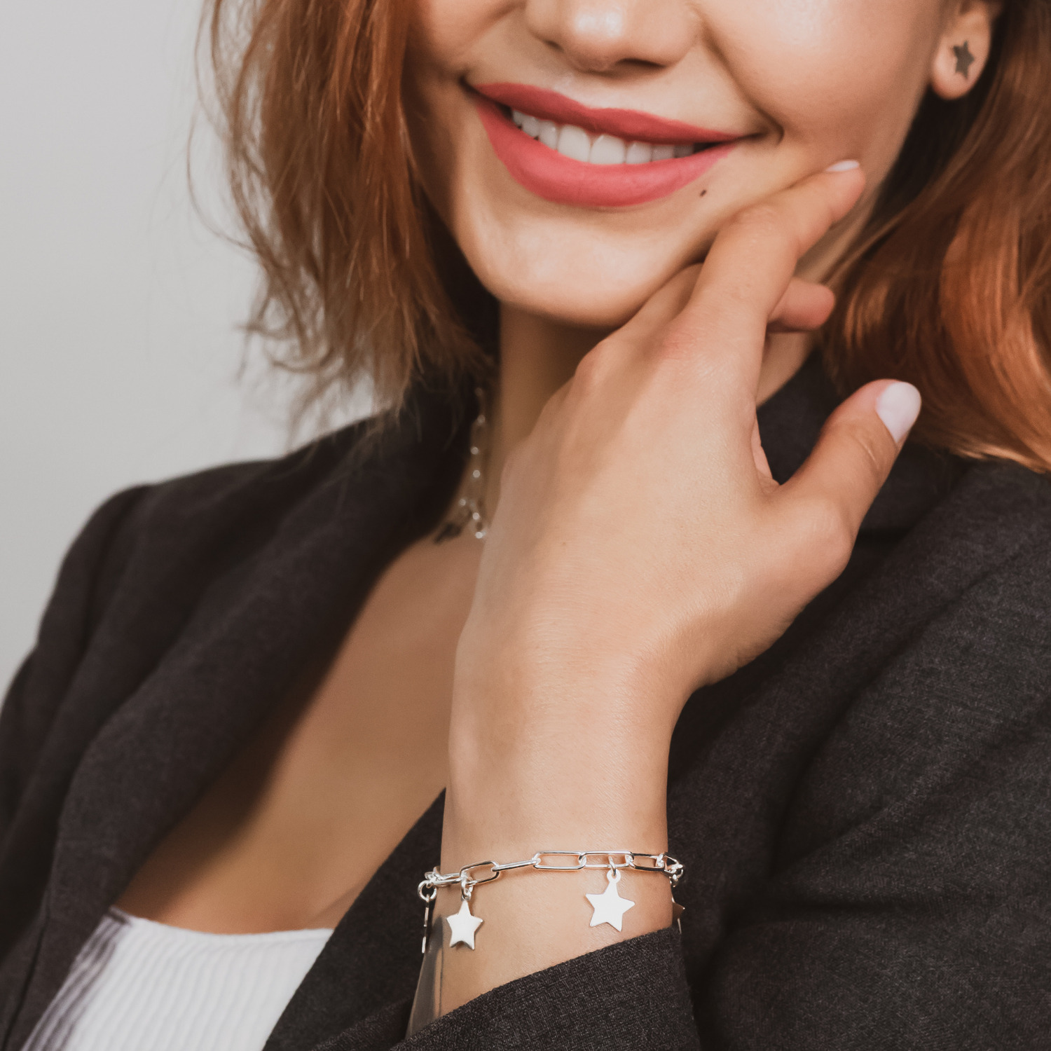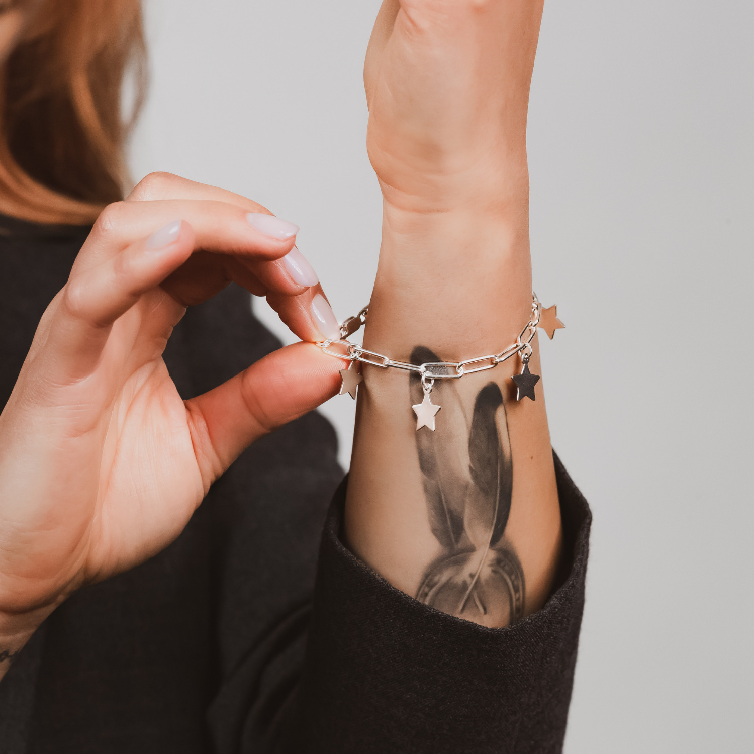 - Poti alege sa pui pe bratara 3, 5, 7 sau 9 pandantive stelute. Primele 3 stele intra in pretul expus.