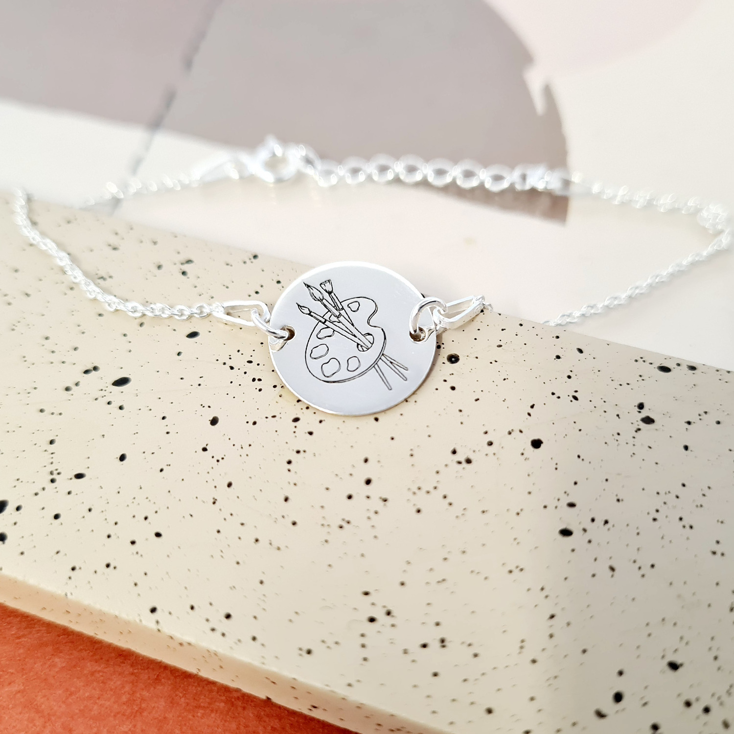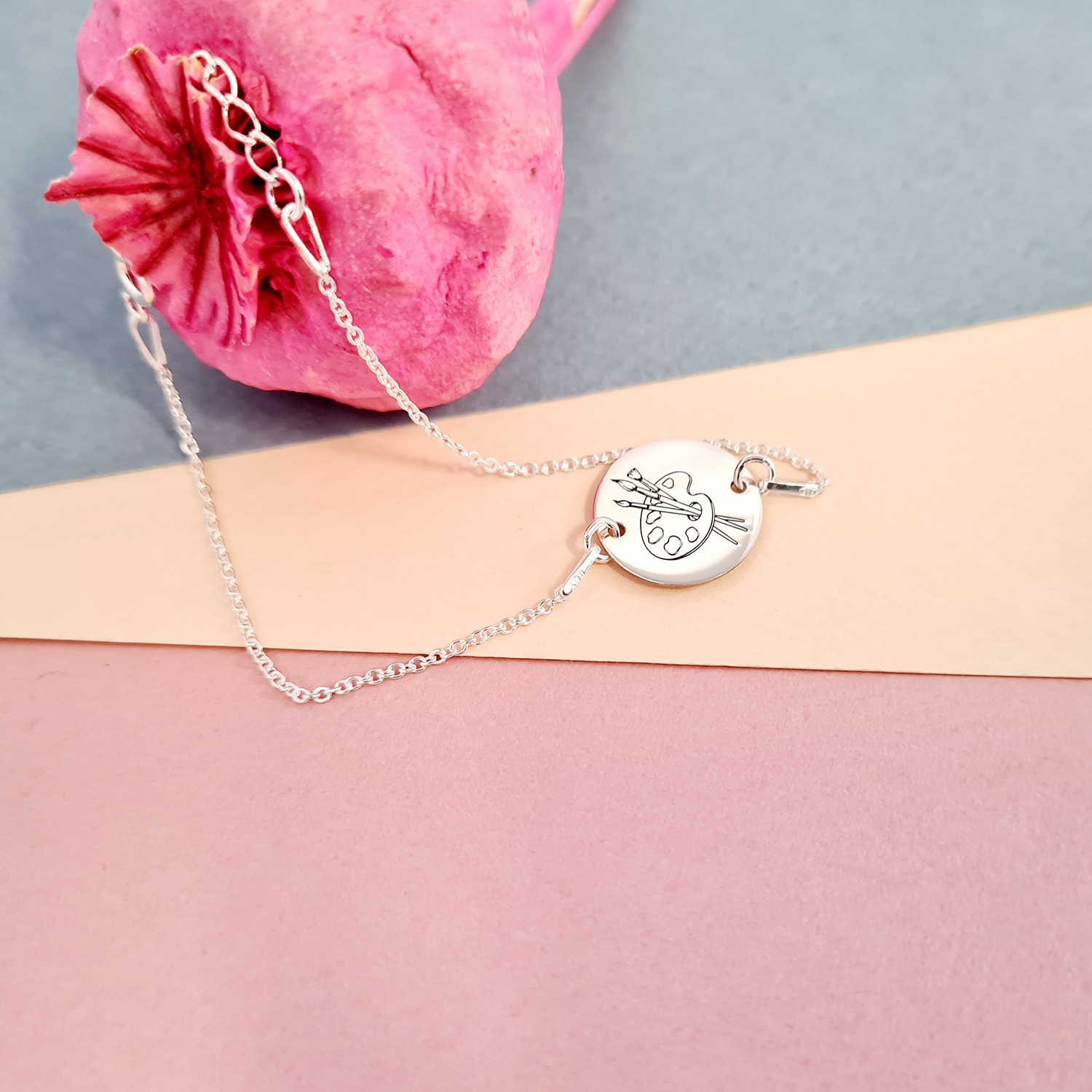 Bratara personalizata cu simbol materie scoala - Desen - Banut de 15 mm cu lantisor - Argint 925