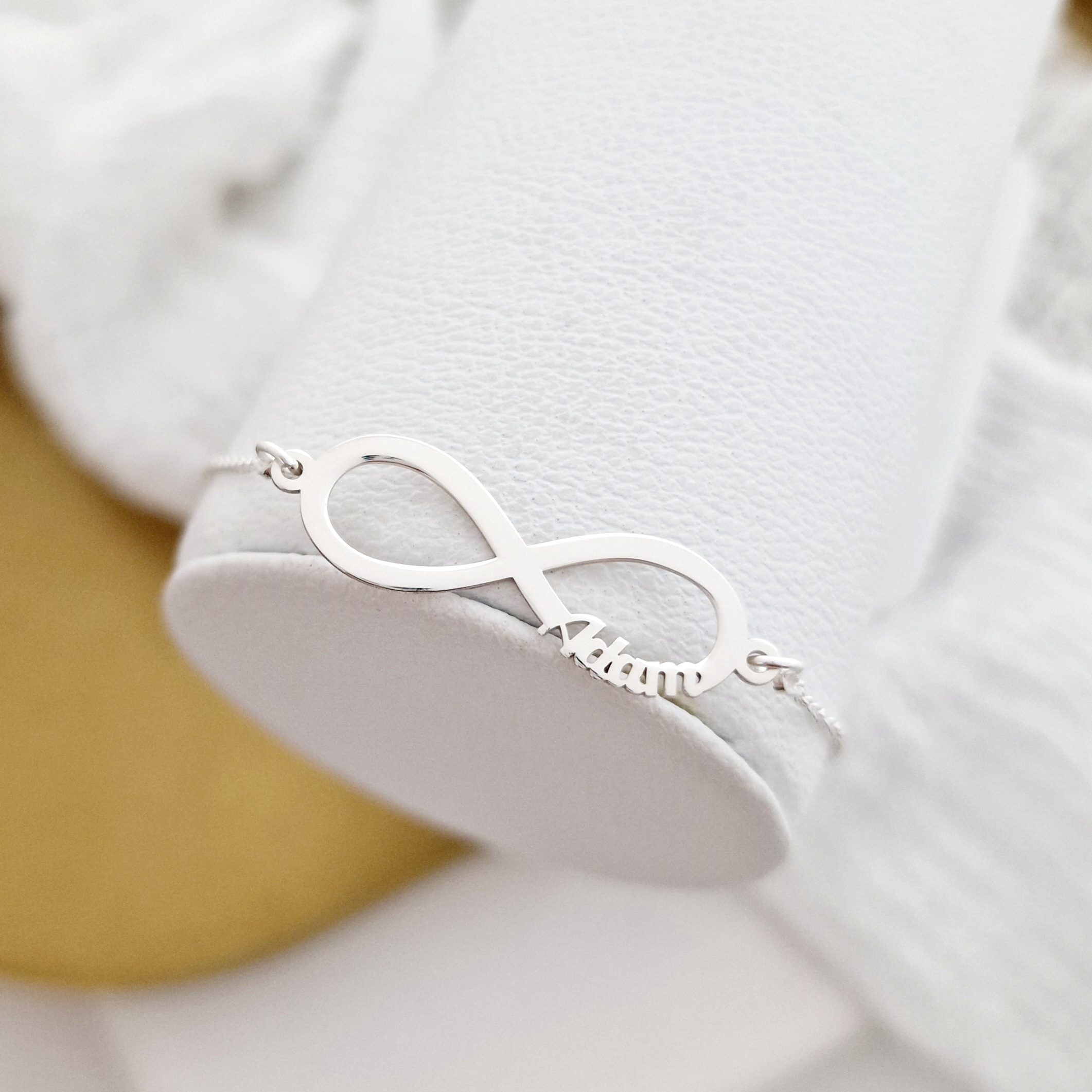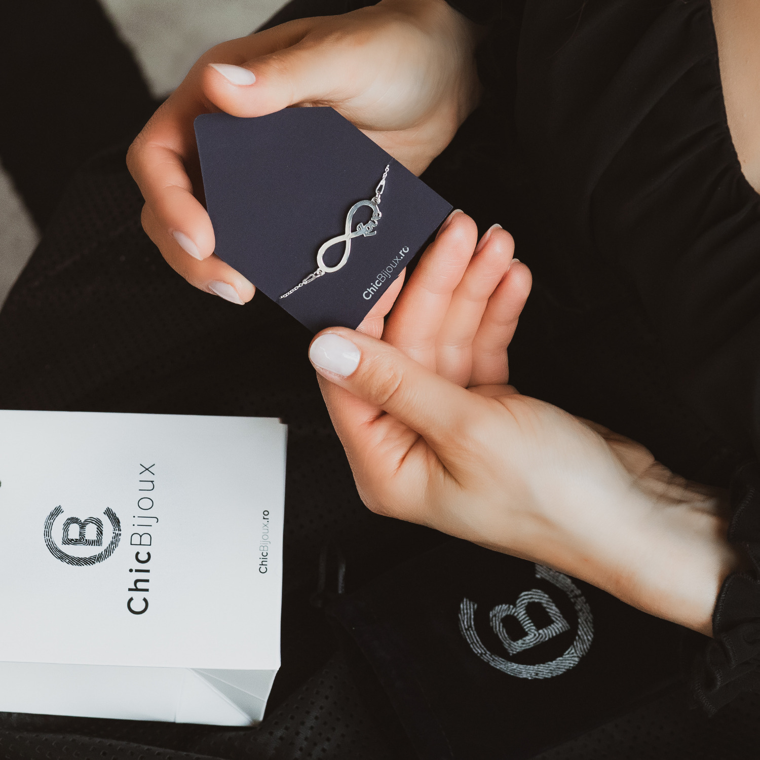 Un design elegant si frumos, simbolul infinit ∞ este asociat cu iubirea eterna, nelimitata si fara de sfarsit. Astfel bratara cu simbolul infinit si un nume decupat exprima dragostea vesnica pe care o porti persoanei dragi sau dragostea pe care ti-o porti tie insusi.