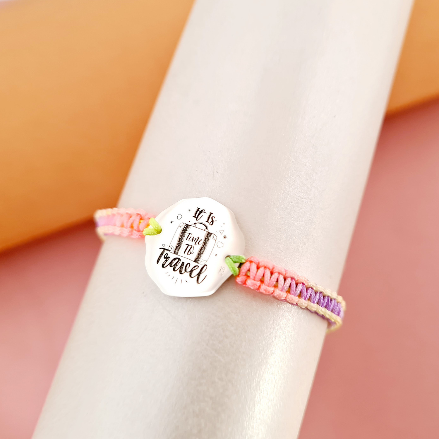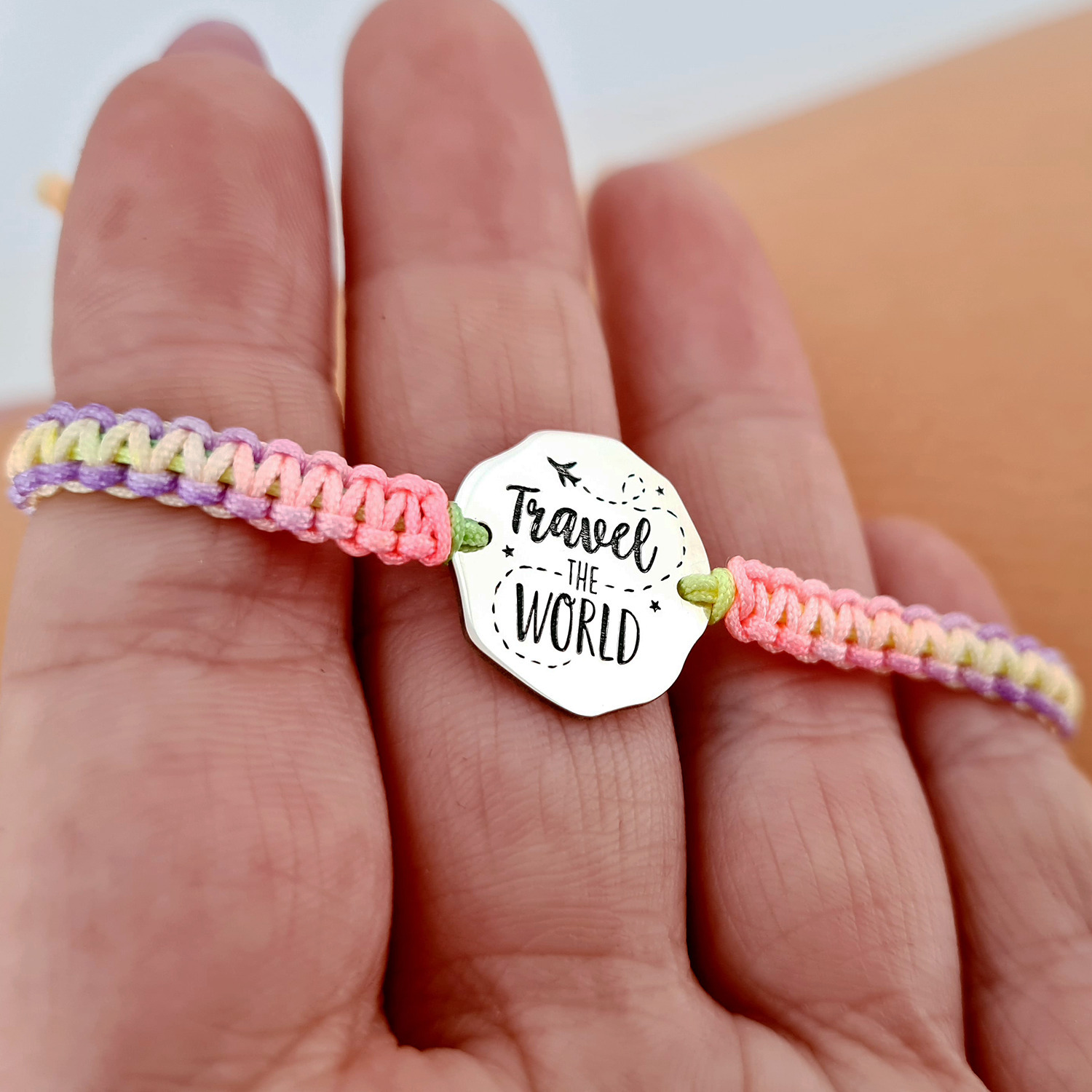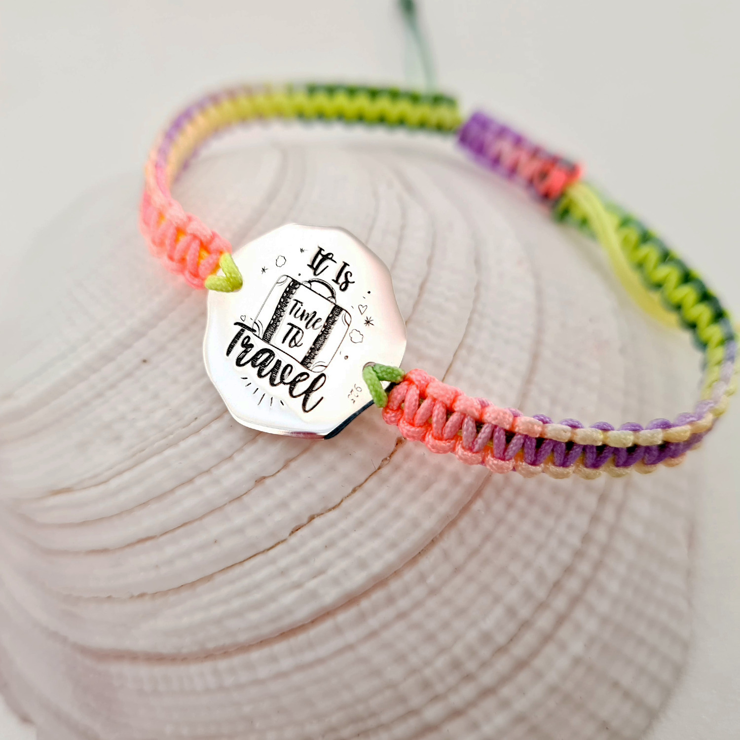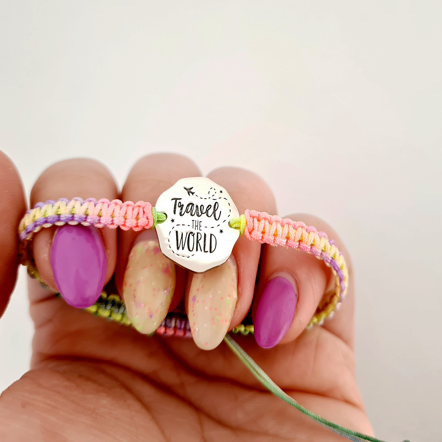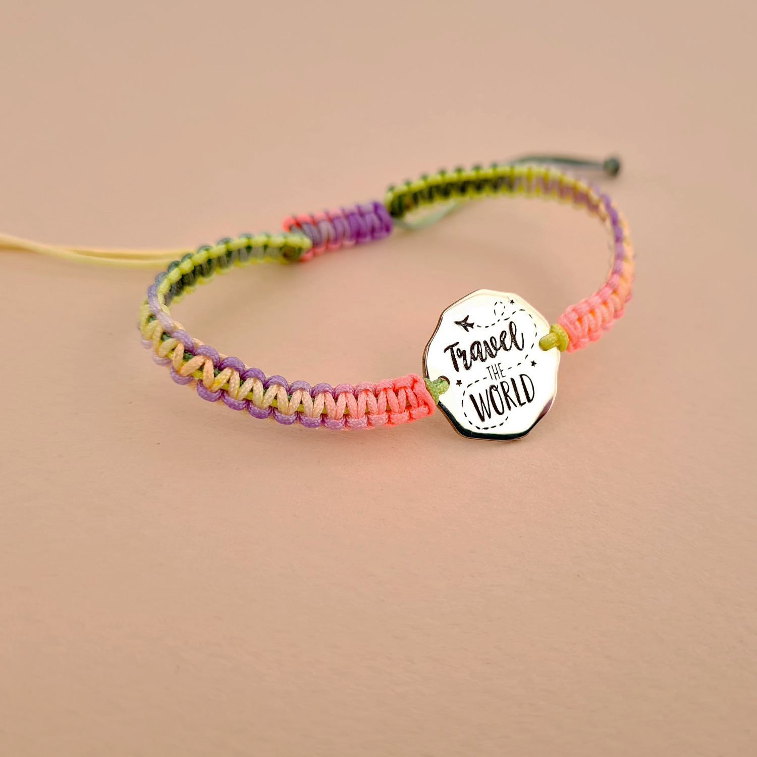 Bratara personalizata - Travel - Argint 925 - Snur impletit multicolor