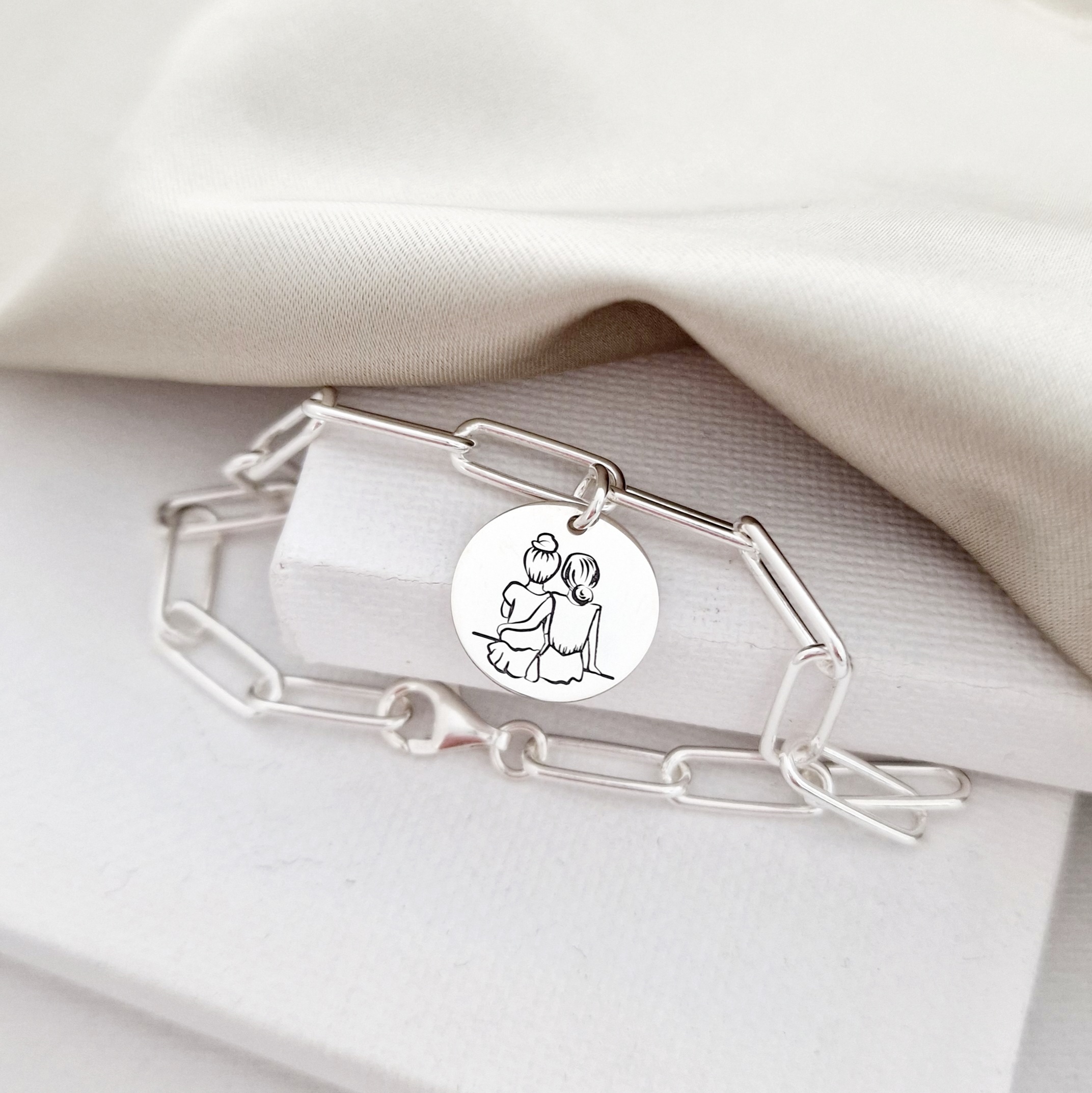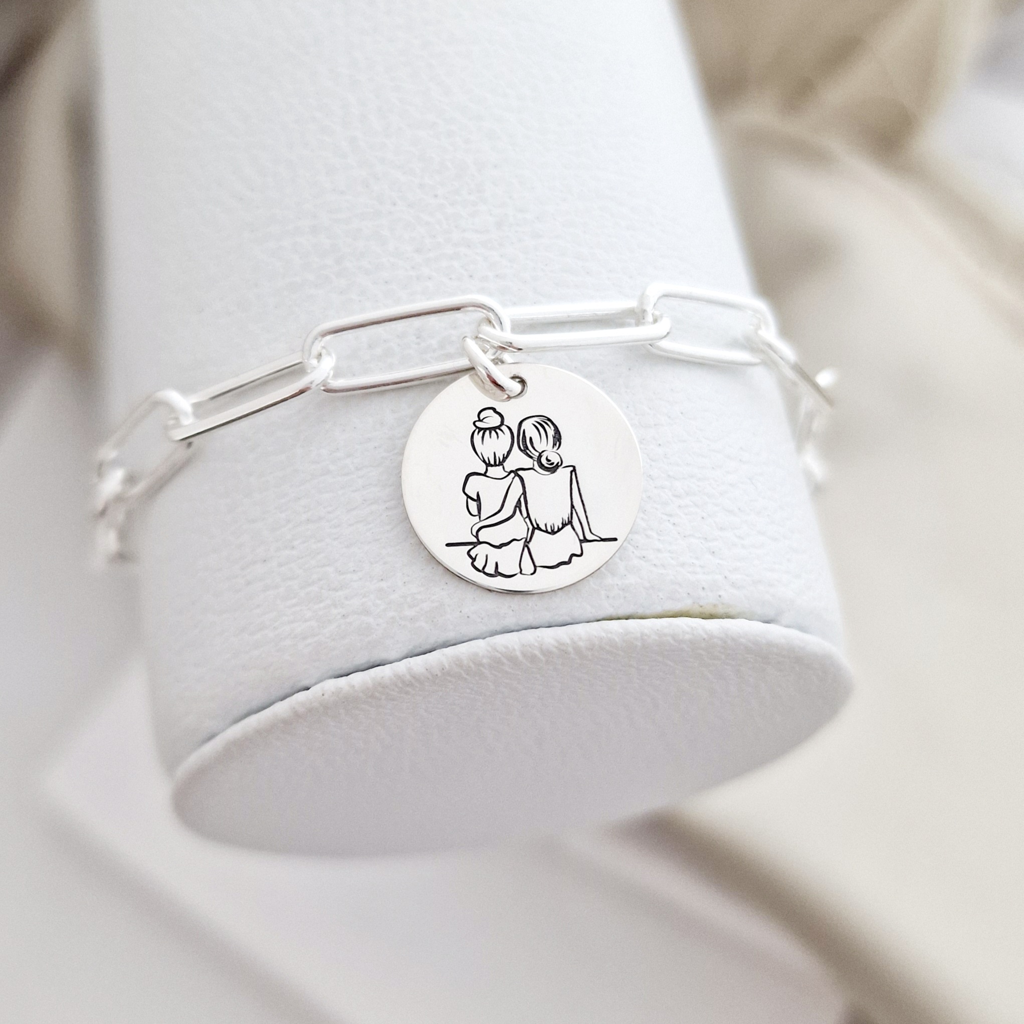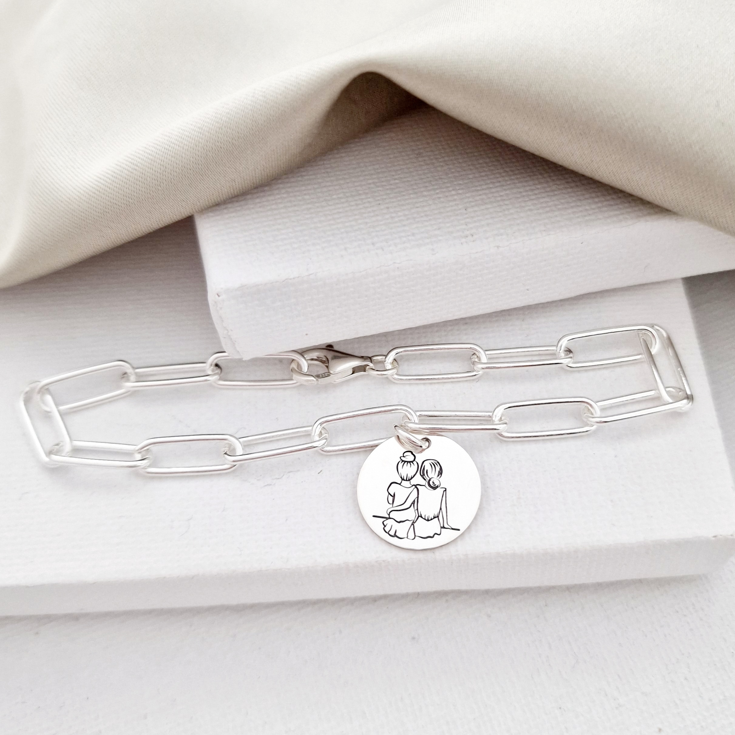 Bratara personalizata - Lant cu zale dreptunghiulare - Pandantive banut 2 surori/prietene - Argint 925