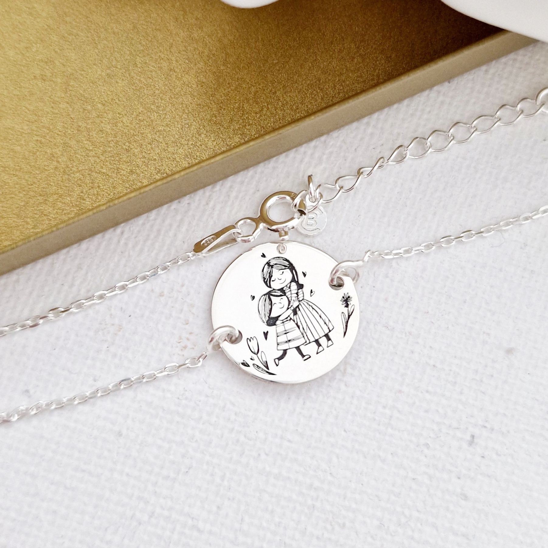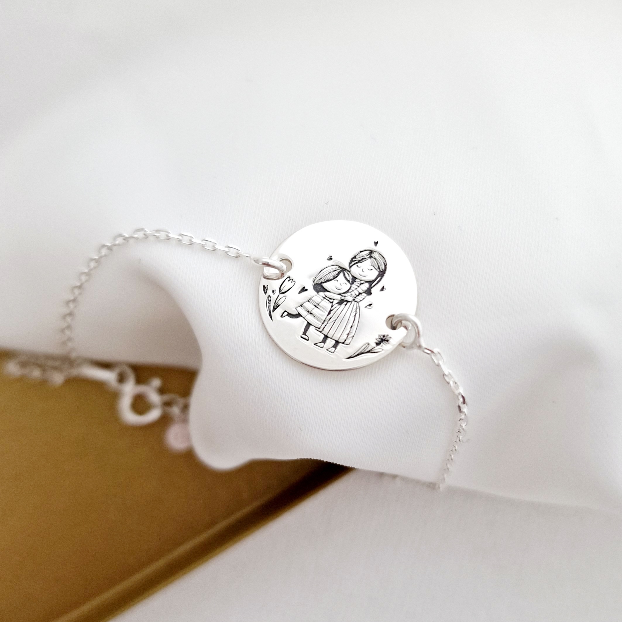 Bratara personalizata - Mama si fiica - Banut de 15 mm - Argint 925 - cu lantisor