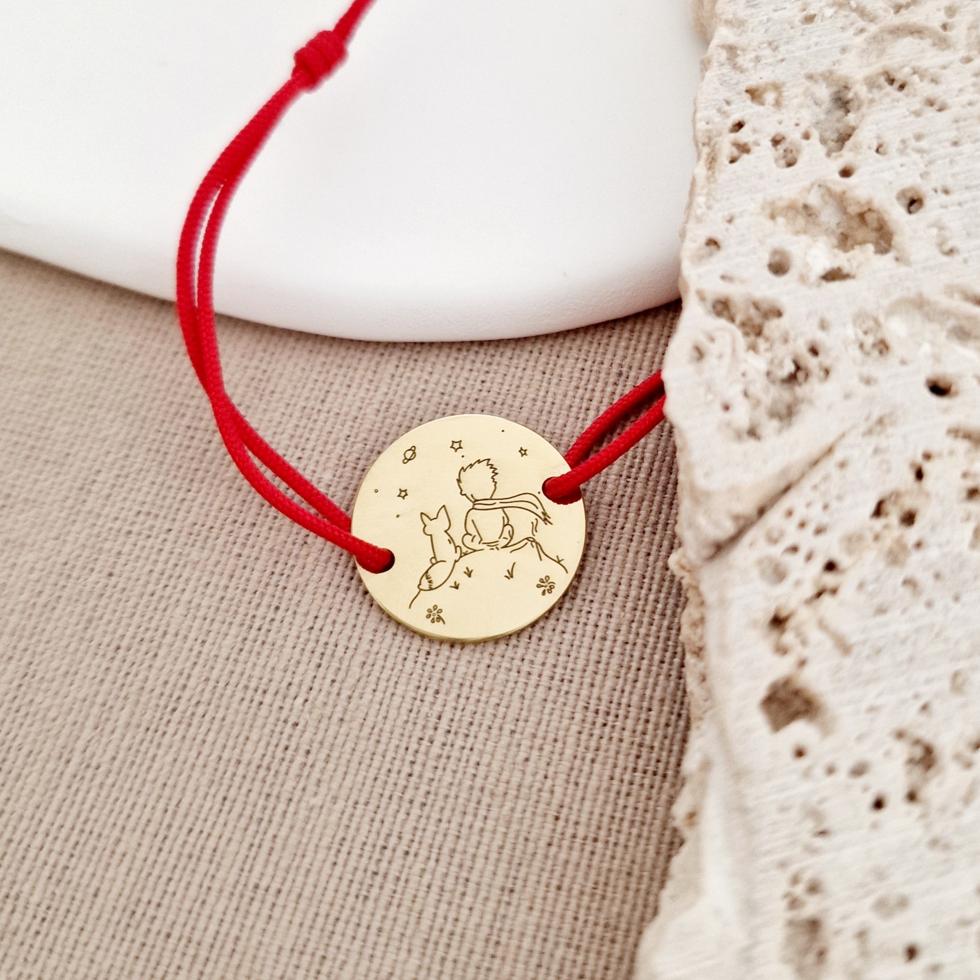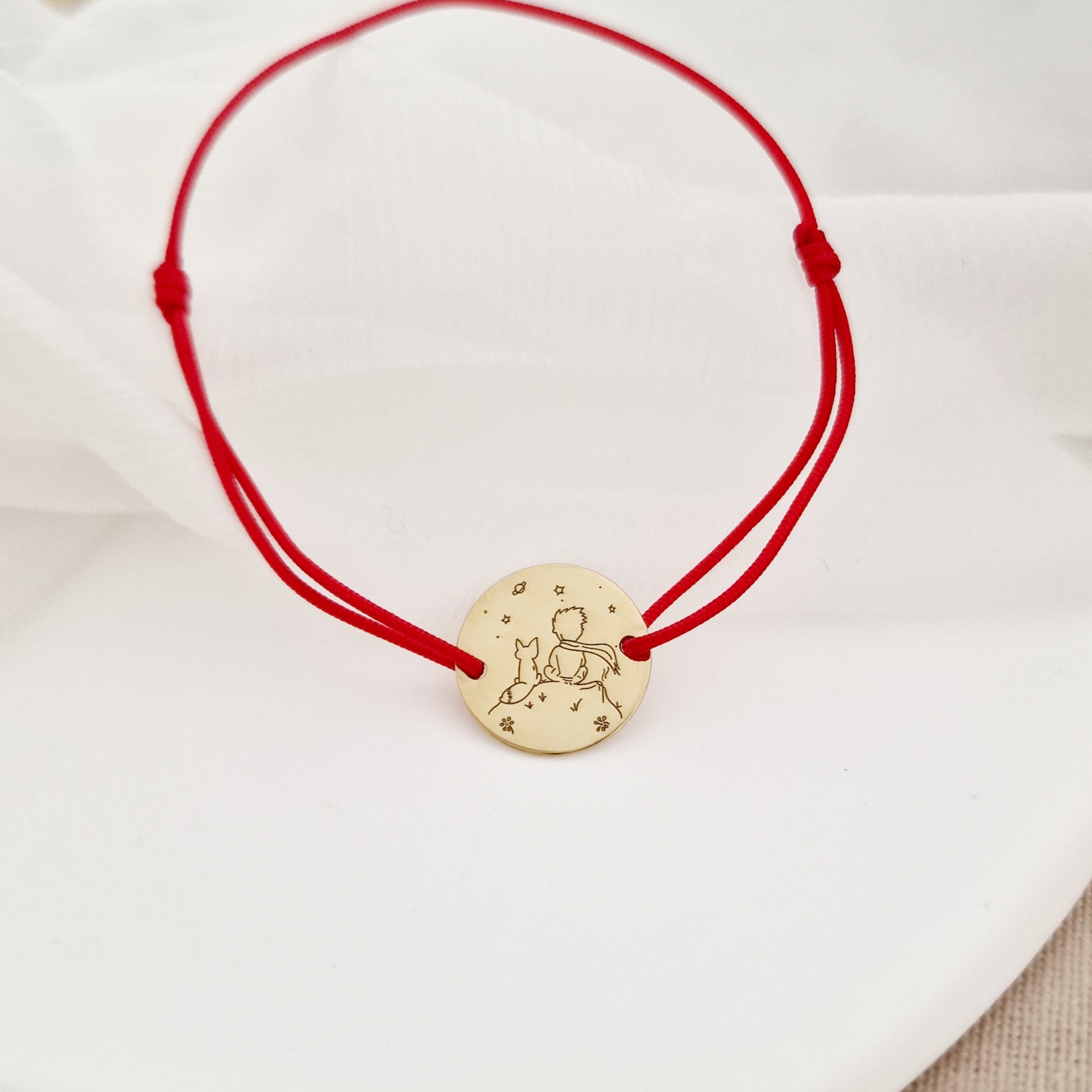 Bratara personalizata - Micul print - banut de 15 mm - Argint 925 placat cu Aur Galben 18K - snur reglabil