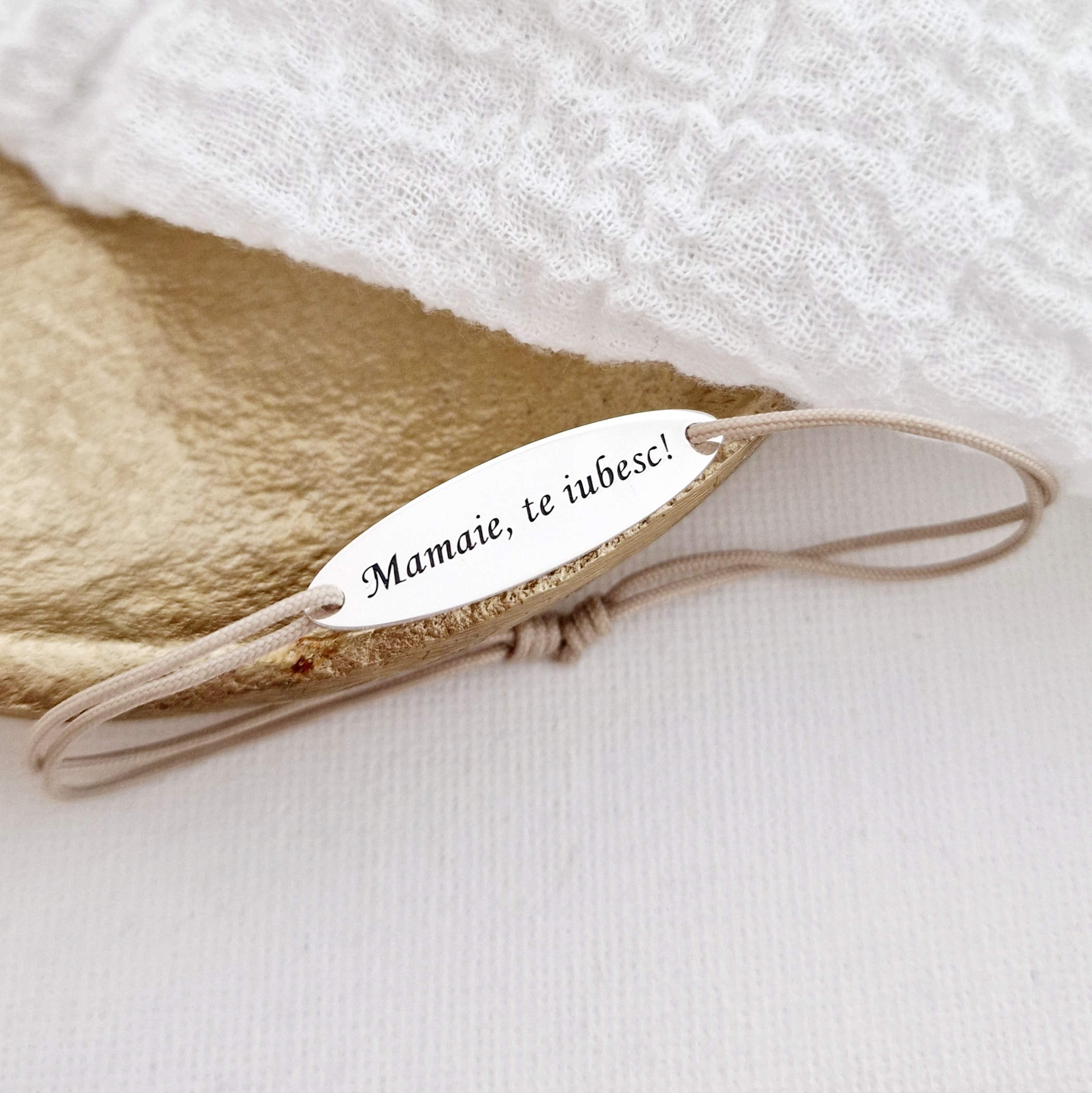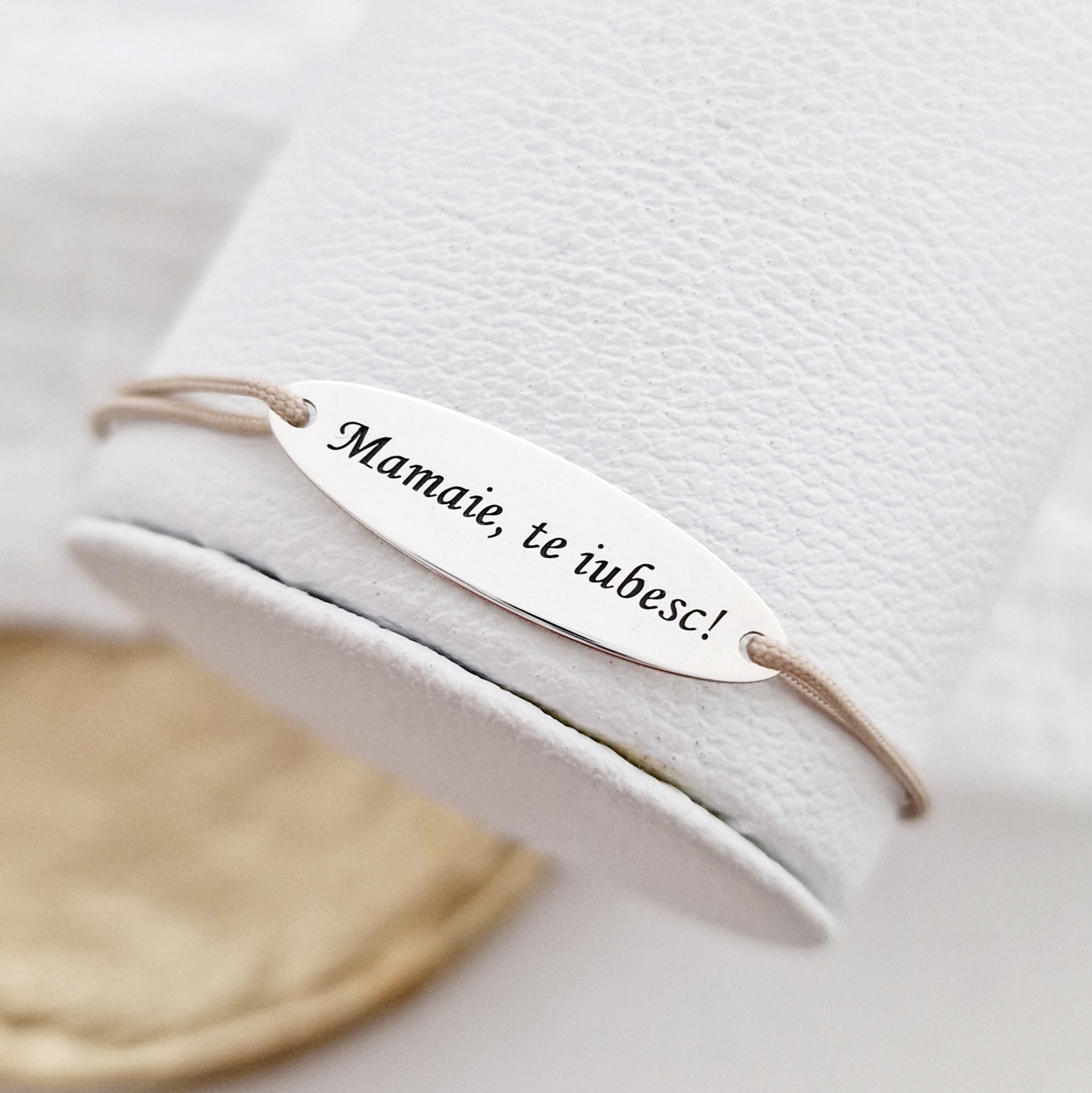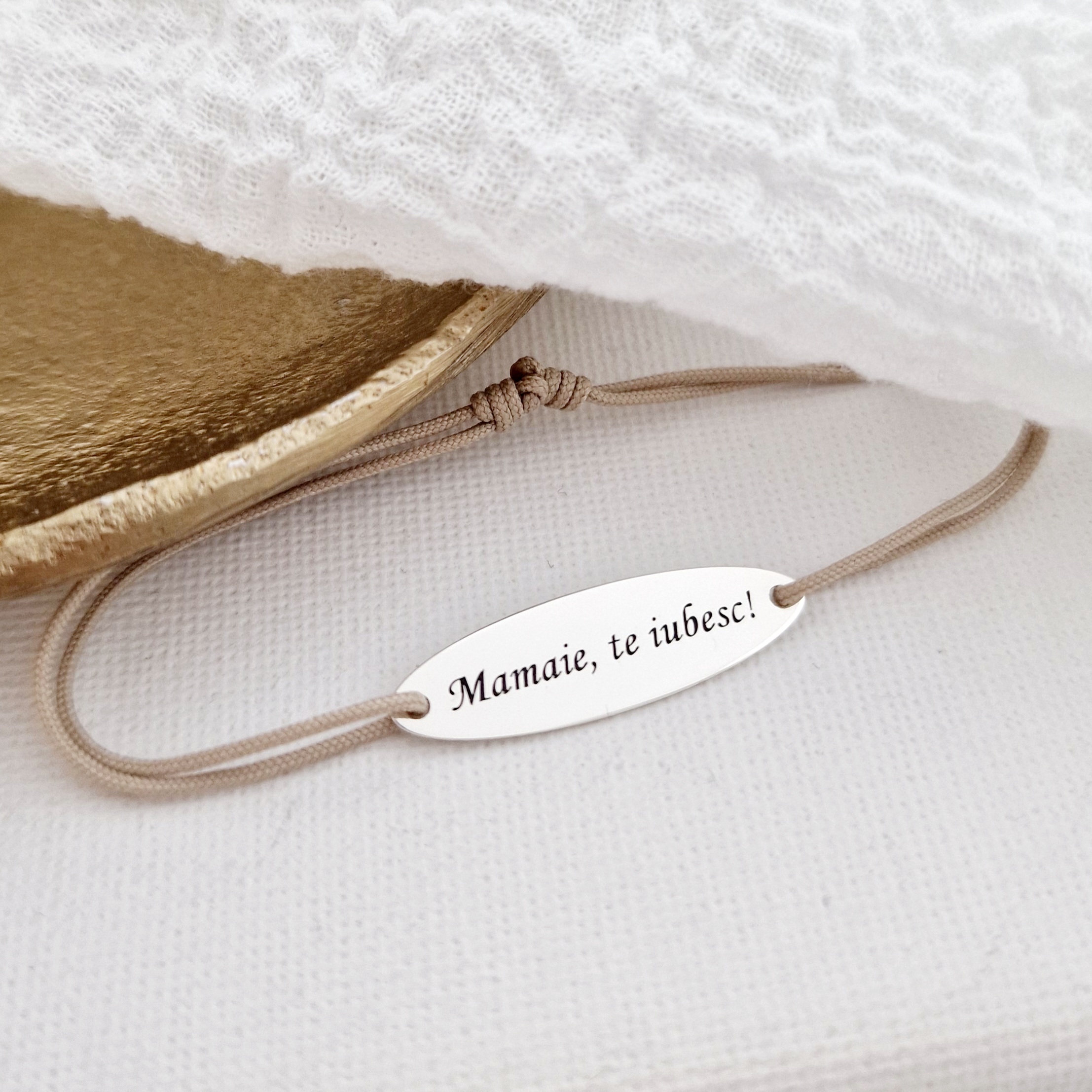 Bratara personalizata - Model oval - Mamaie, te iubesc - Argint 925 - snur reglabil