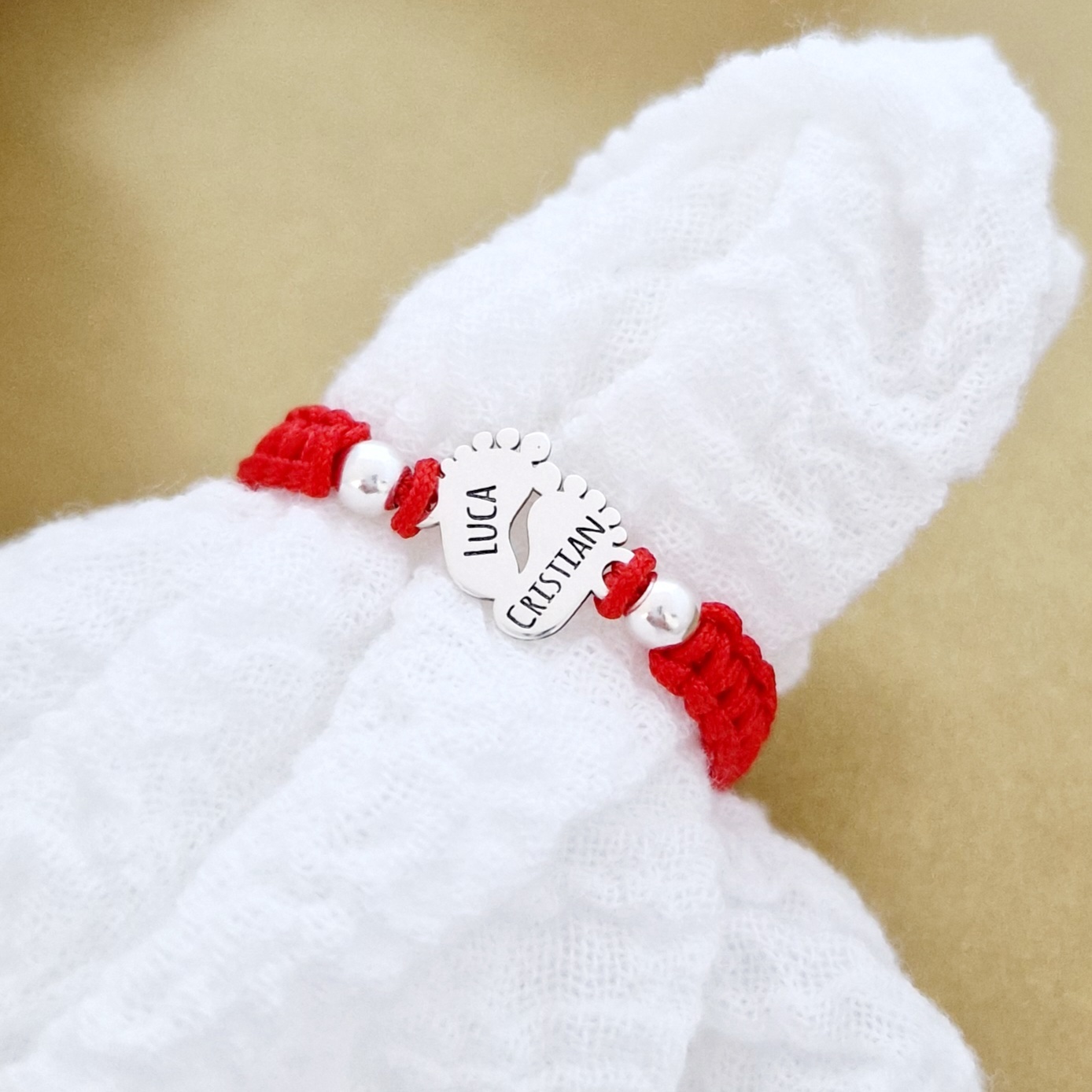 Personalizarea bratarii se face prin gravura cu laser de inalta precizie, direct pe placuta din aur sau argint. Poti adauga numele copilului, o data importanta, initiale, un mesaj (in functie de spatiu) sau un simbol drag. La bratari poti selecta lantisor de fetita sau baiat, precum si snurul in culoarea preferata, model impletit sau clasic