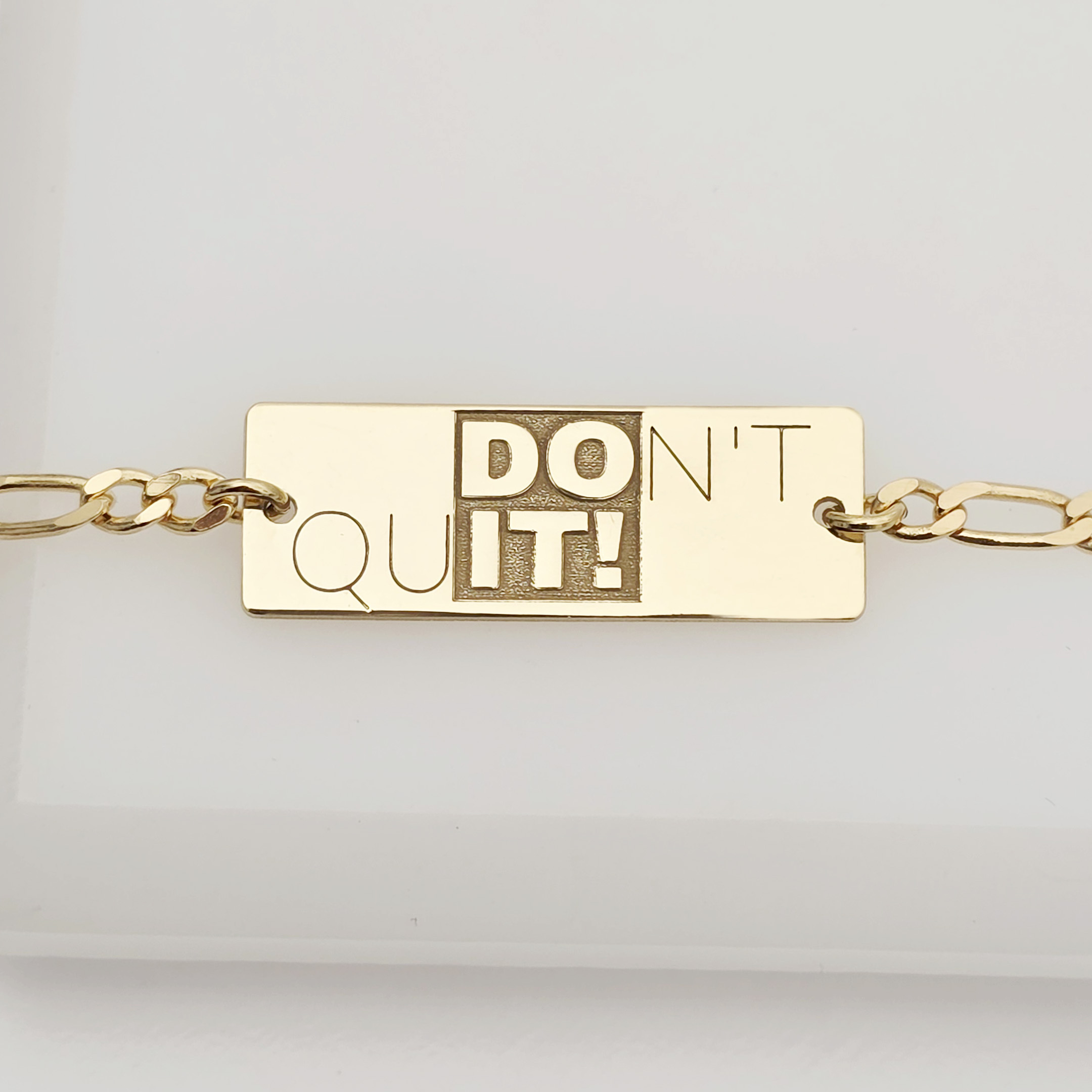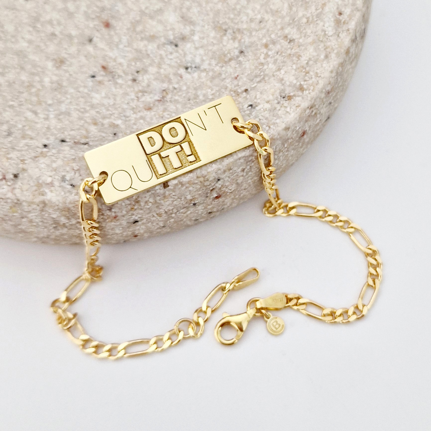 Această brățară din Argint 925 placat cu Aur Galben 18K este un simbol al determinării și curajului. Plăcuța gravată cu mesajul „Don't Quit” te motivează să continui, chiar și în cele mai dificile momente. Designul masculin, cu lanț robust și finisaje de calitate, o transformă într-un accesoriu elegant cu semnificație profundă.