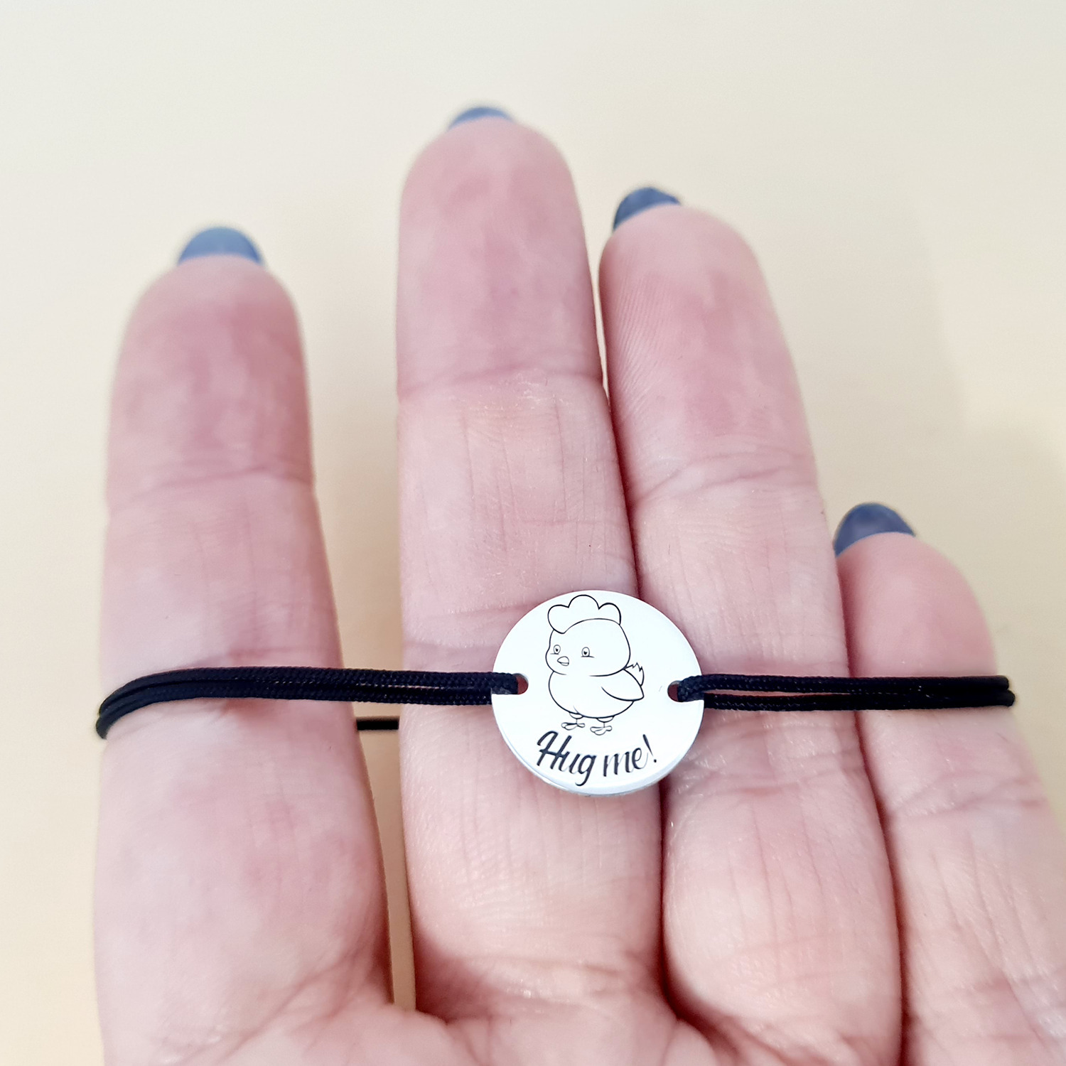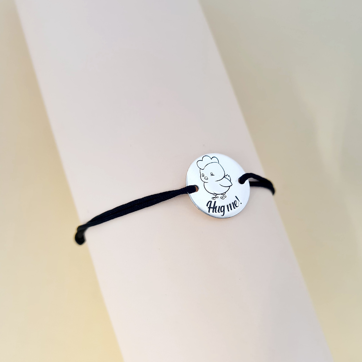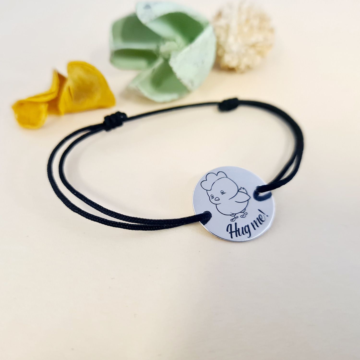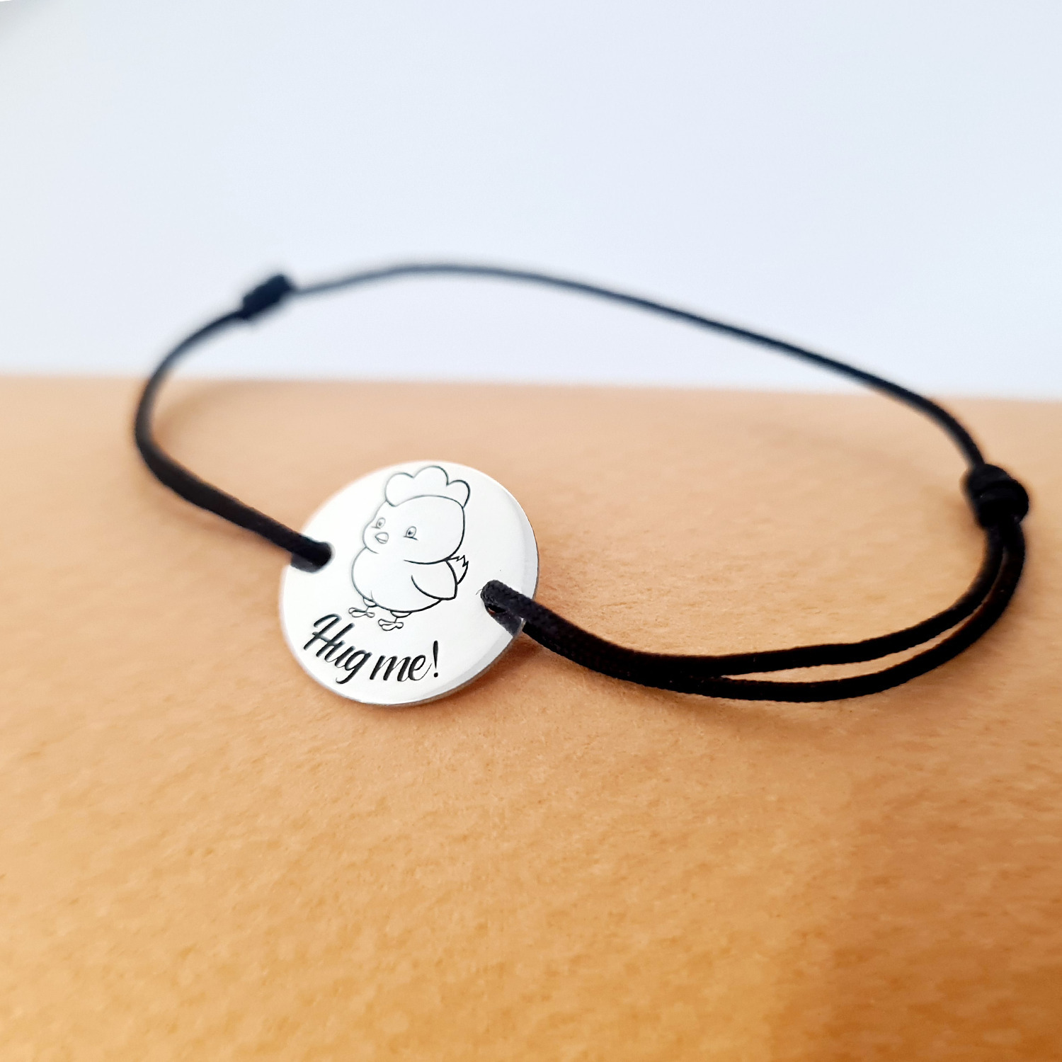 Bratara personalizata - Pui motat - Banut de 15 mm cu snur reglabil - Argint 925