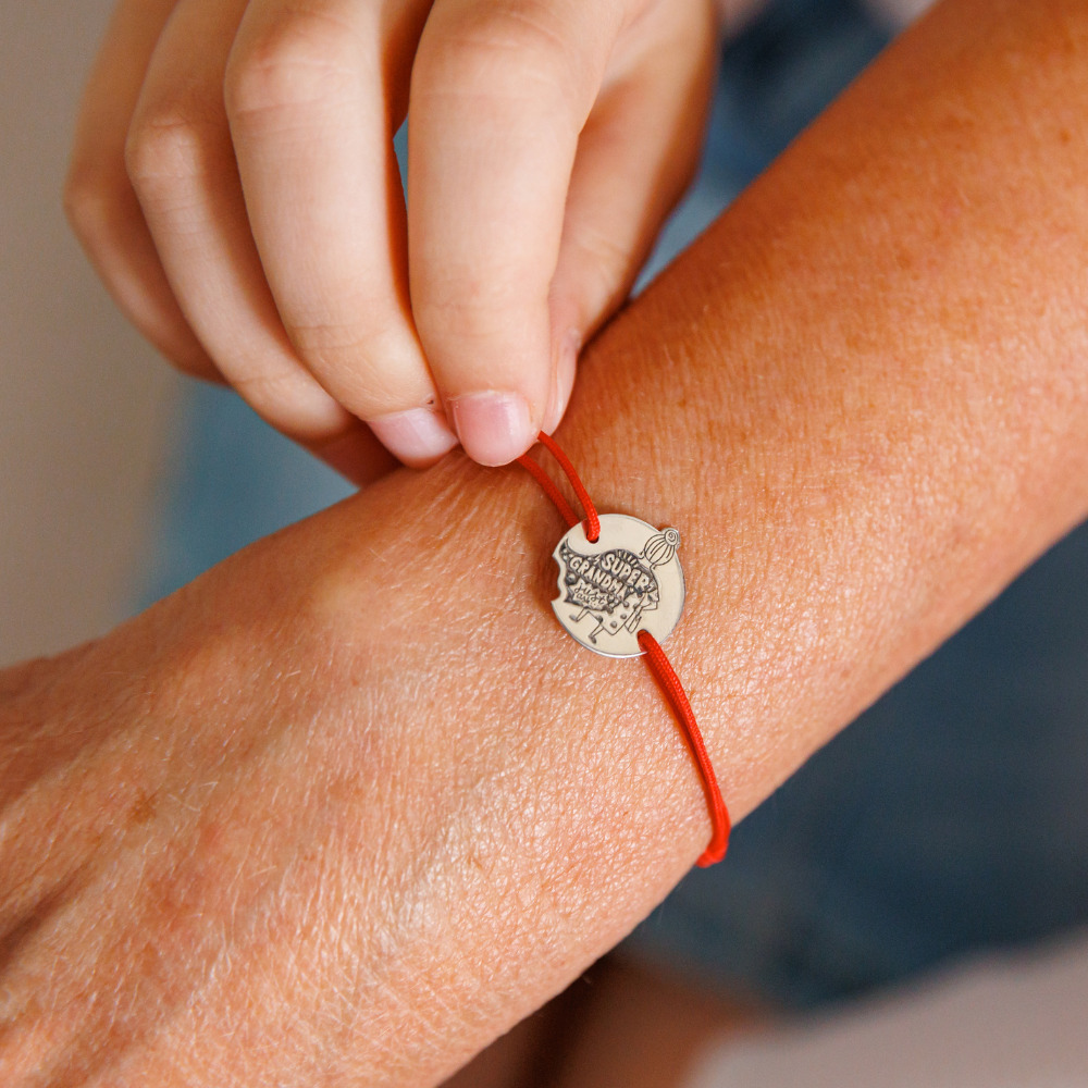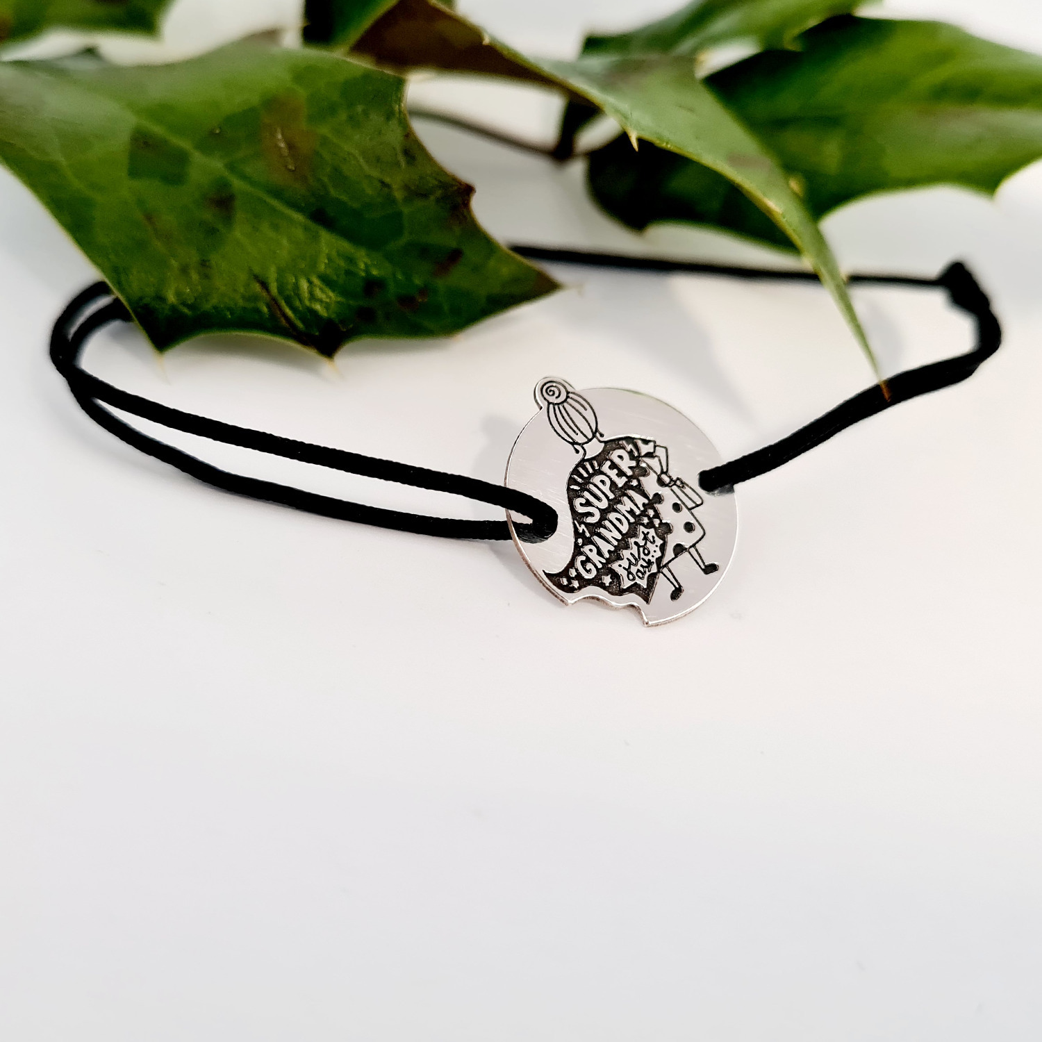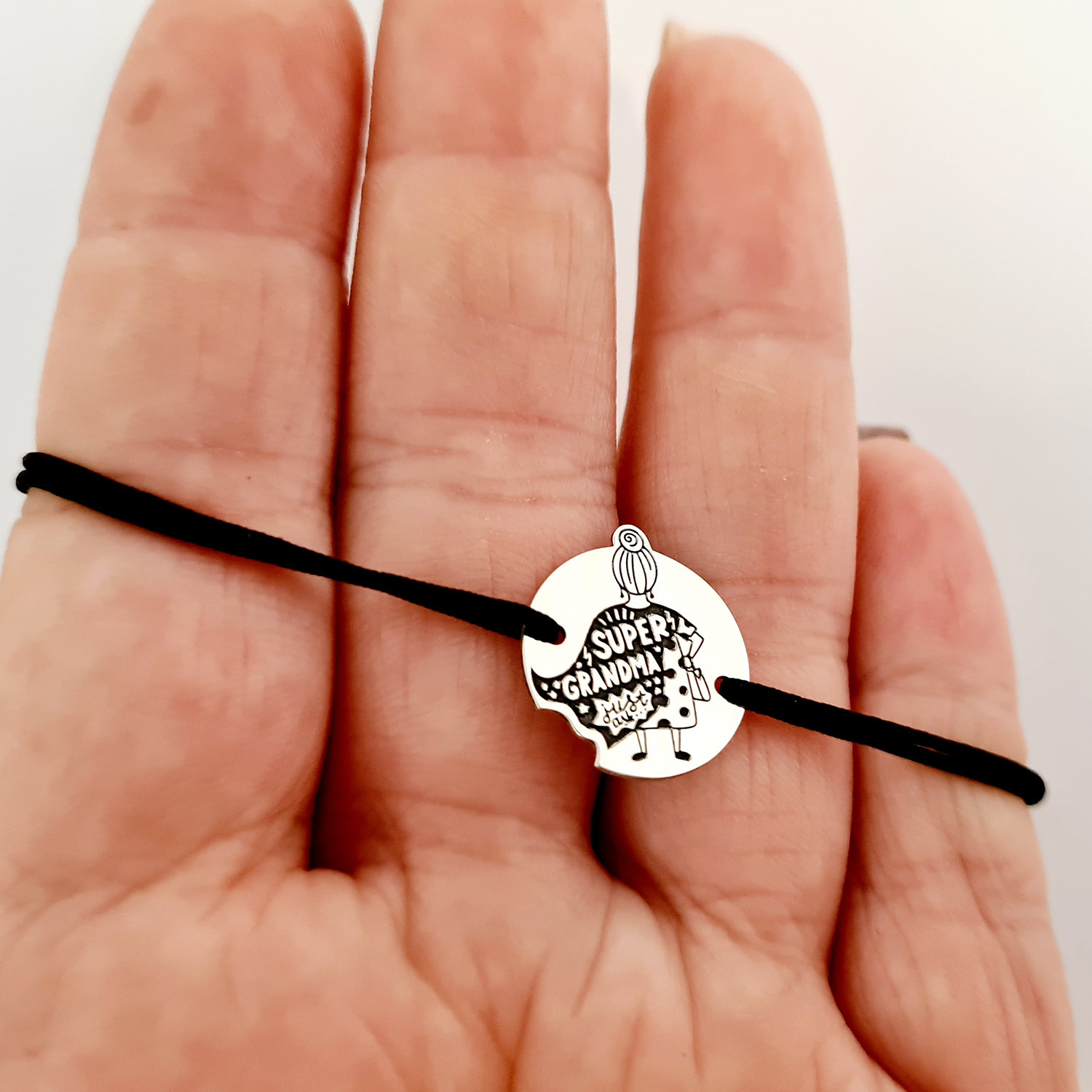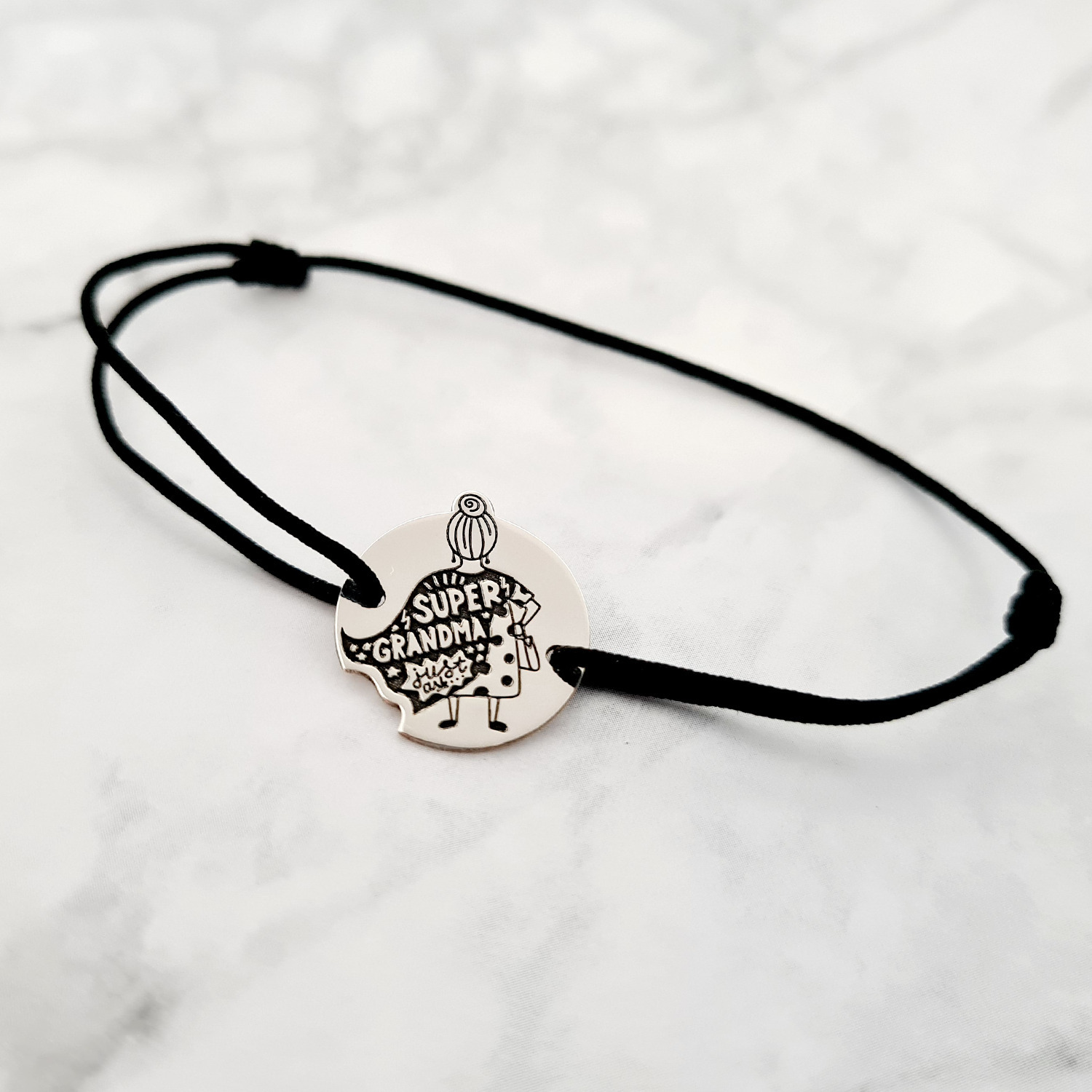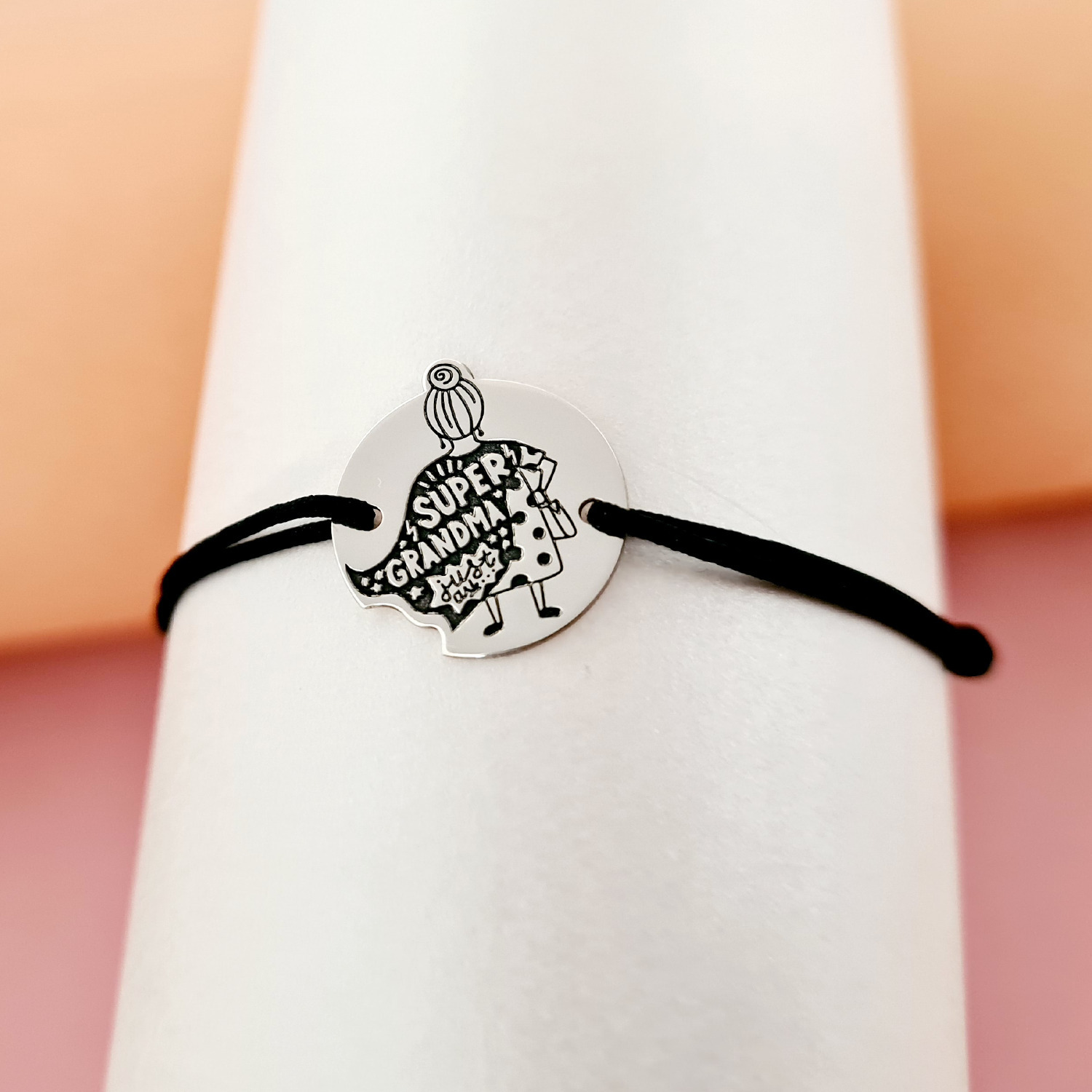 Bratara personalizata - Super Grandma - Argint 925 - Snur reglabil diverse culori