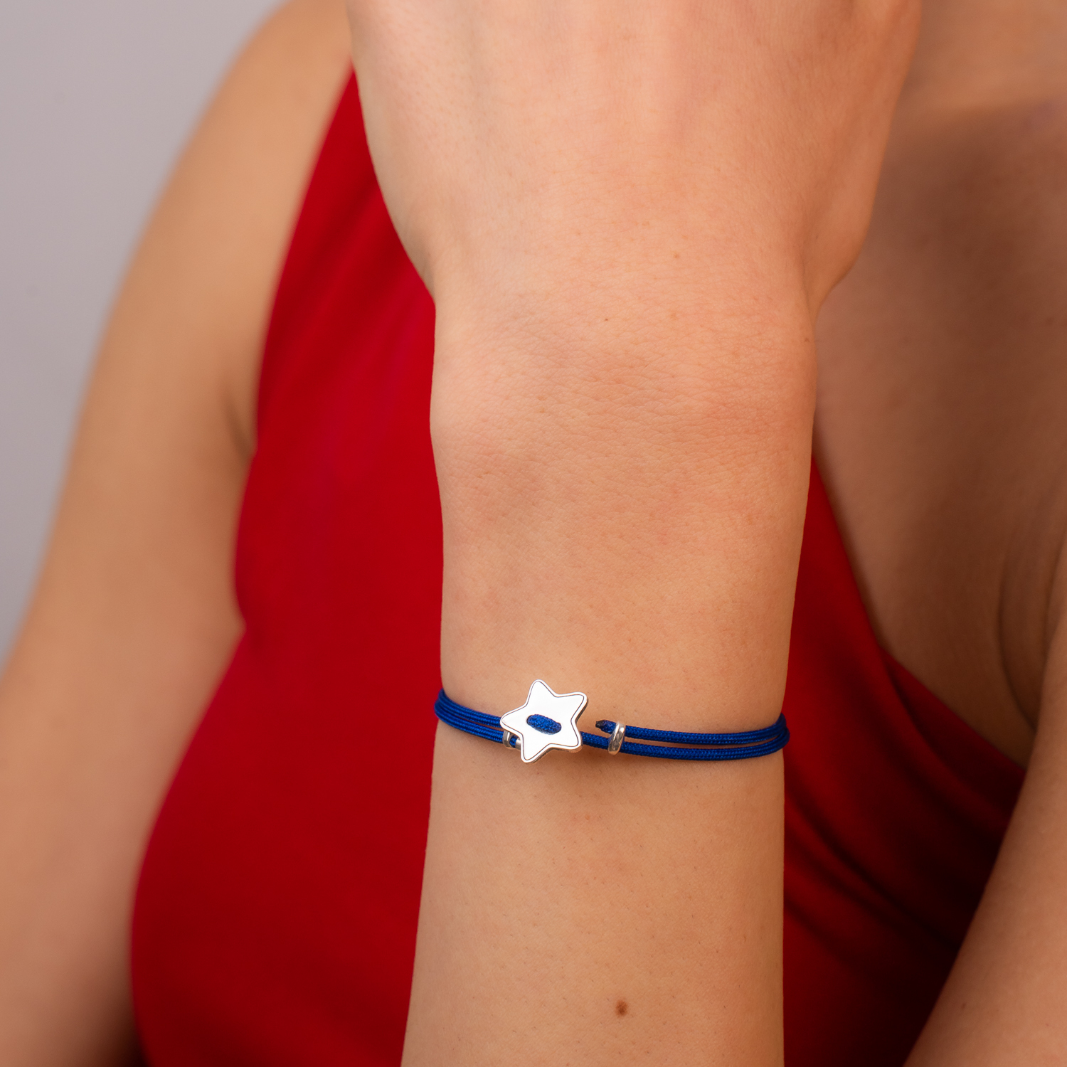 Această brățară rafinată îmbină simbolul stelei cu finețea Argintului 925, creând un accesoriu plin de farmec. Șnurul albastru gros oferă rezistență și un contrast elegant, potrivit pentru orice stil. Cele două biluțe delicate de 3 mm completează perfect designul minimalist și modern.