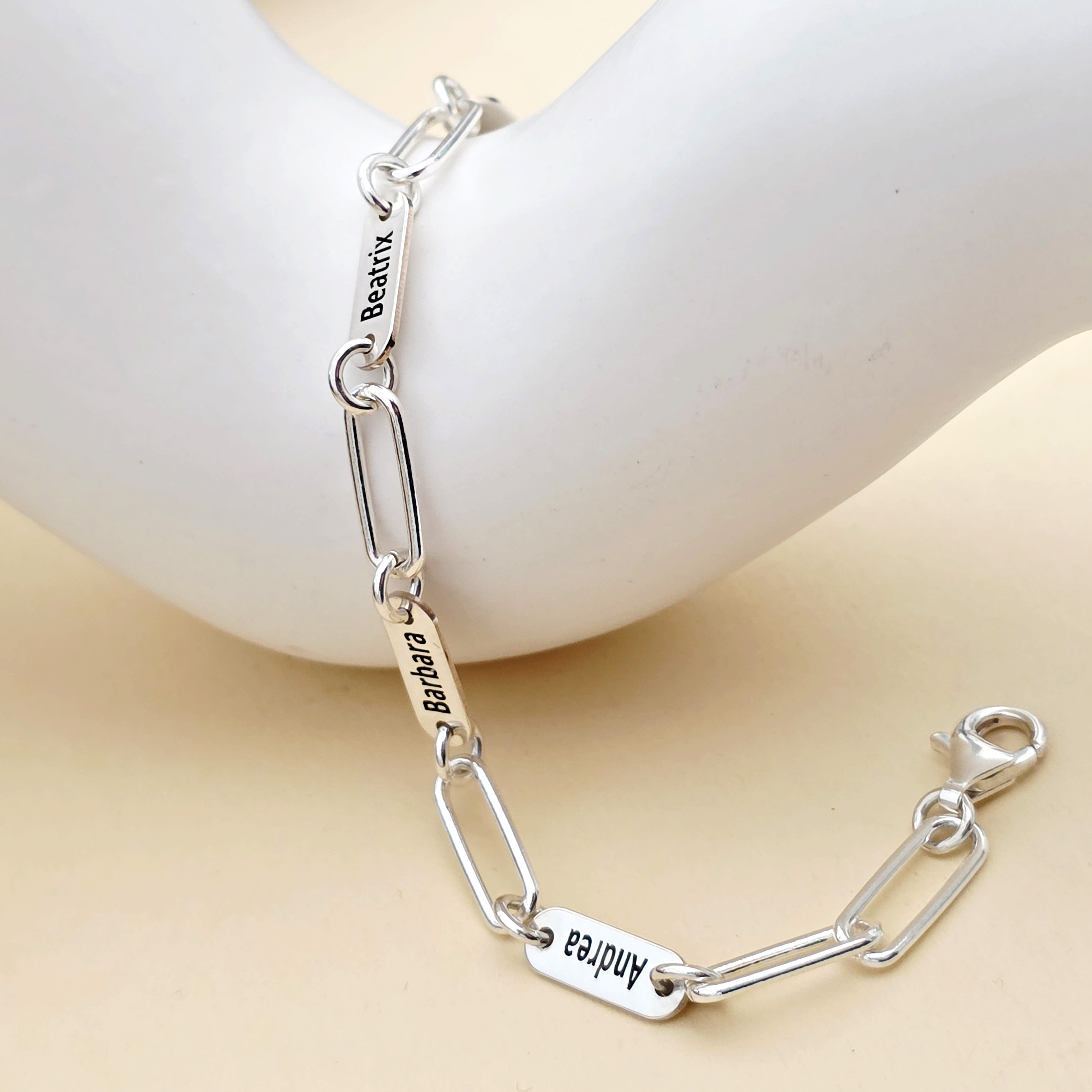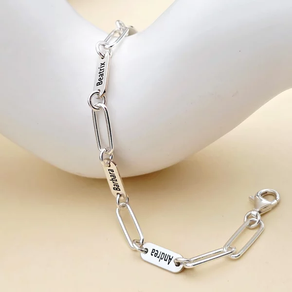 O piesa ce va intoarce capetele! Bratara cu placute personalizate si lant cu zale mari fac o declaratie superba. Stilul bijuteriei este atat de flexibil incat poate fi purtata cu aproape orice tinuta din garderoba personala. Alege pentru tine sau ofera un cadou pretios cu o bijuterie fermecatoare cu gravuri din suflet: numele celor dragi, o data speciala sau cuvinte cu insemnatate.