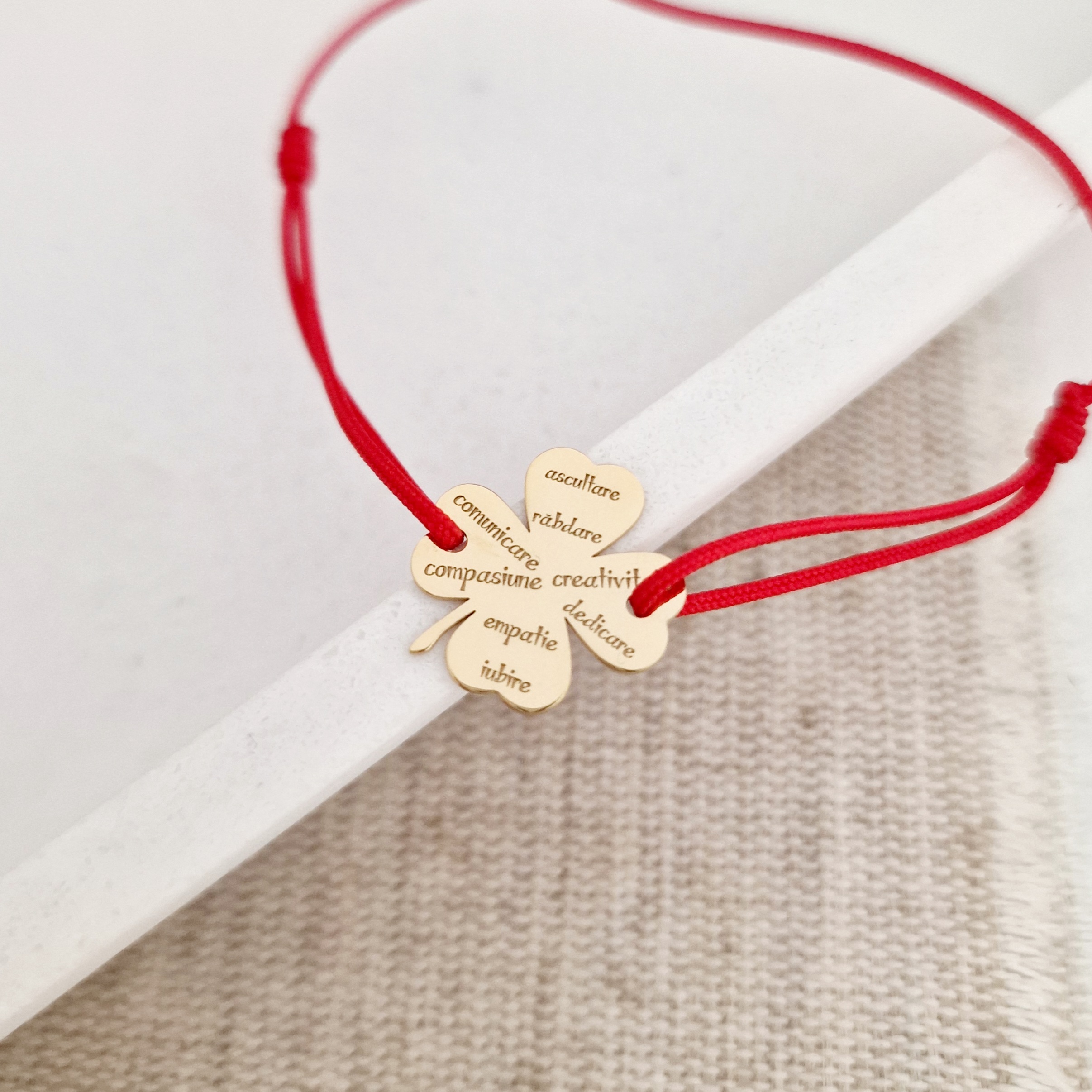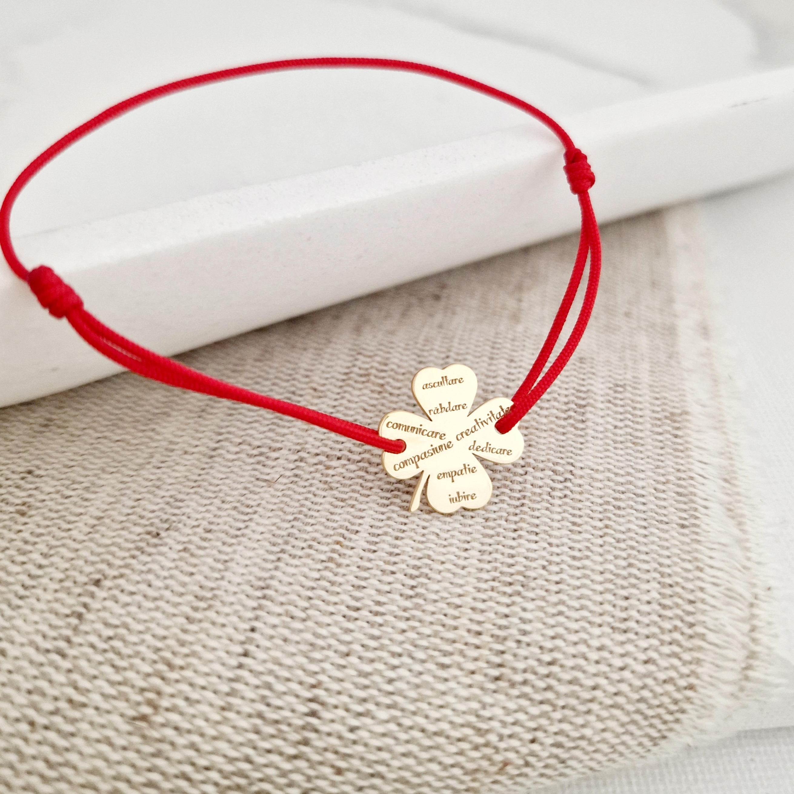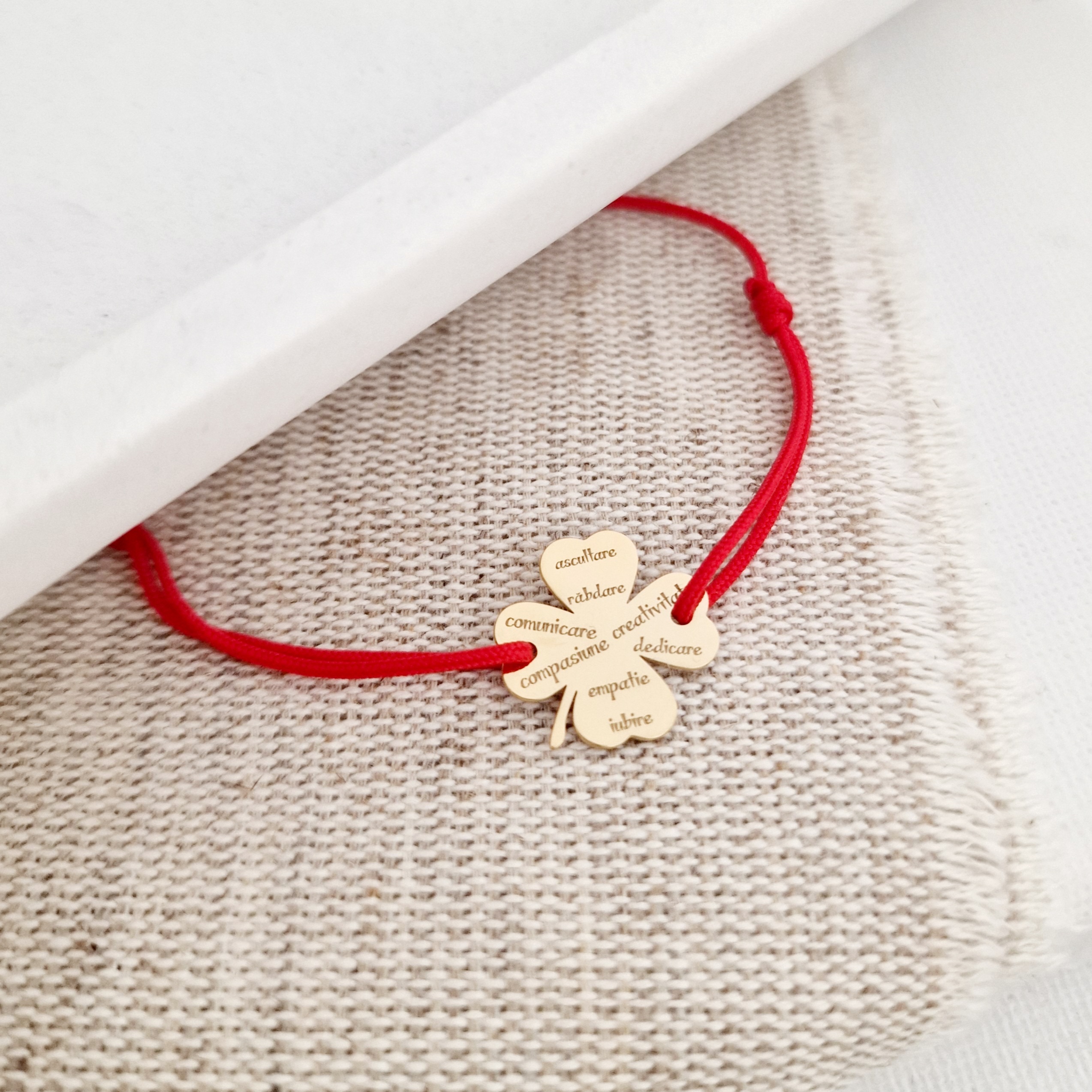 Bratara Trifoi - Calitati de Educatoare/Invatatoare - Argint 925 placat cu Aur Galben 18K - Snur reglabil, diverse culori