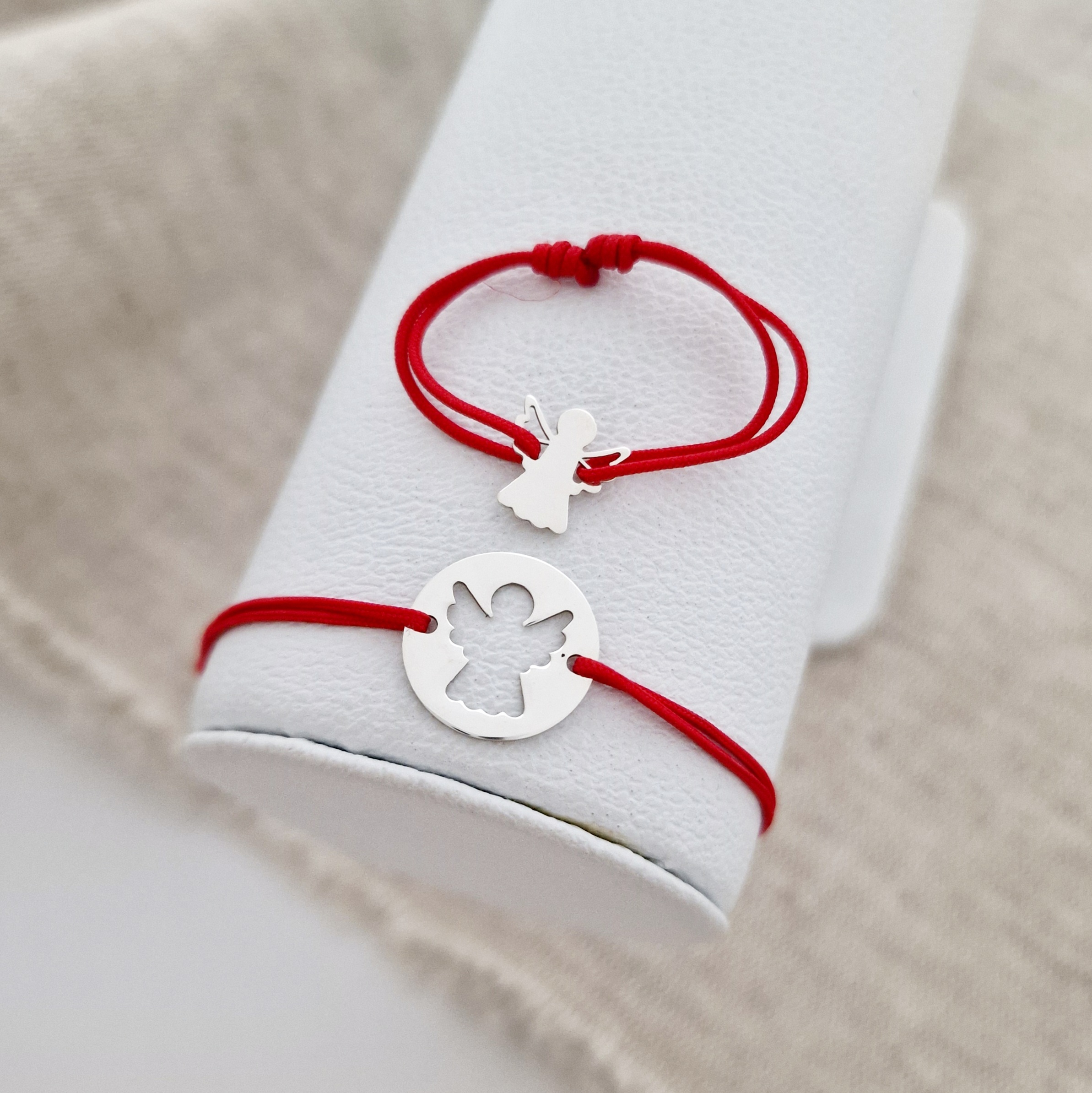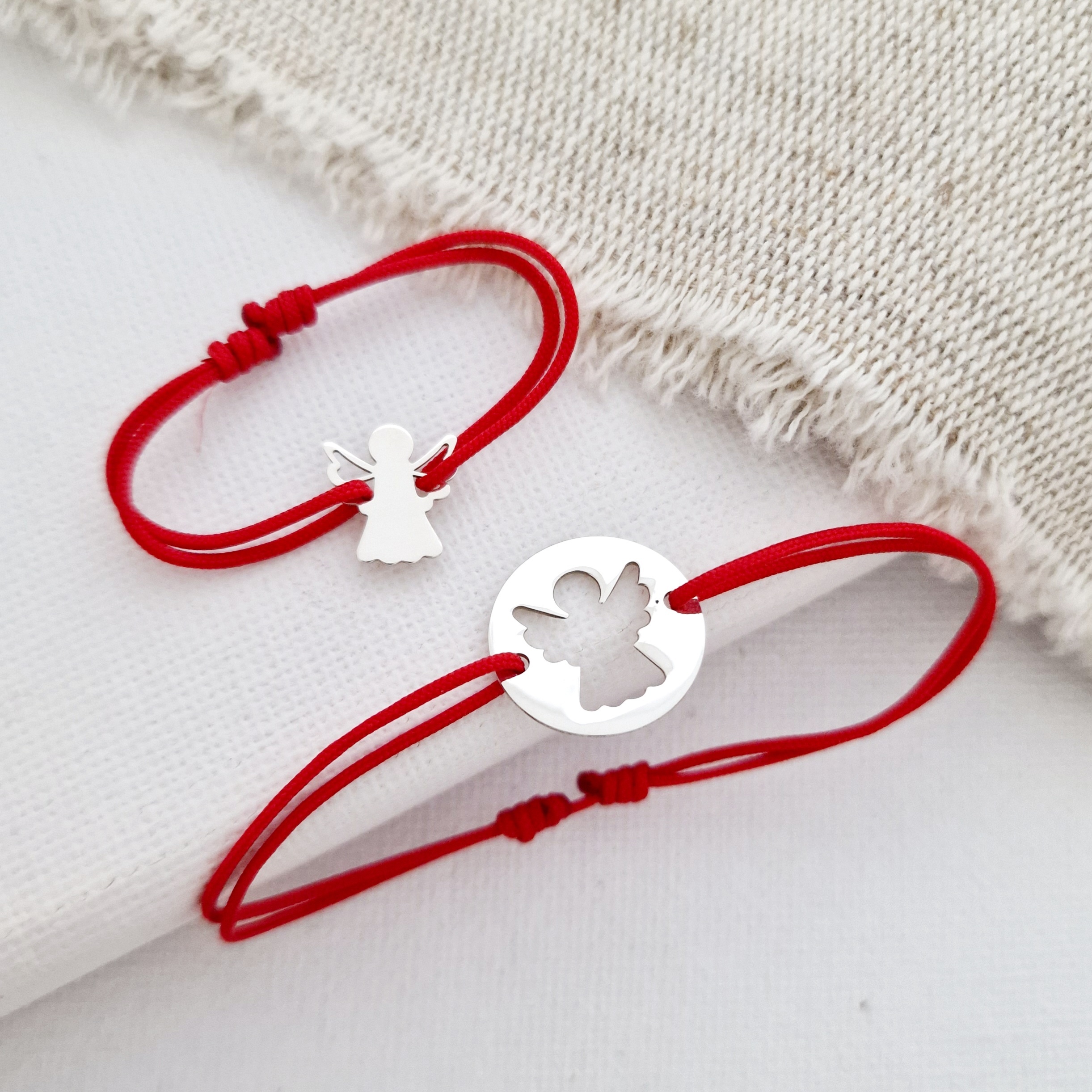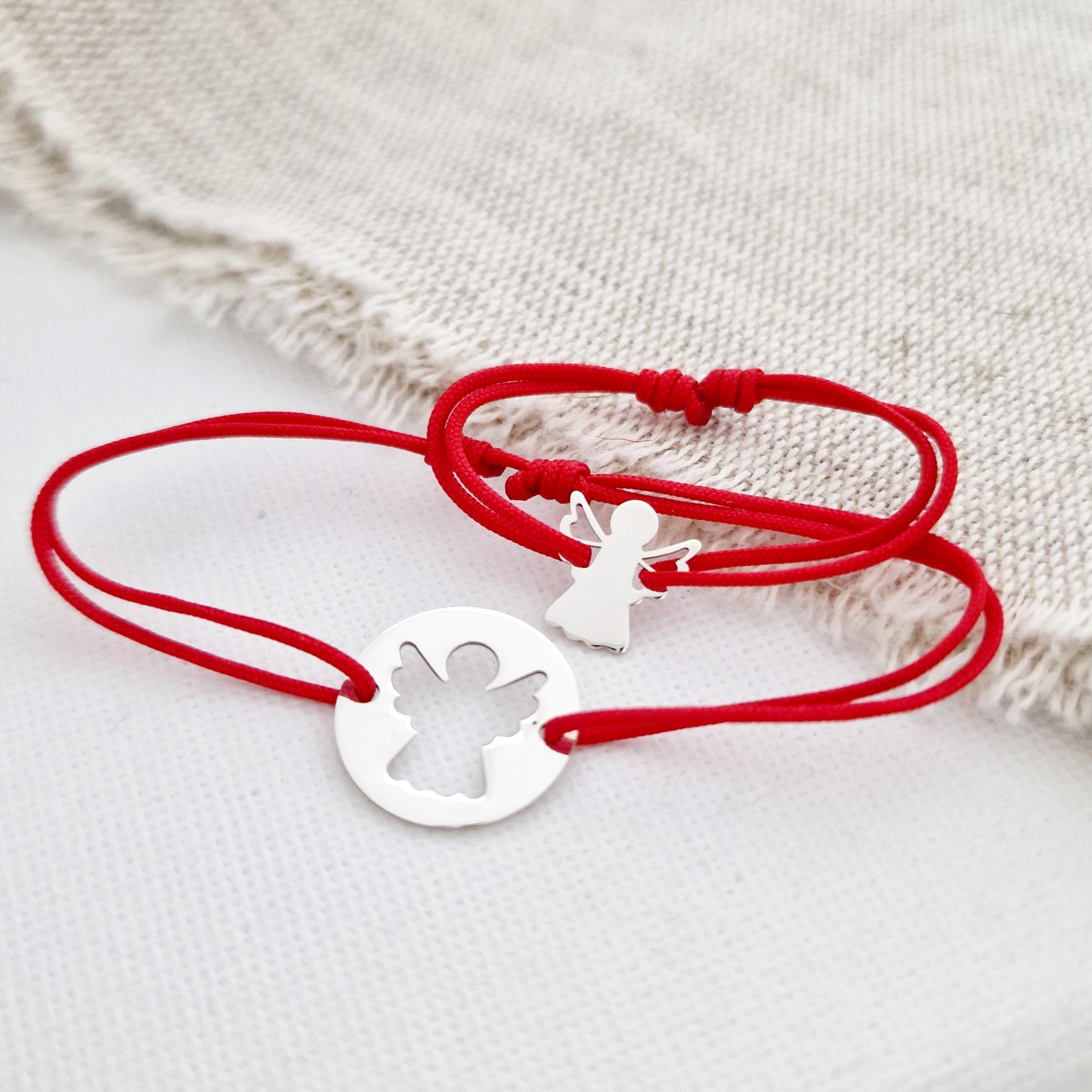 Set 2 bratari - banut cu ingeras decupat - Argint 925 - Snur reglabil diverse culori