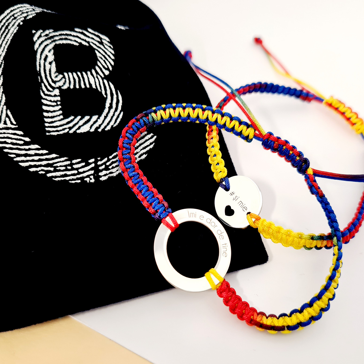 Snurul impletit creaza tricolorul tarii noastre, astfel setul de bijuterii devine un simbol al mandriei nationale. De asemenea, bratarile pot fi un cadou minunat de 1 Decembrie, Ziua Nationala a Romaniei.