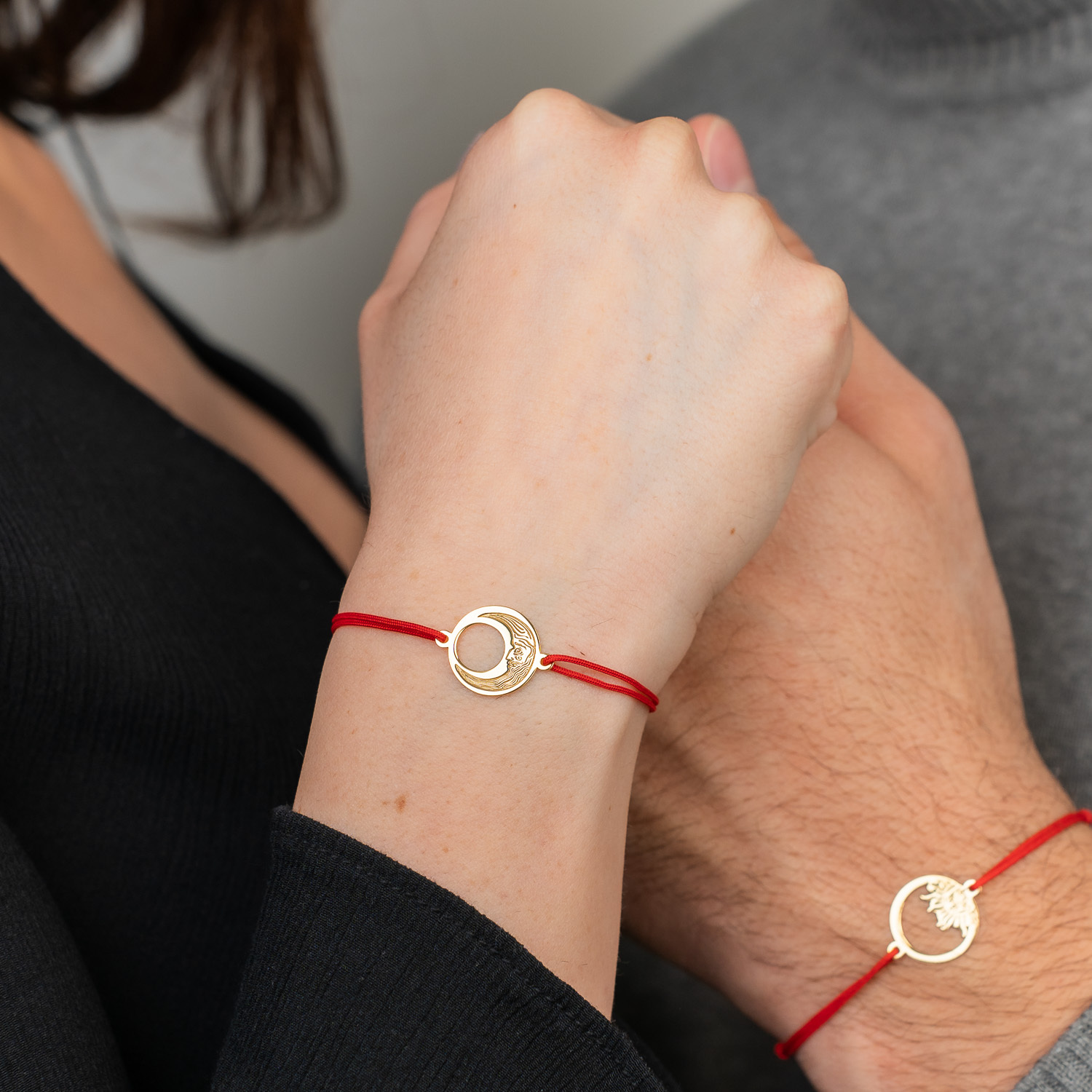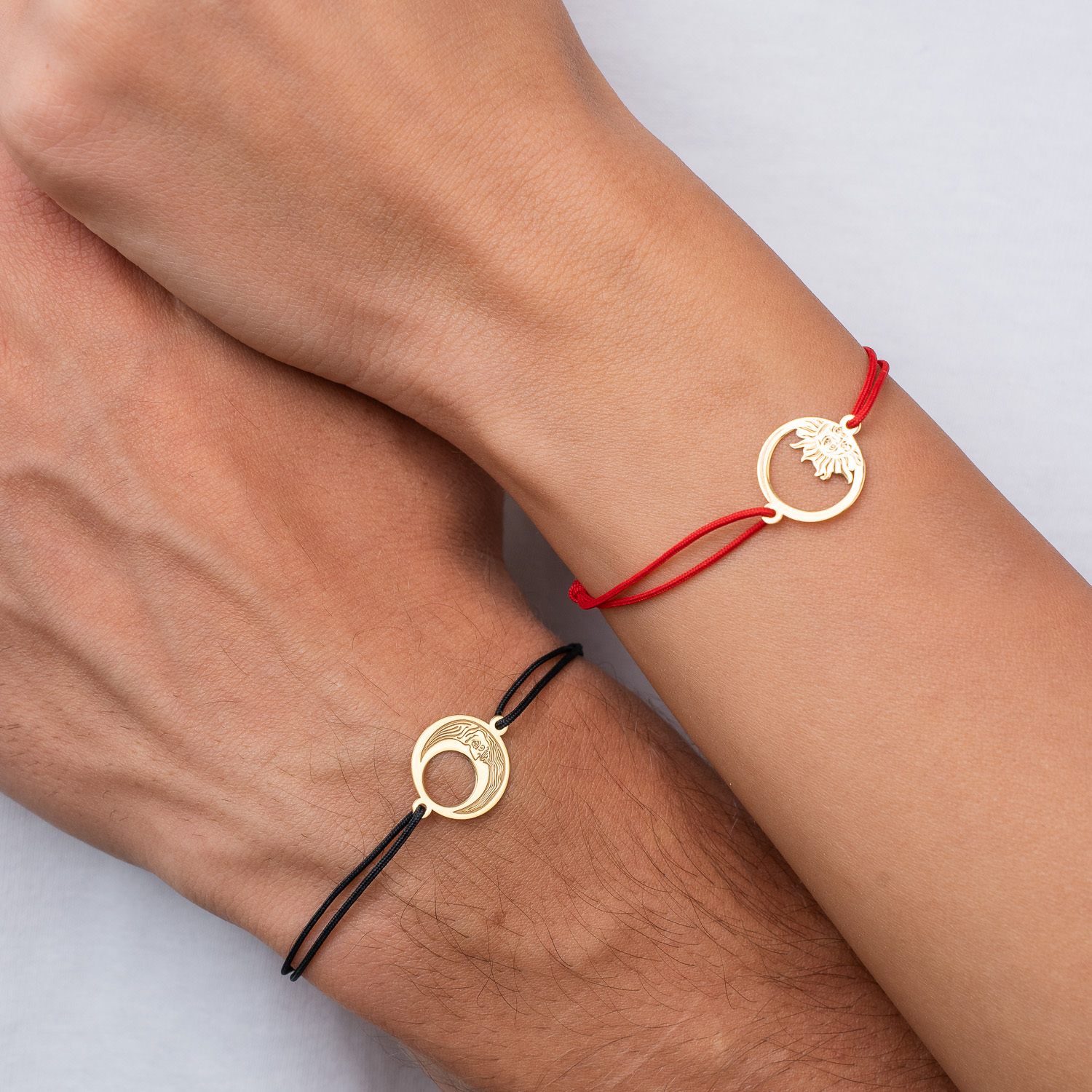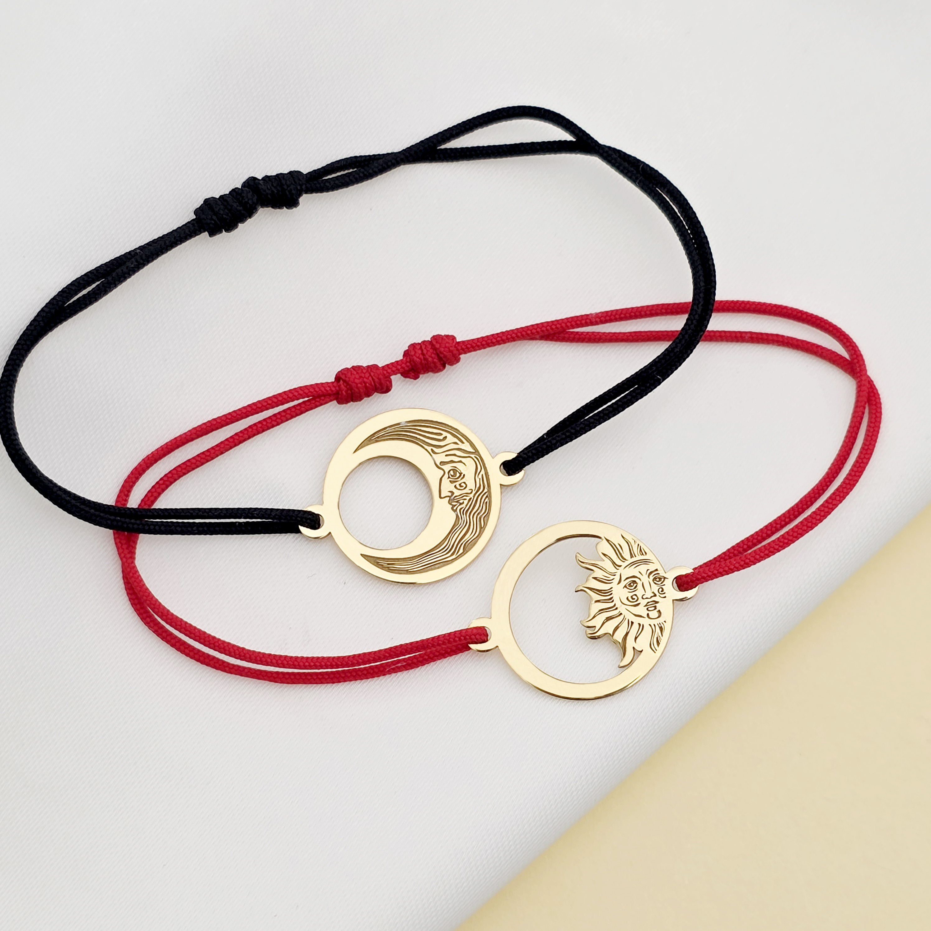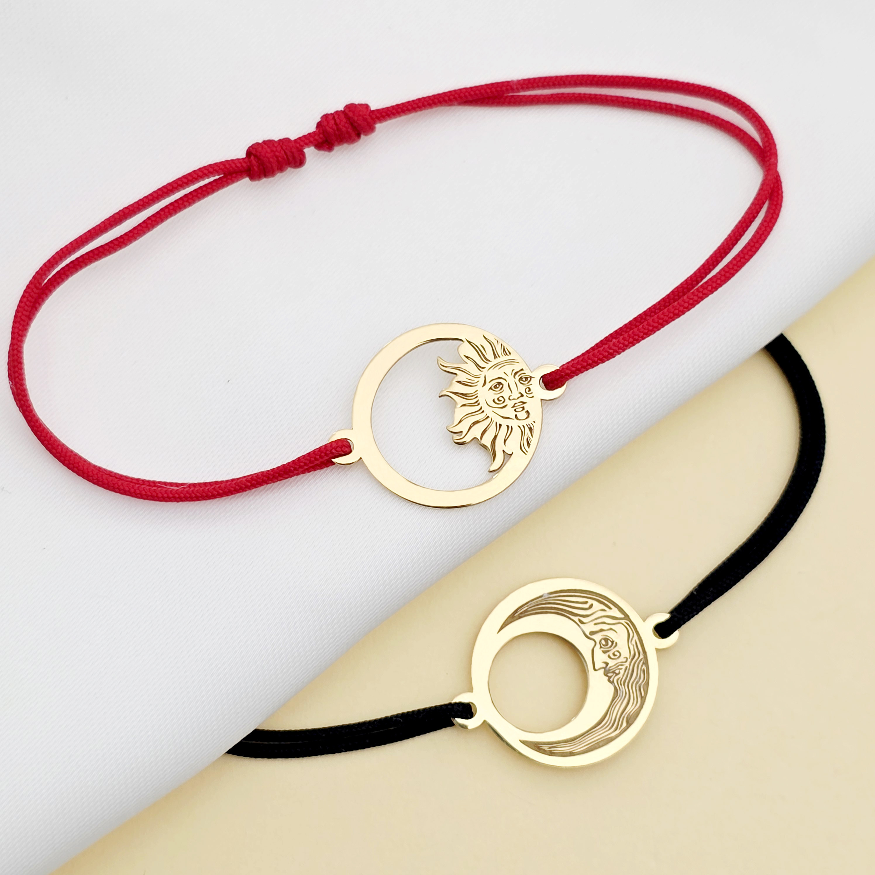 Set 2 bratari personalizate - Luna si Soare - Argint 925 placat cu Aur Galben 18K , snur reglabil