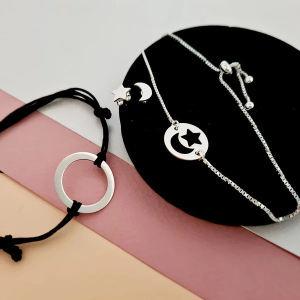 - Pentru Mama: Bratara banut cu luna si stea decupate
