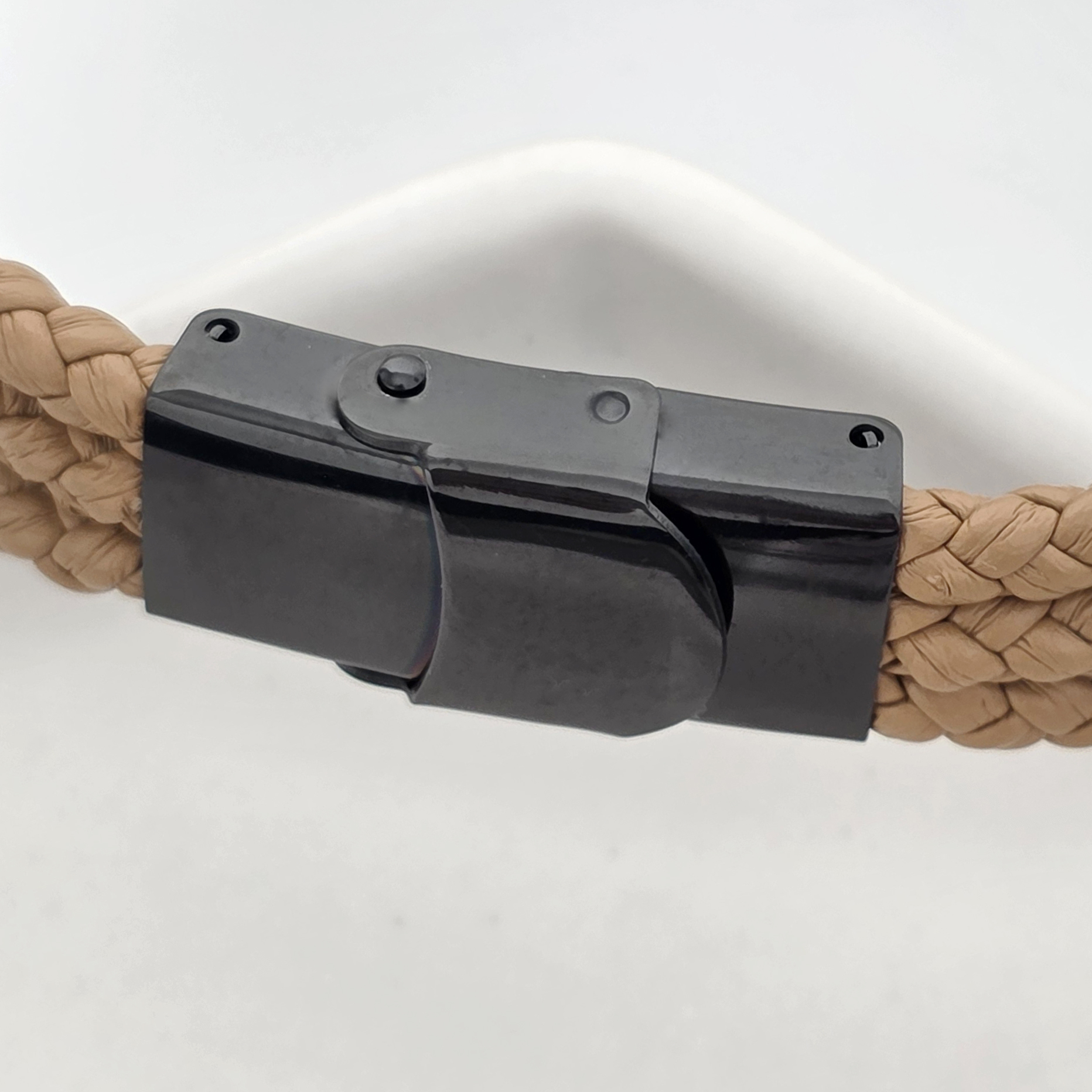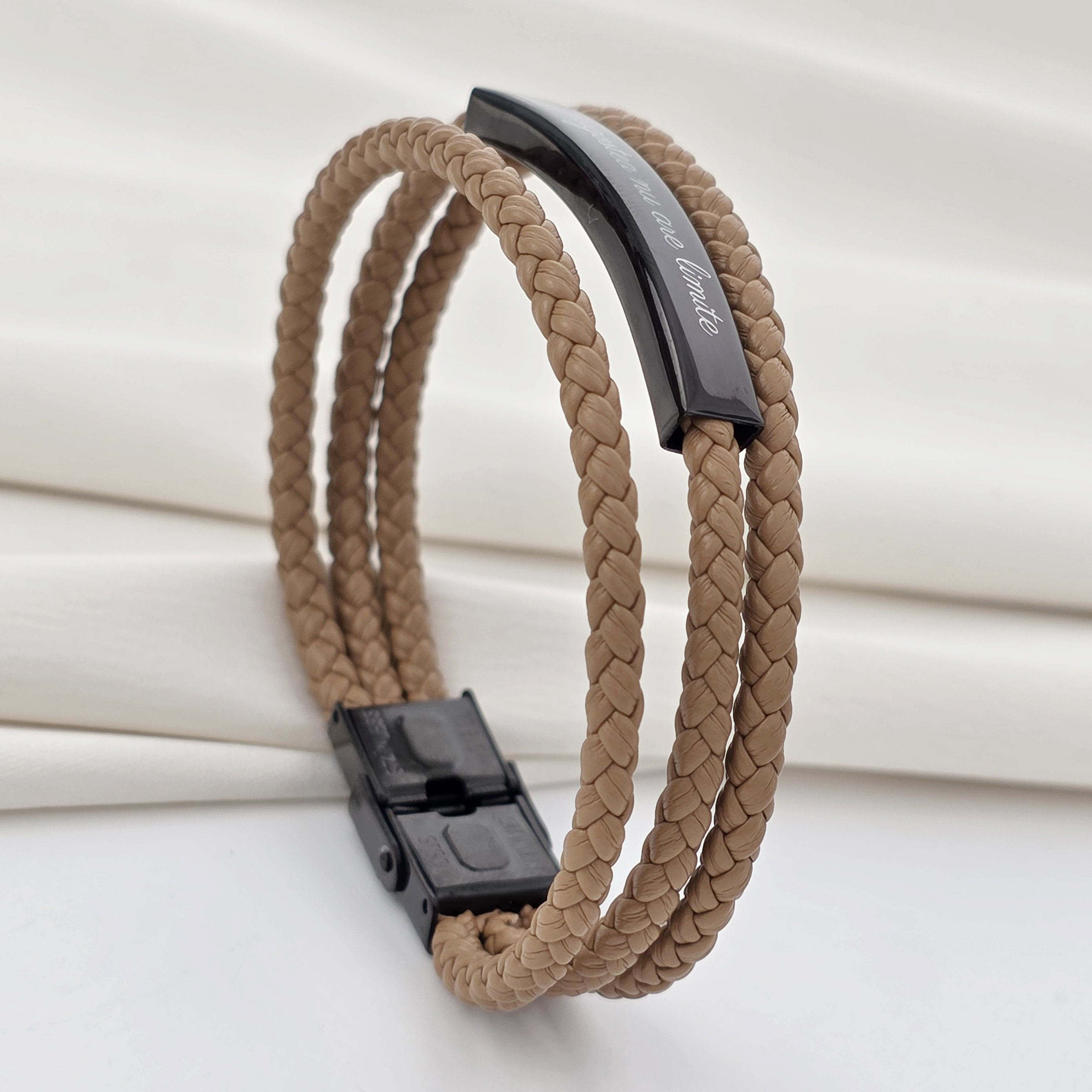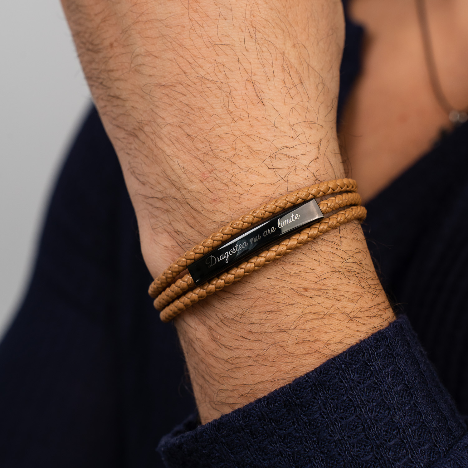 Această brățară bărbătească este realizată din piele maro în 3 straturi, oferind un aspect robust și elegant. Elementul dreptunghiular din inox negru adaugă un accent modern și puternic. Închiderea tip clips este practică și sigură, ideală pentru purtare zilnică.