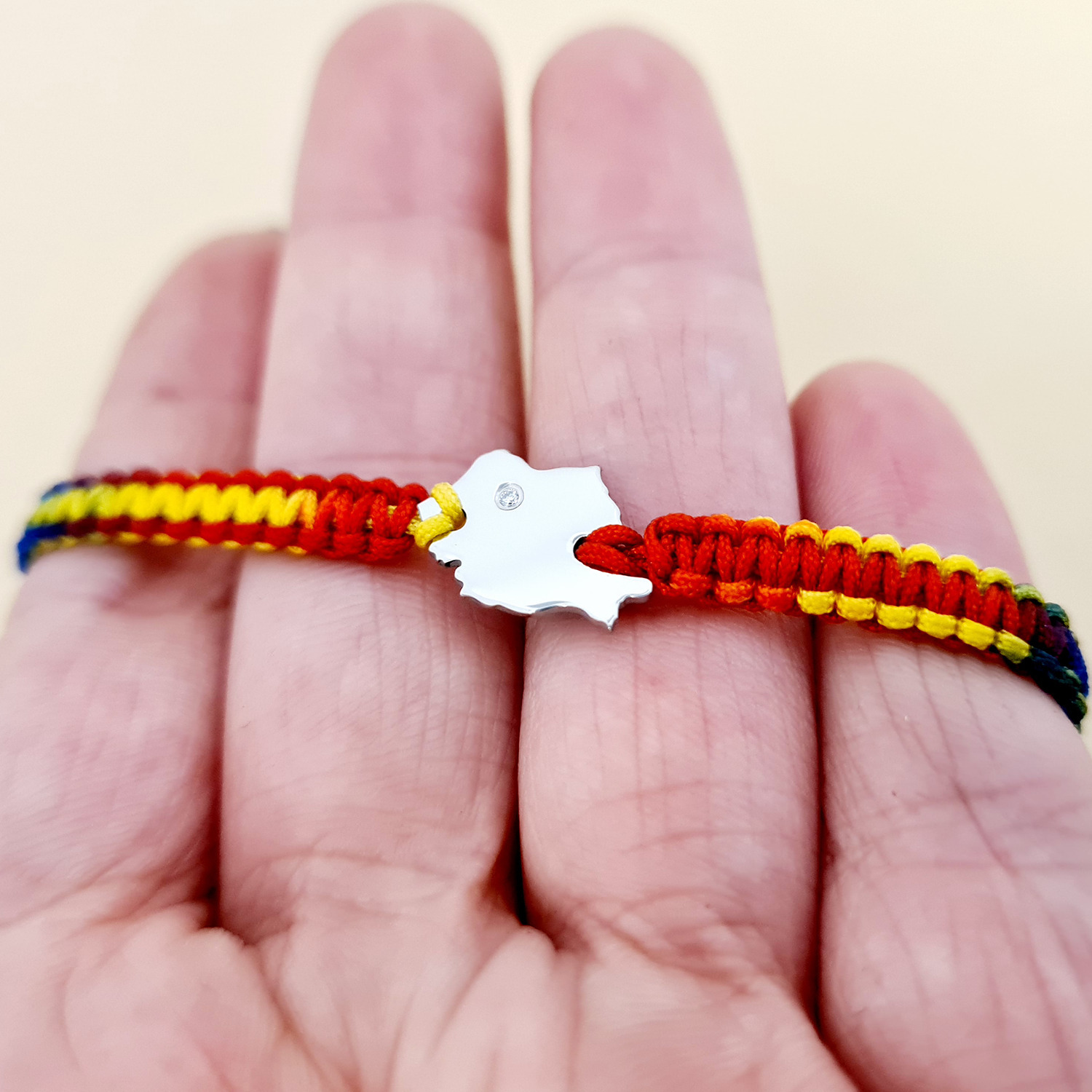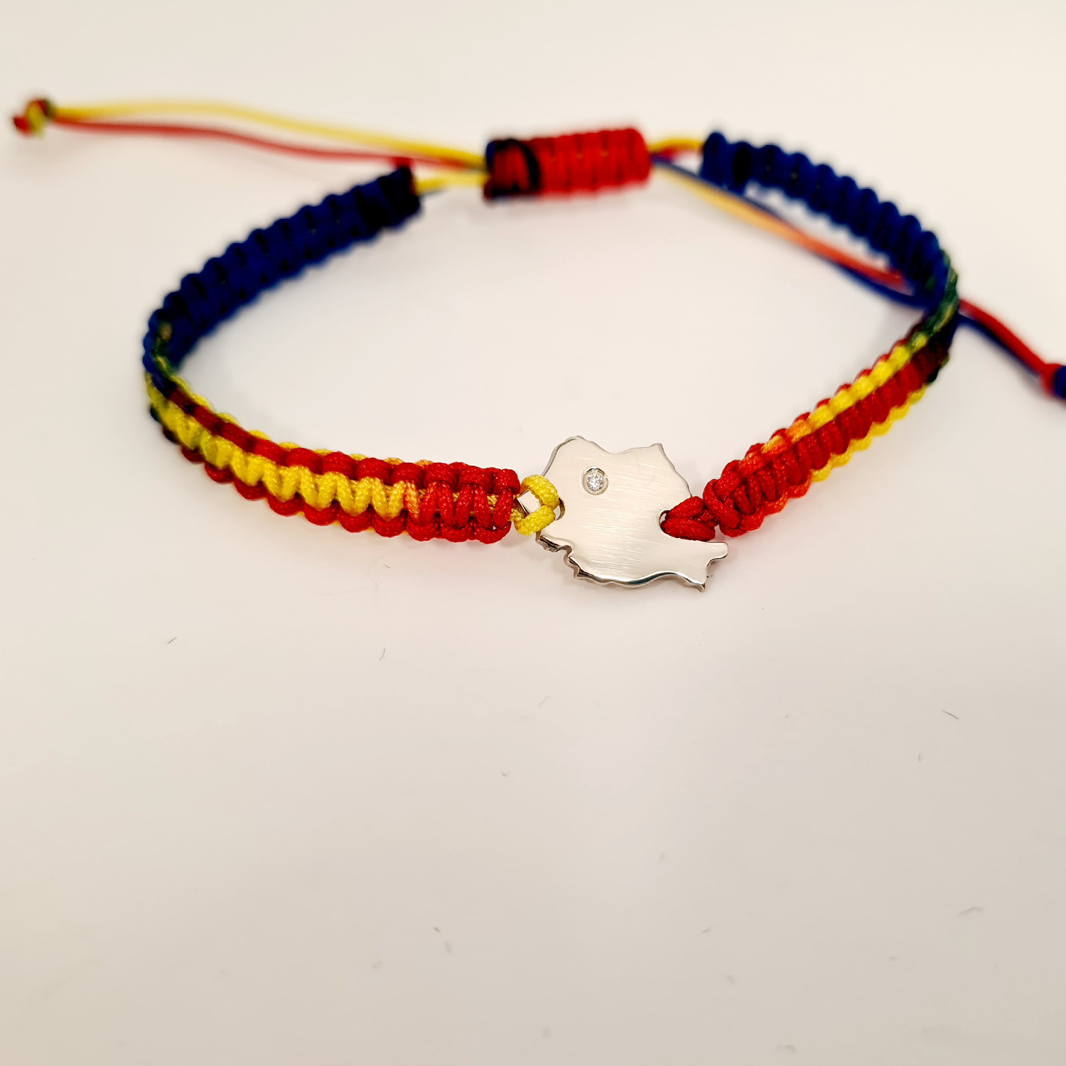 Bratara personalizata - Harta Romaniei cu Diamant natural - Argint 925 - Snur impletit tricolor