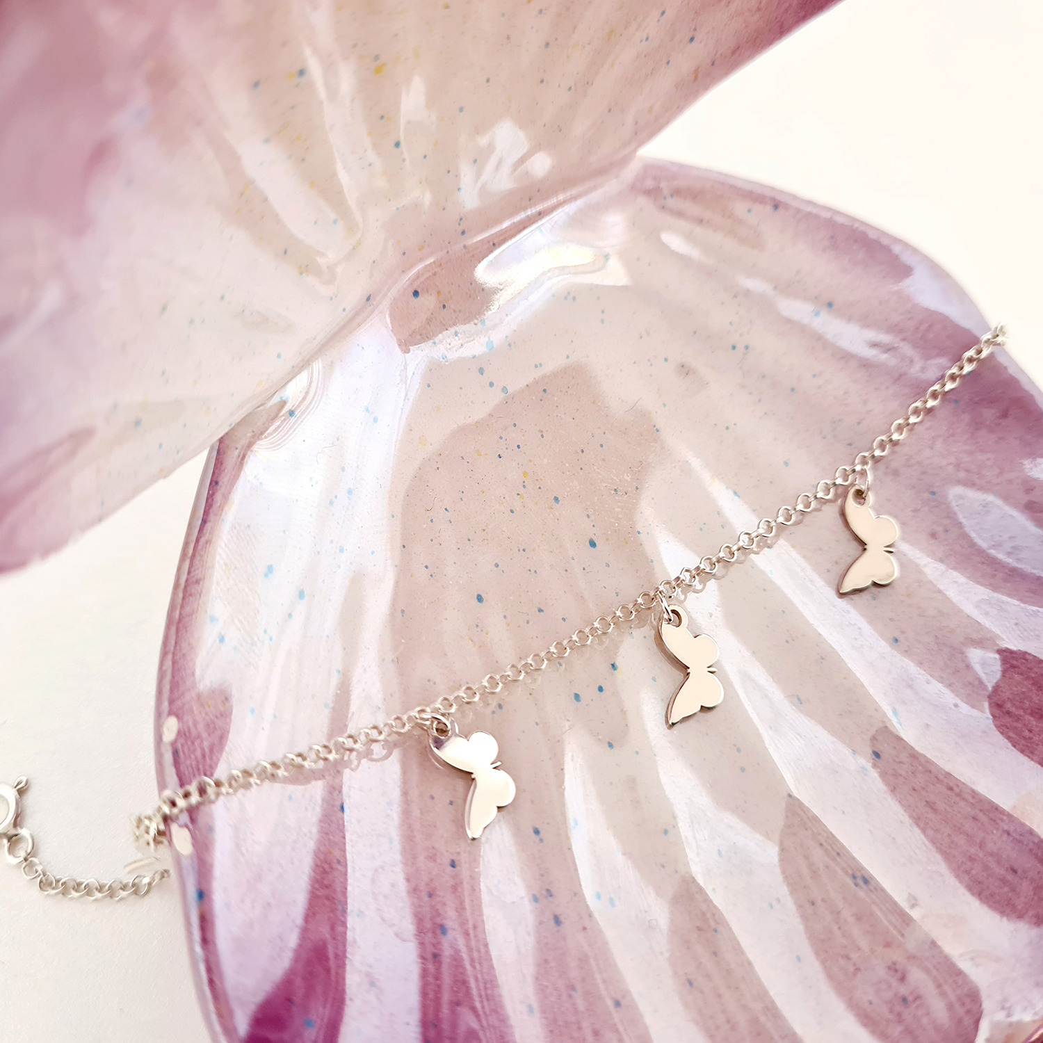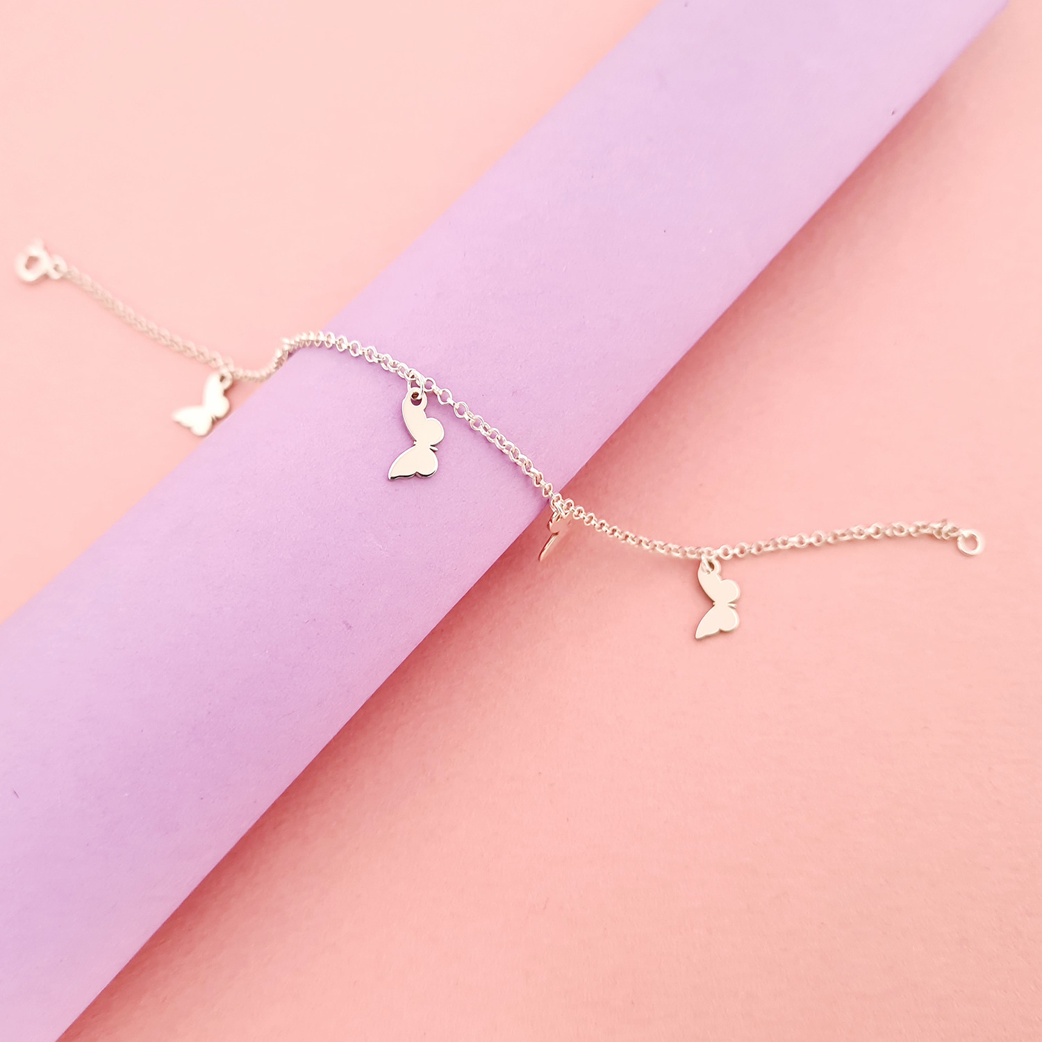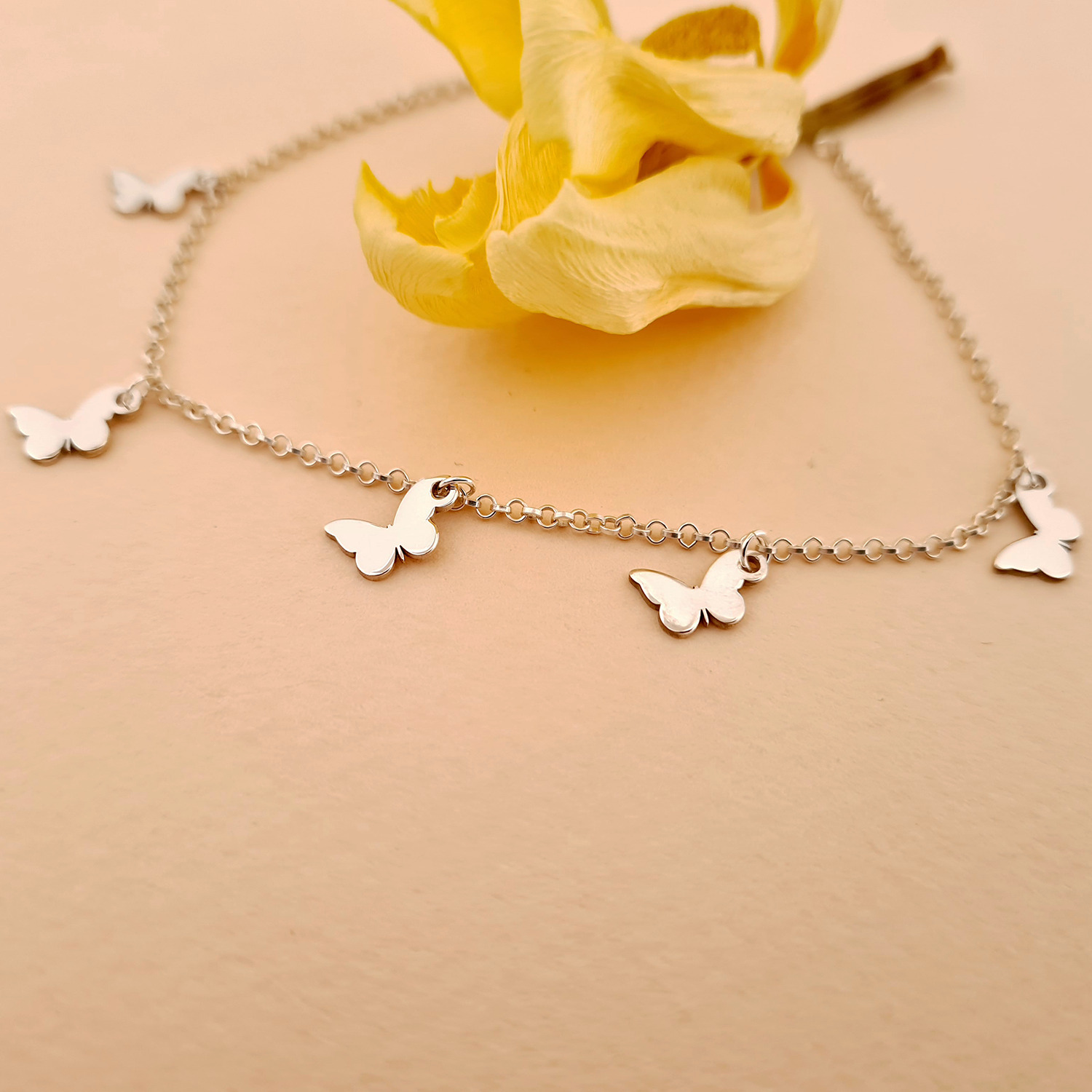 Bratara You’re My Butterfly - Model cu 5 fluturi si lantisor realizat pe marimea - Argint 925