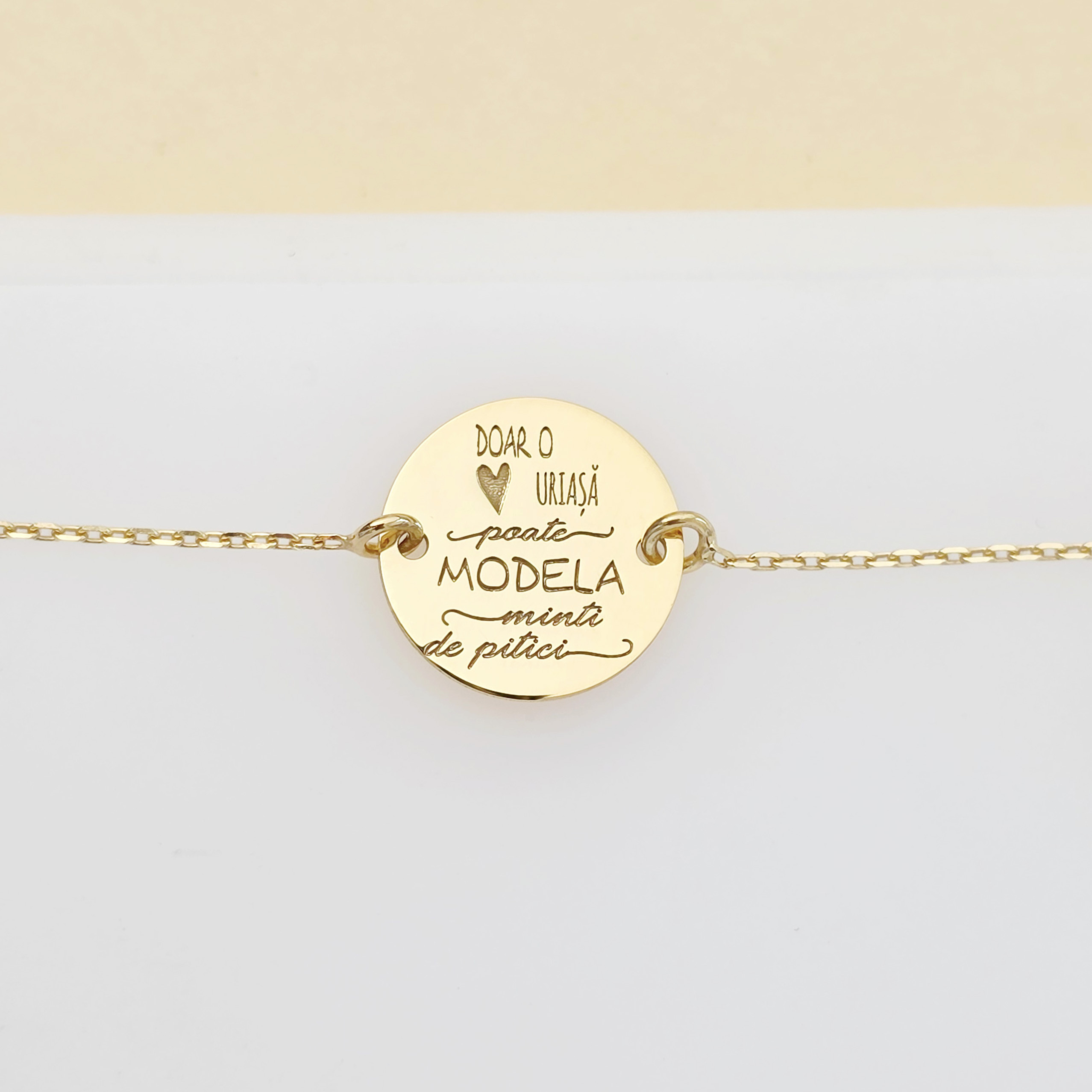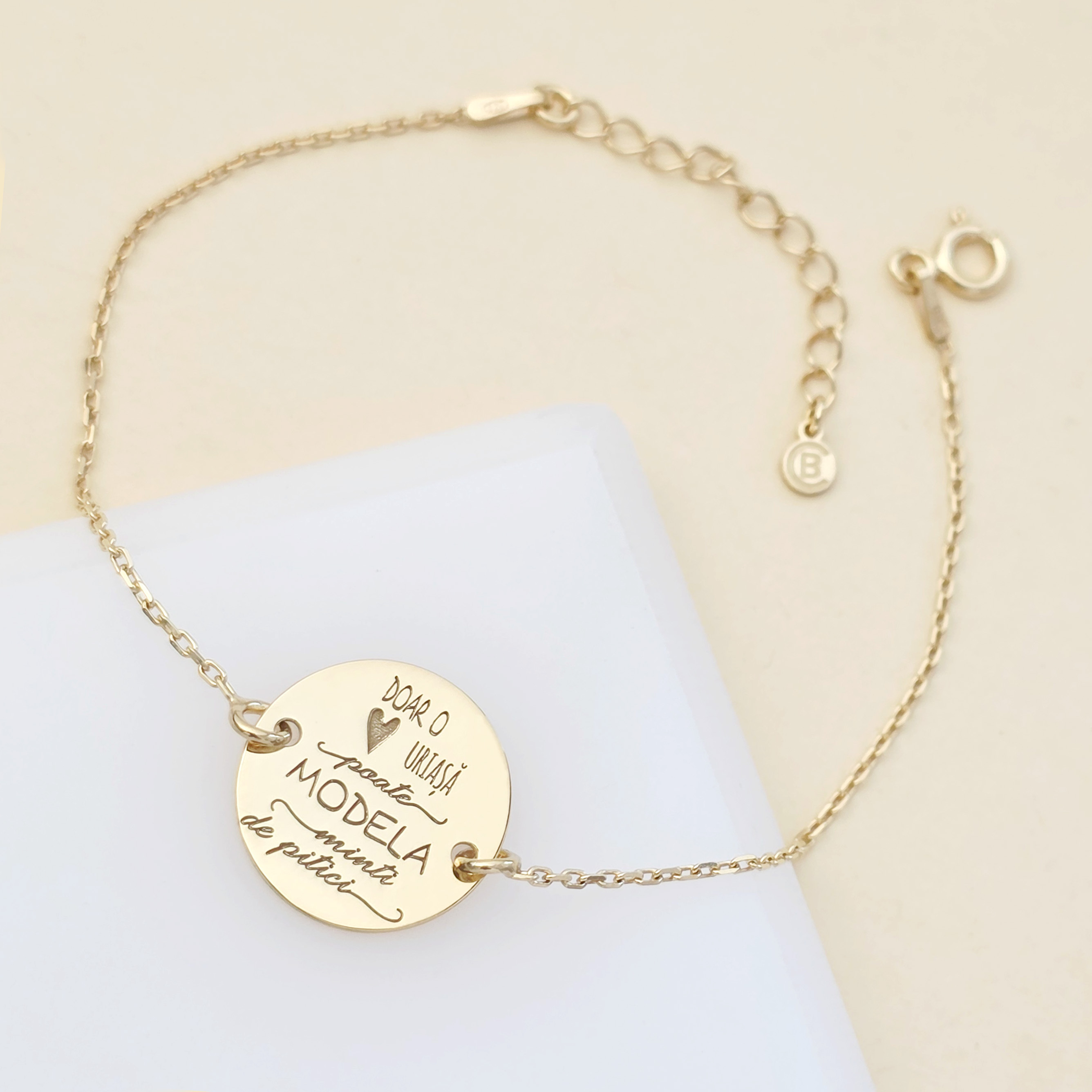 Da, realizam bijuterii pentru copii, inclusiv bratari delicate din aur, cercei aur copii si bebelusi sau pandantive simbolice. Modelele sunt adaptate varstei – atat ca marime, cat si ca sistem de inchidere – si pot fi personalizate cu nume, initiale sau simboluri dragi. Sunt bijuterii sigure, create cu grija si gandite sa insoteasca copilul de la primele momente speciale din viata.