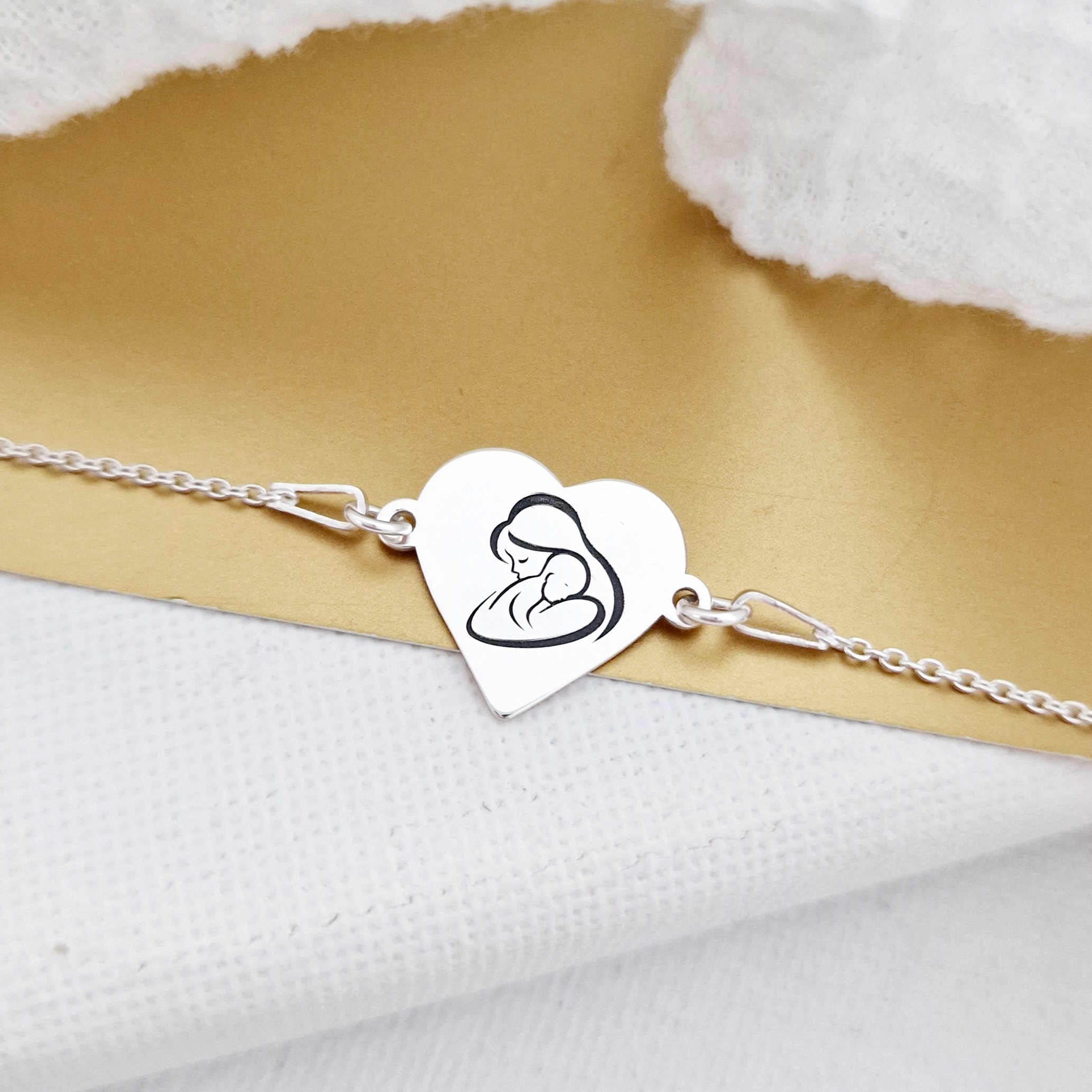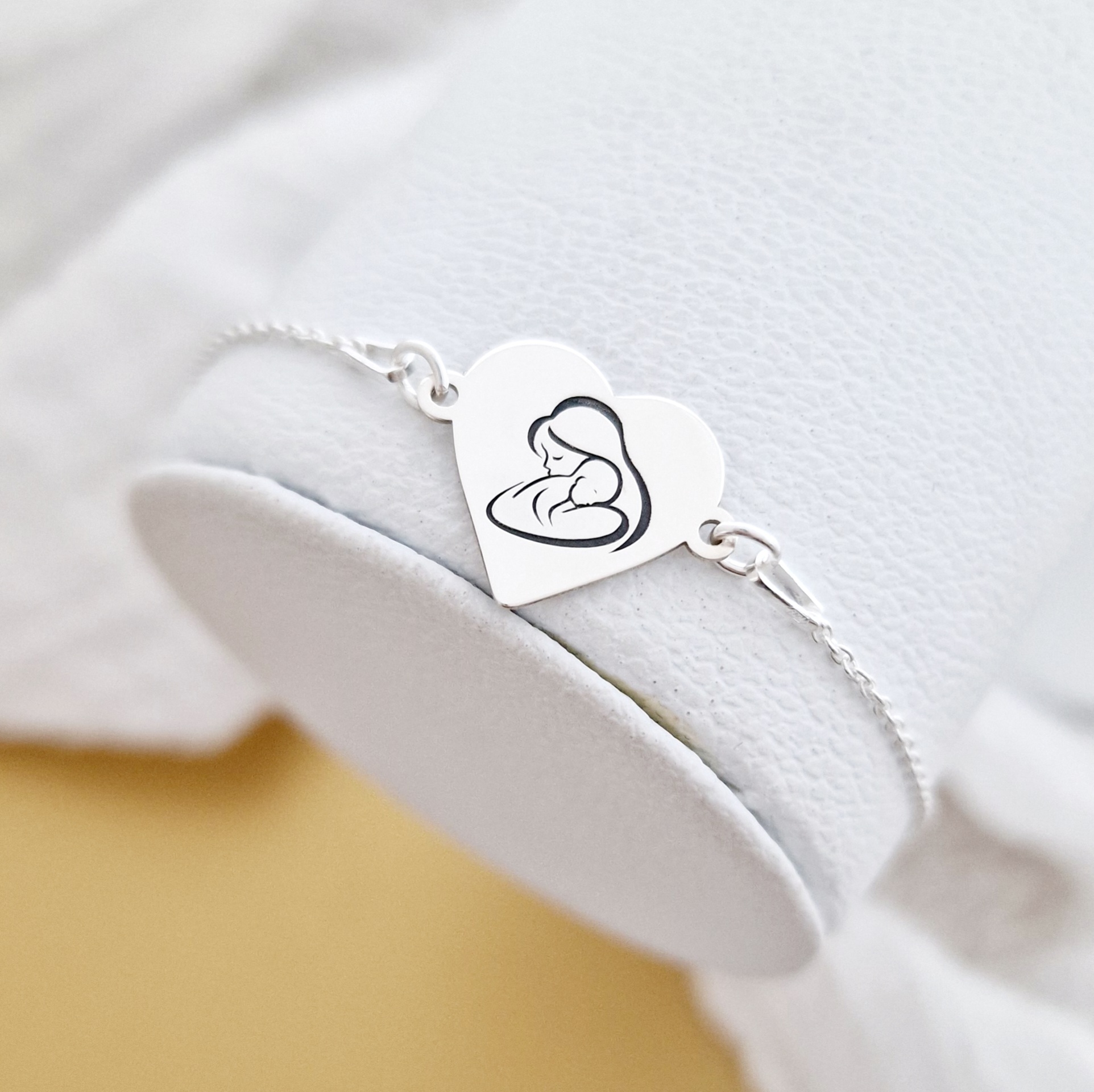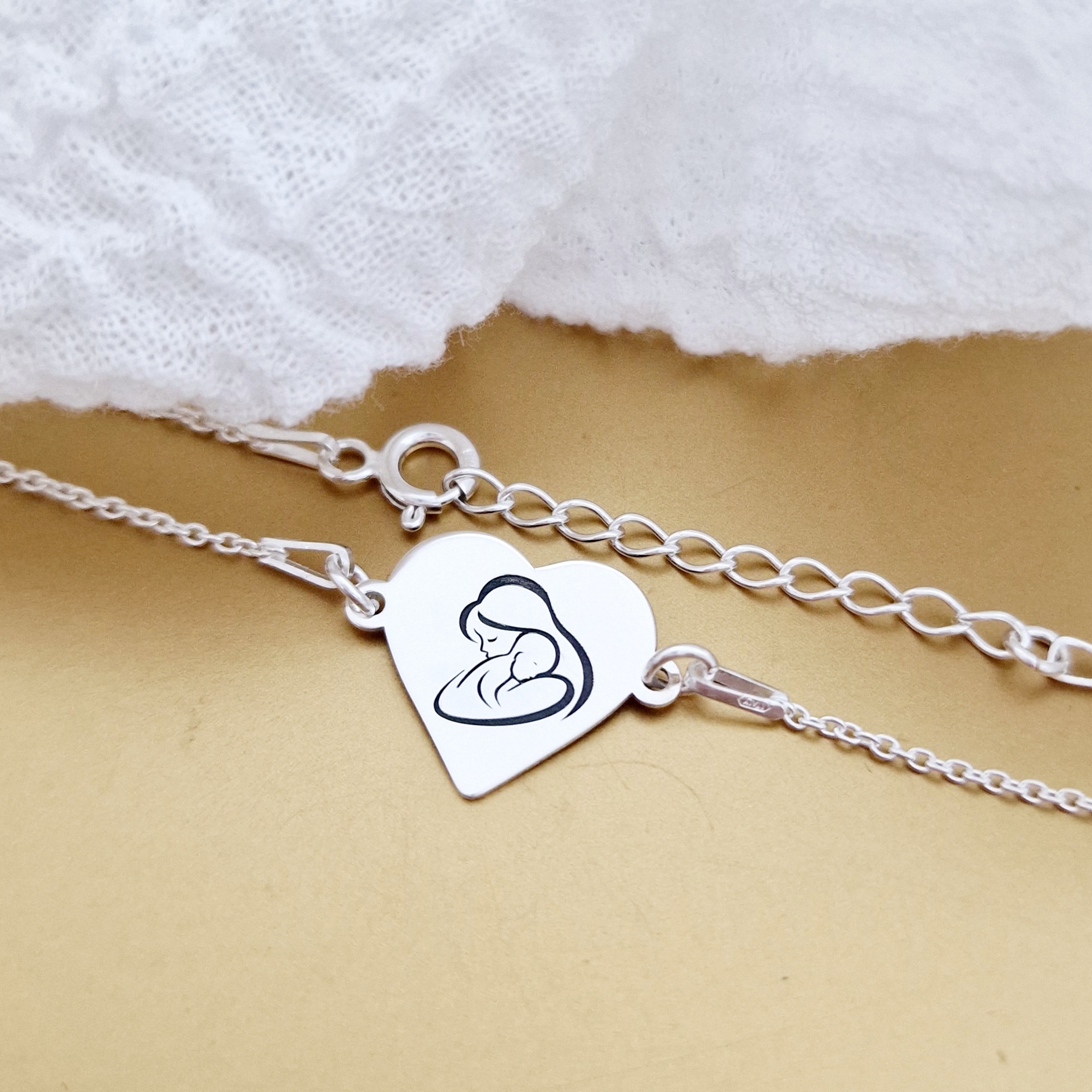 Bratara inima - Imbratisare Mama si Bebe - Argint 925 - cu lantisor