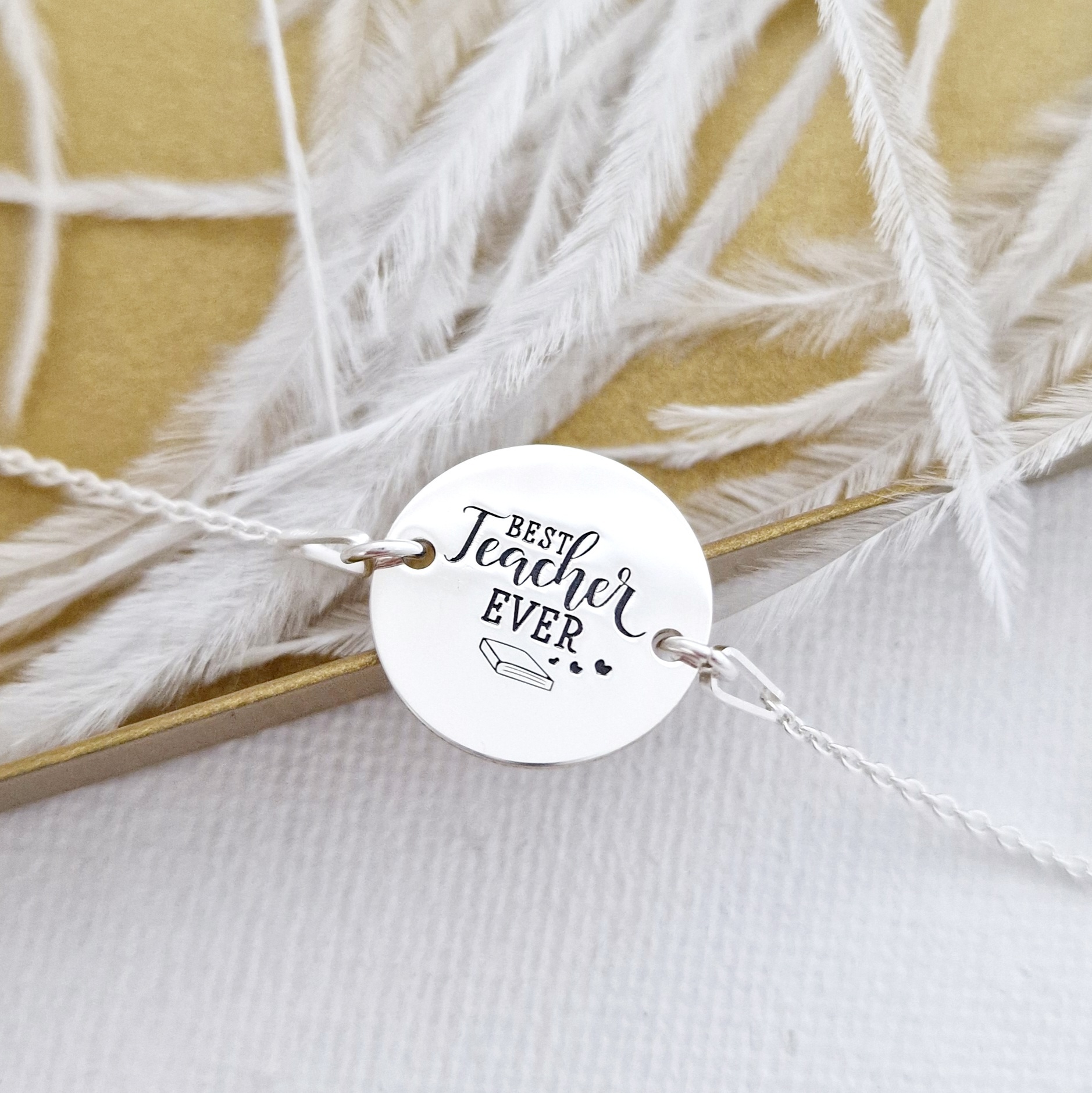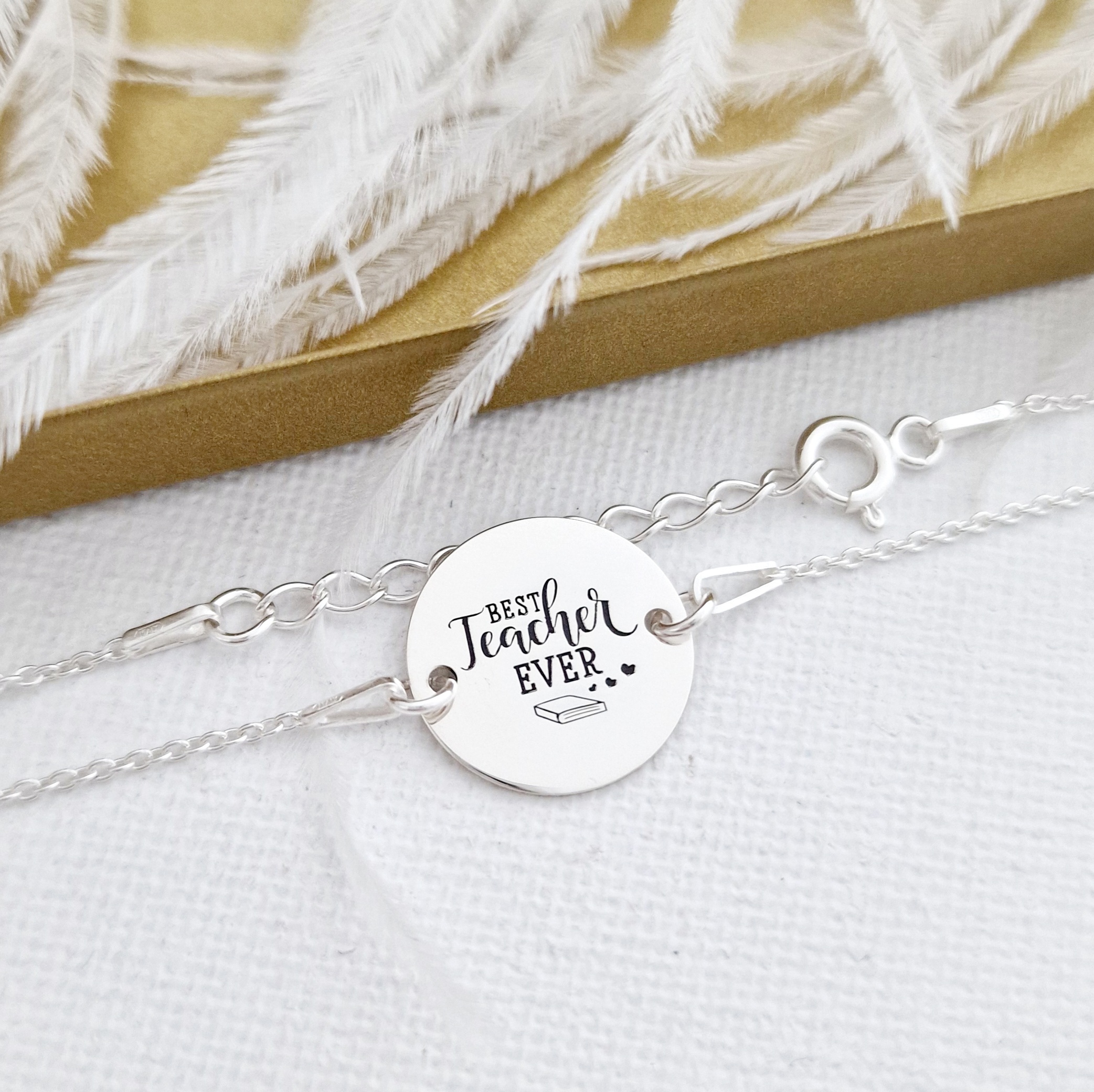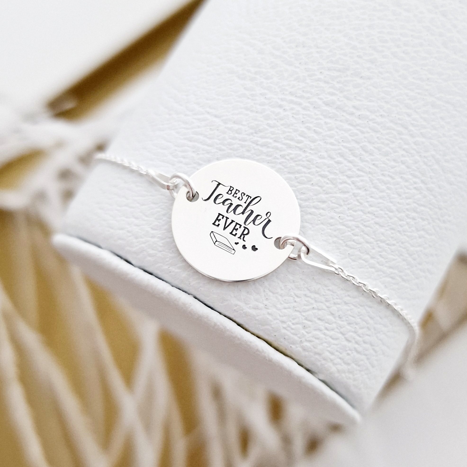 Bratara personalizata - Best Teacher - Banut de 15 mm - cu lantisor - Argint 925