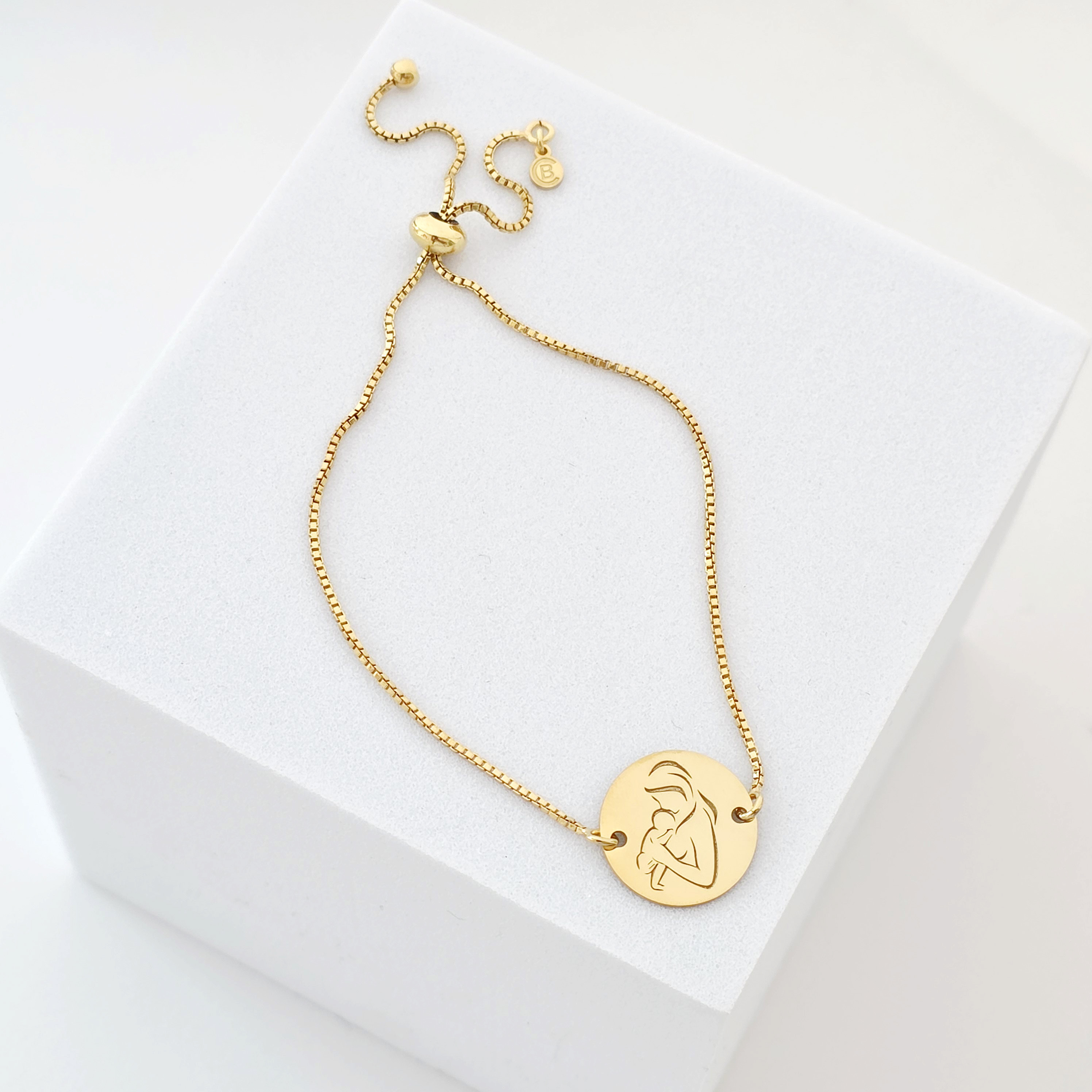 Bratara personalizata - Proaspata Mamica - Argint 925 placat cu Aur Galben 18K - Lantisor glisant ajustabil