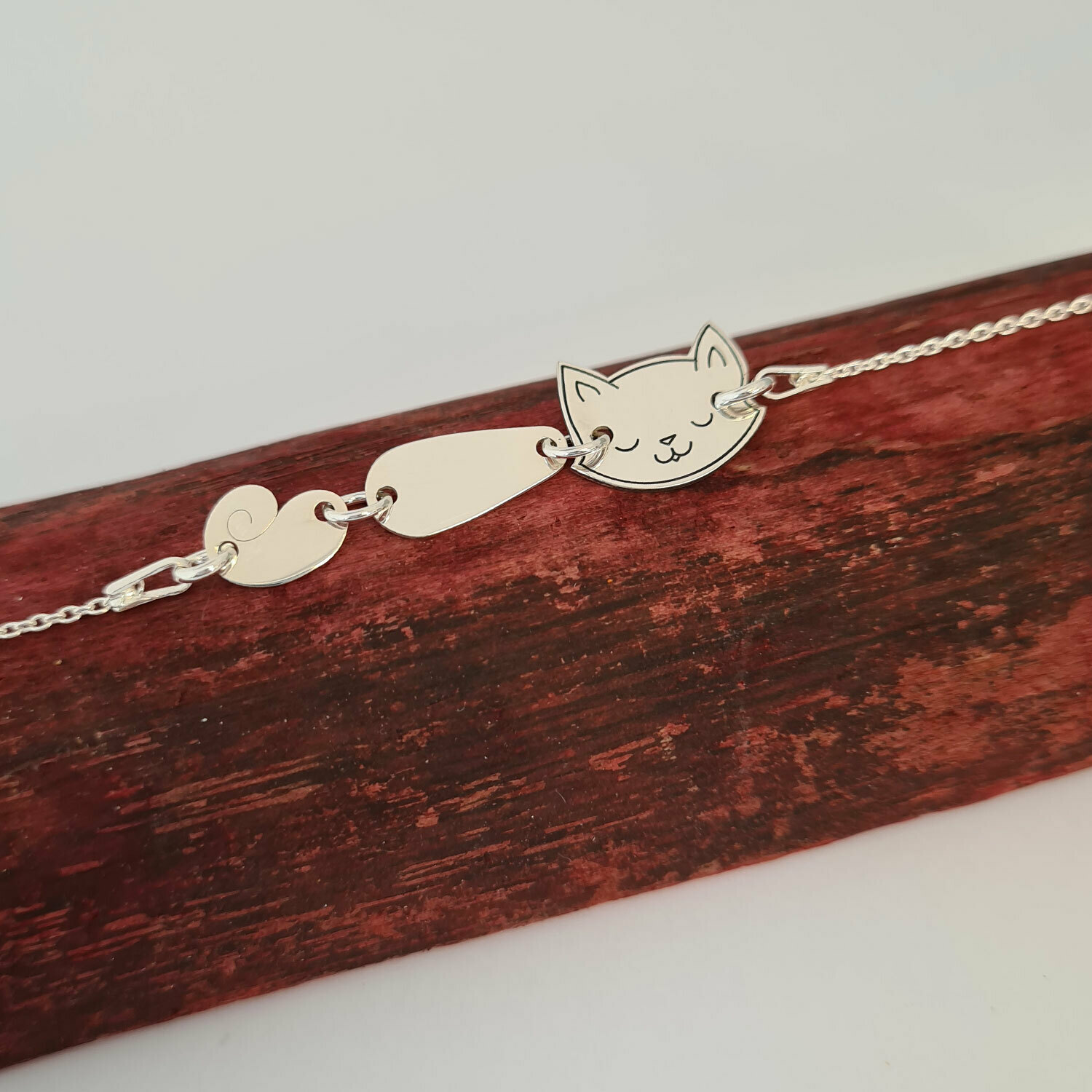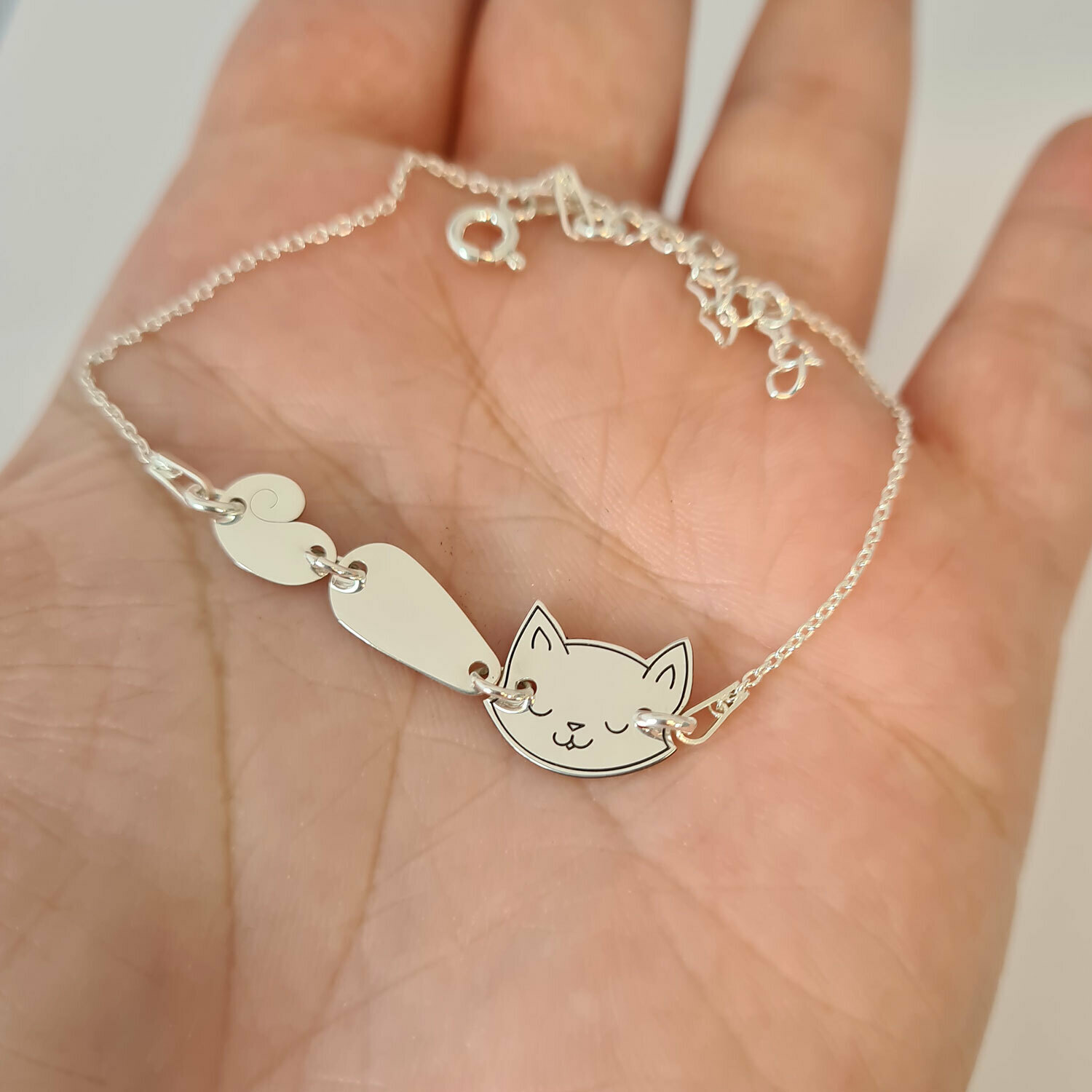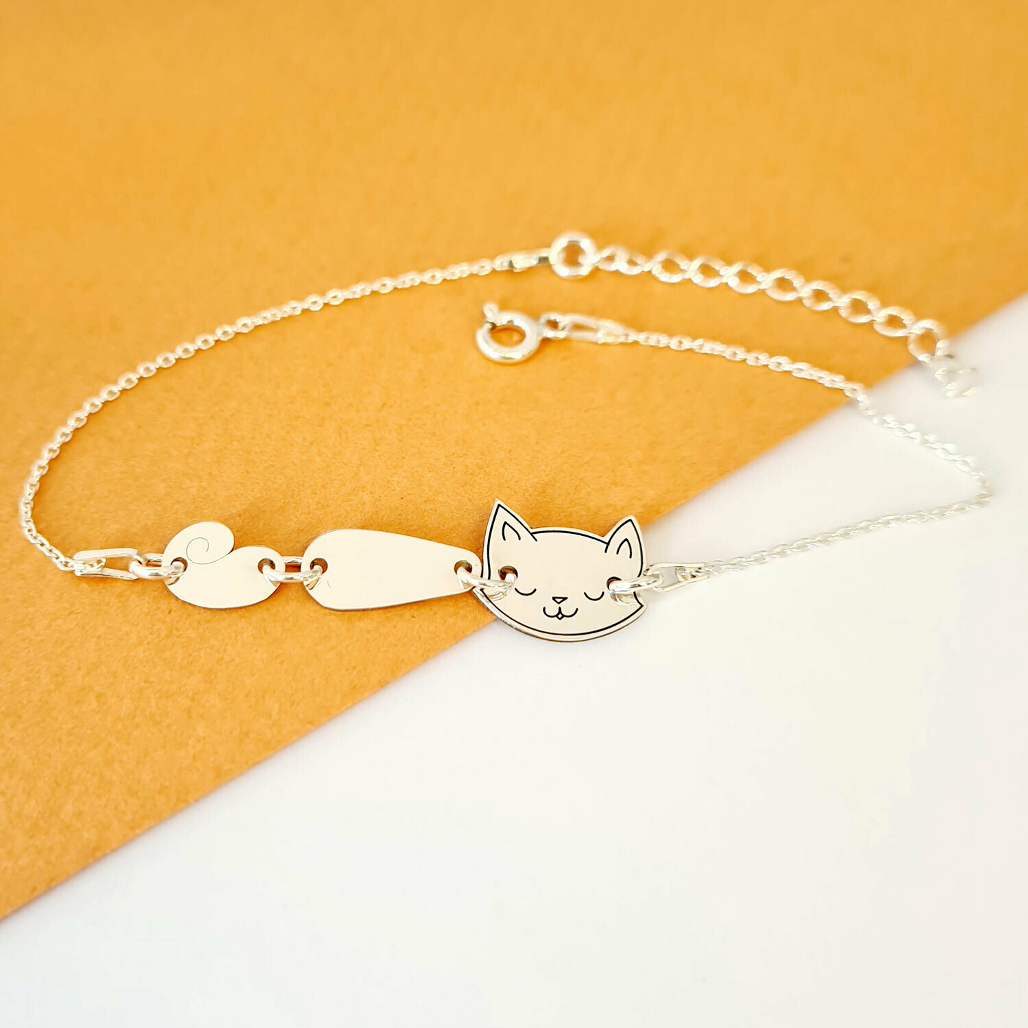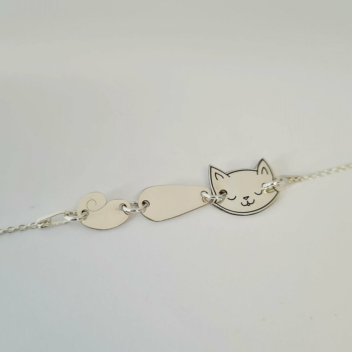 Bratara pisica unita - Cap, corp si coada - Argint 925 - cu lantisor