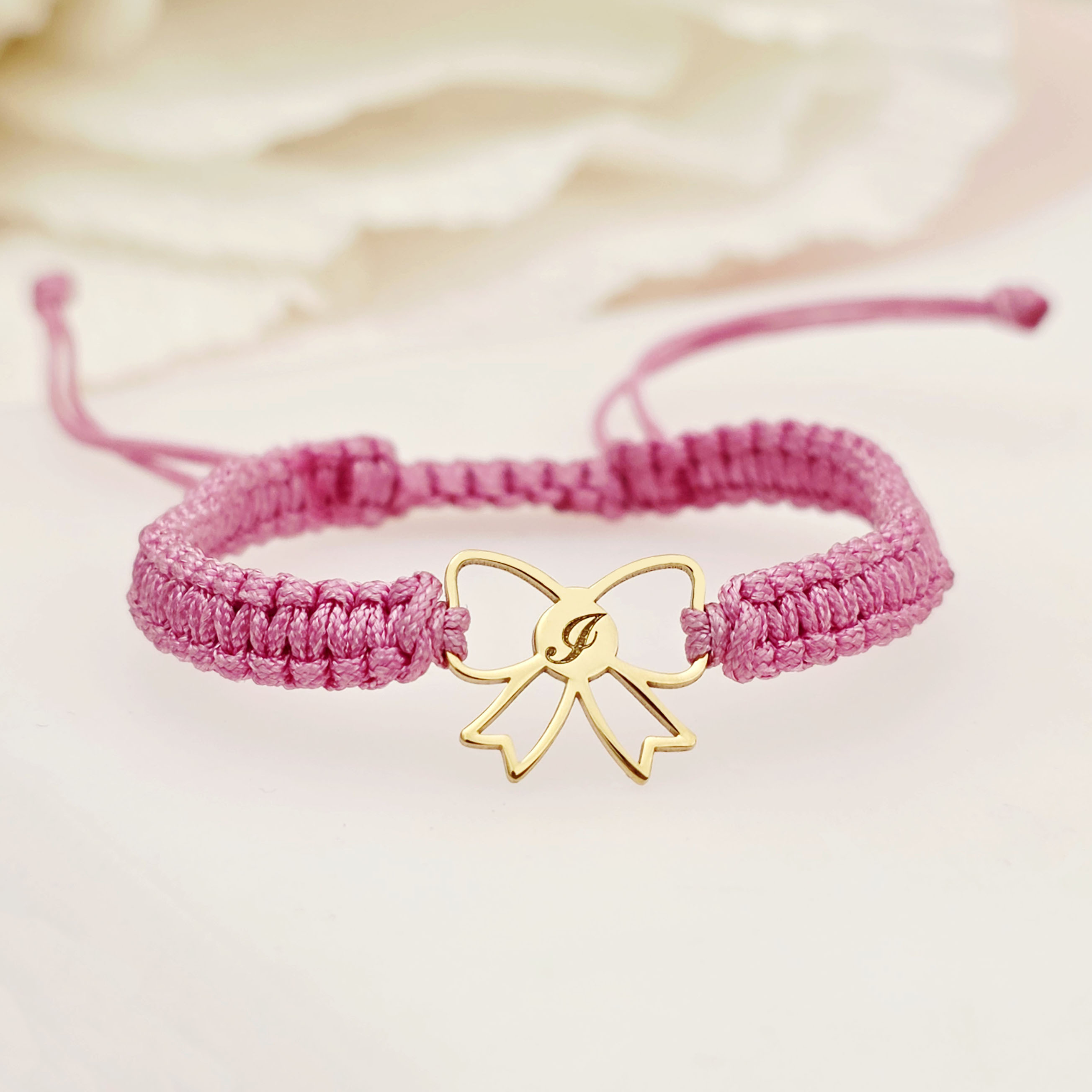 Bratara fundita decupata - Personalizata cu initiala - Argint 925 placat cu Aur Galben 18K - Snur impletit reglabil