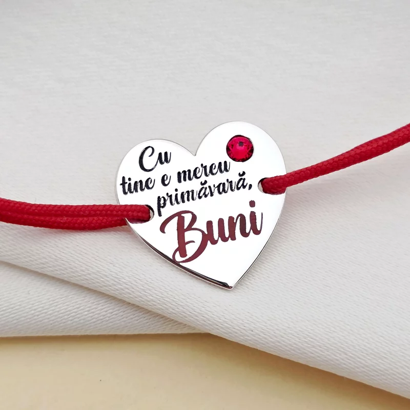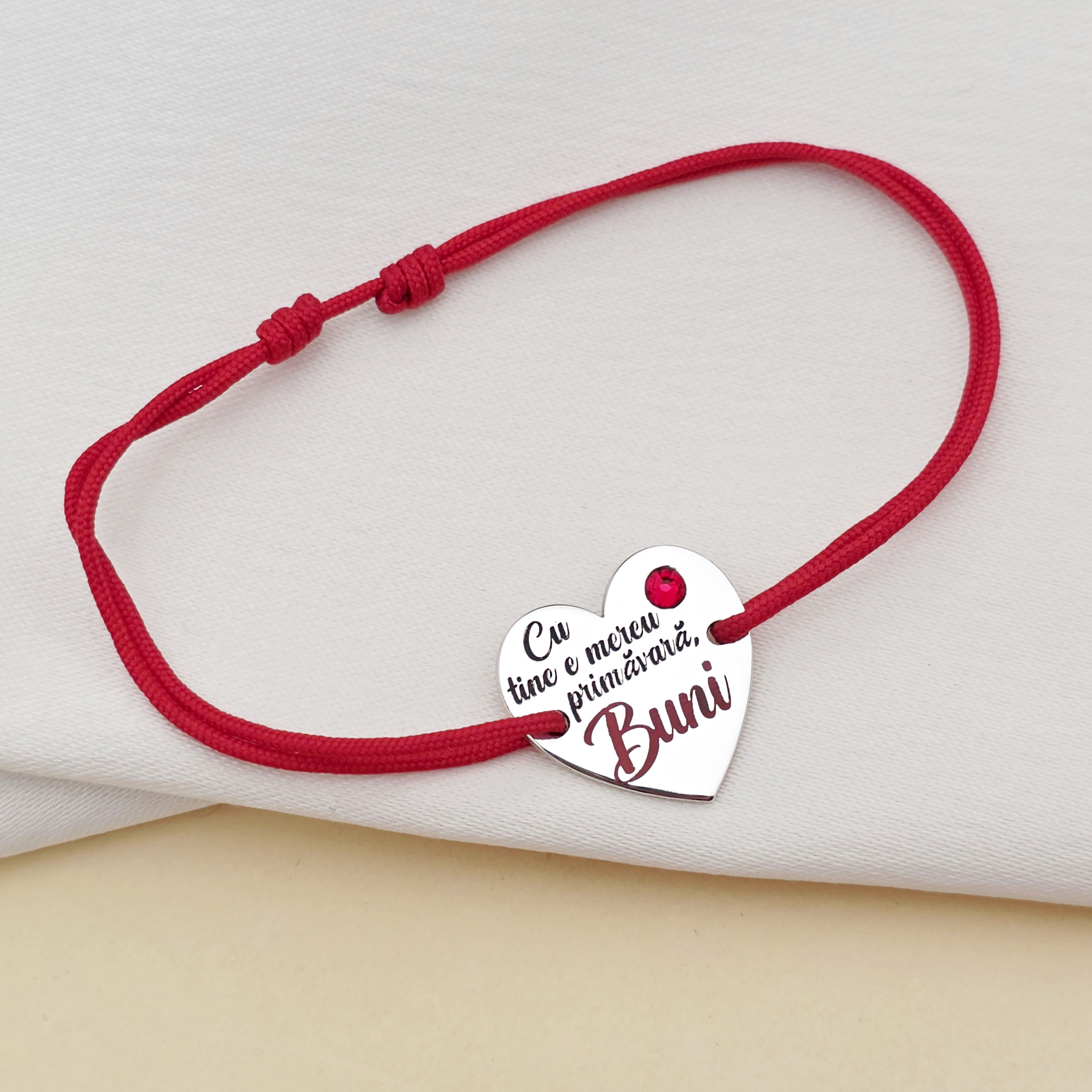 Brățară Inimă - Primăvara mea, Buni - Argint 925 cu Cristal Swarovski - Snur reglabil, diverse culori