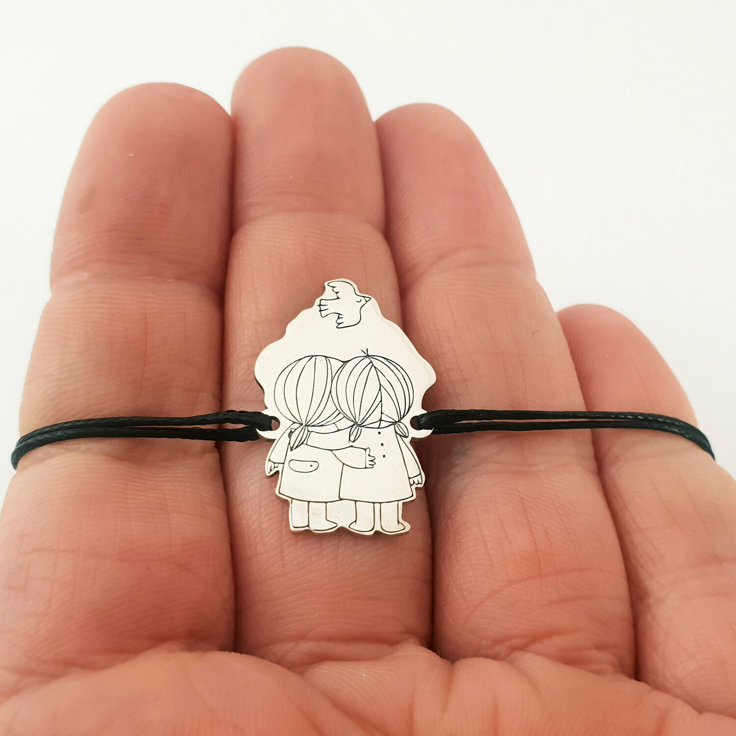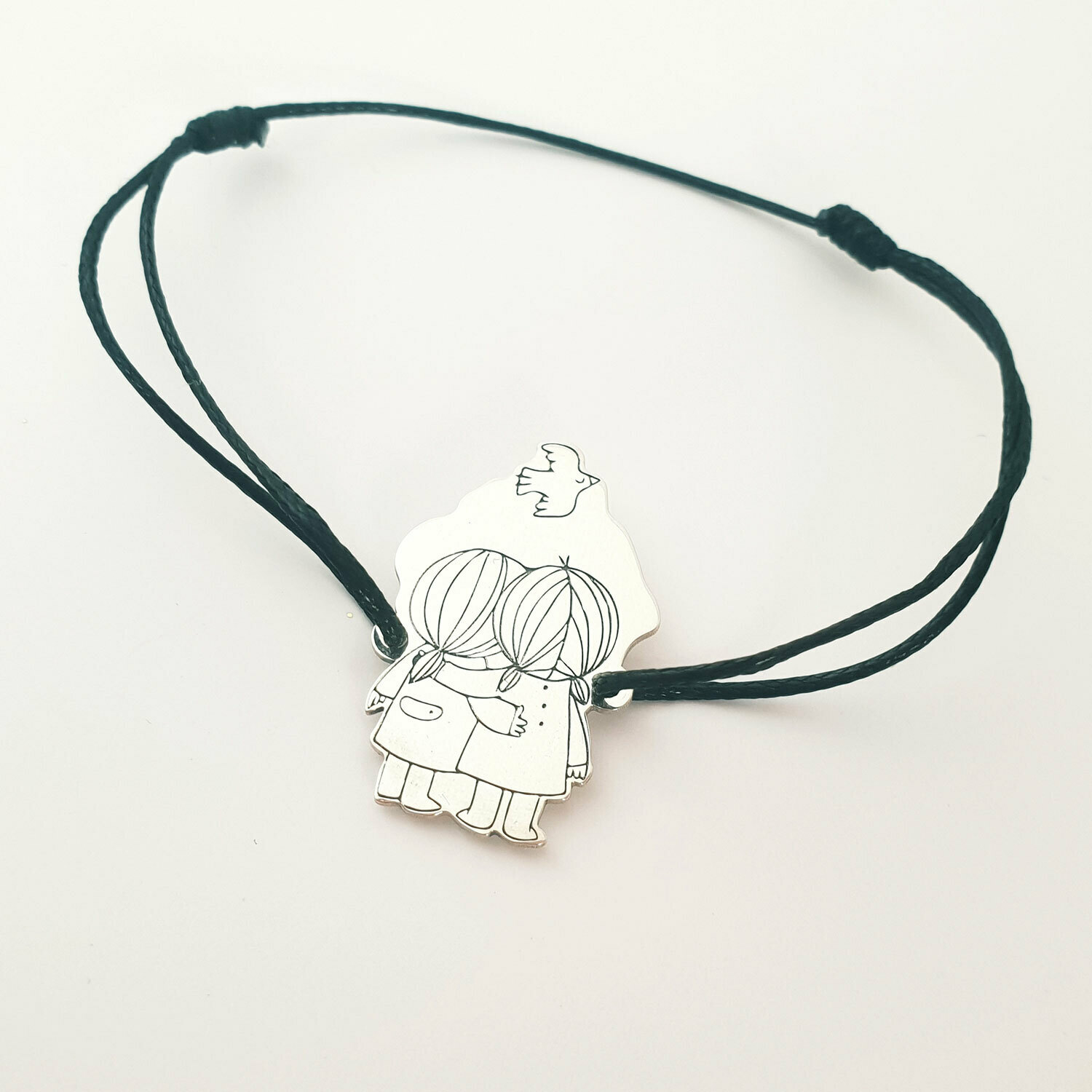 Bratara personalizata - 2 siluete - Surori - Prietene - Pasare - Argint 925 - snur reglabil