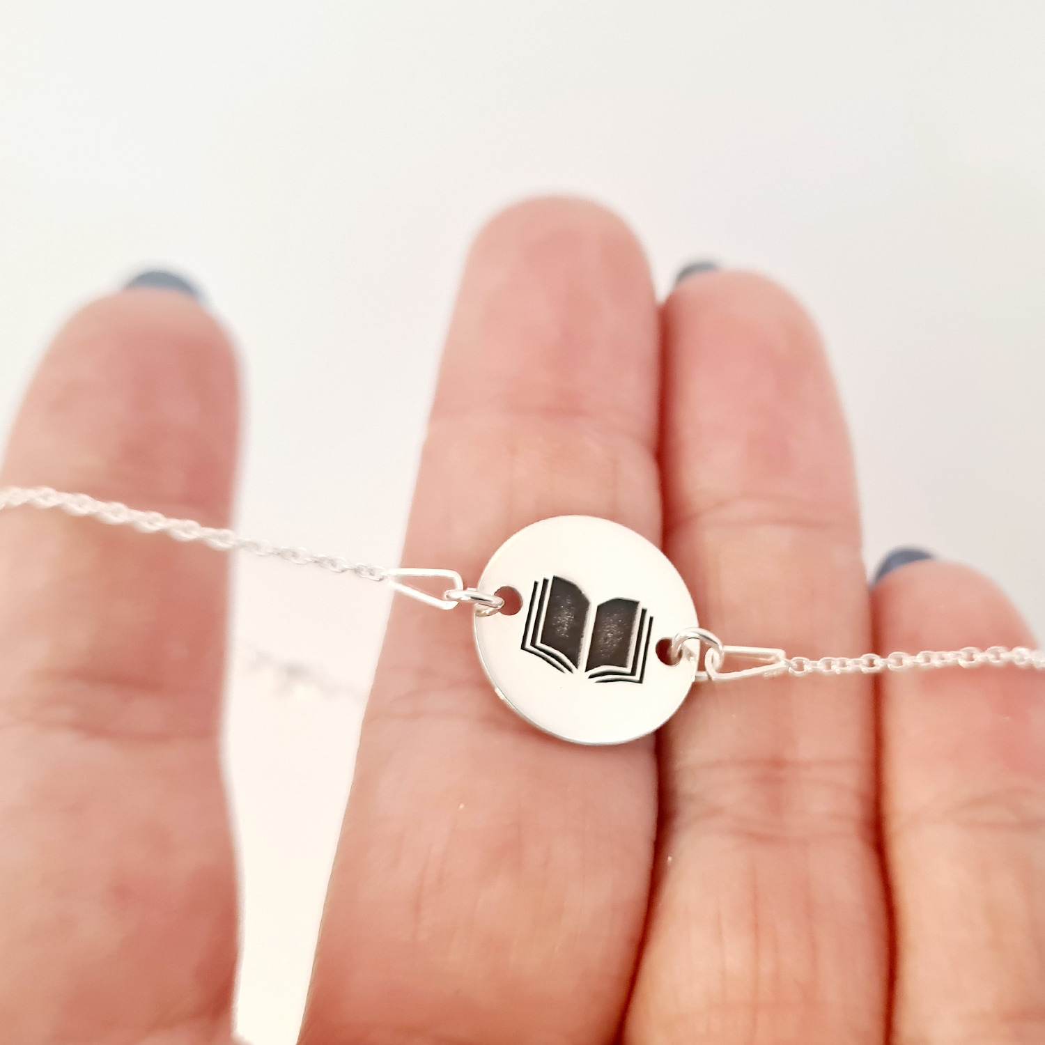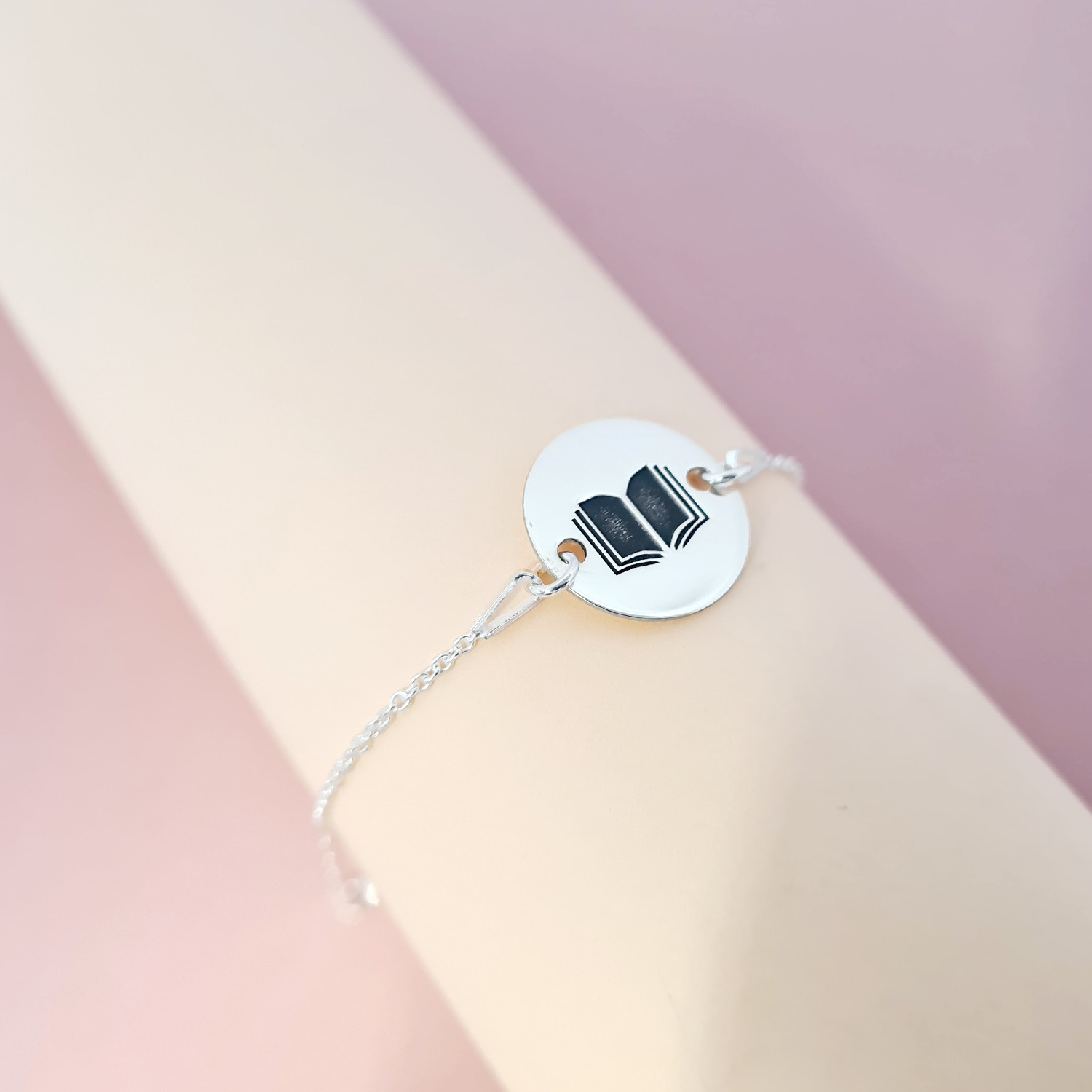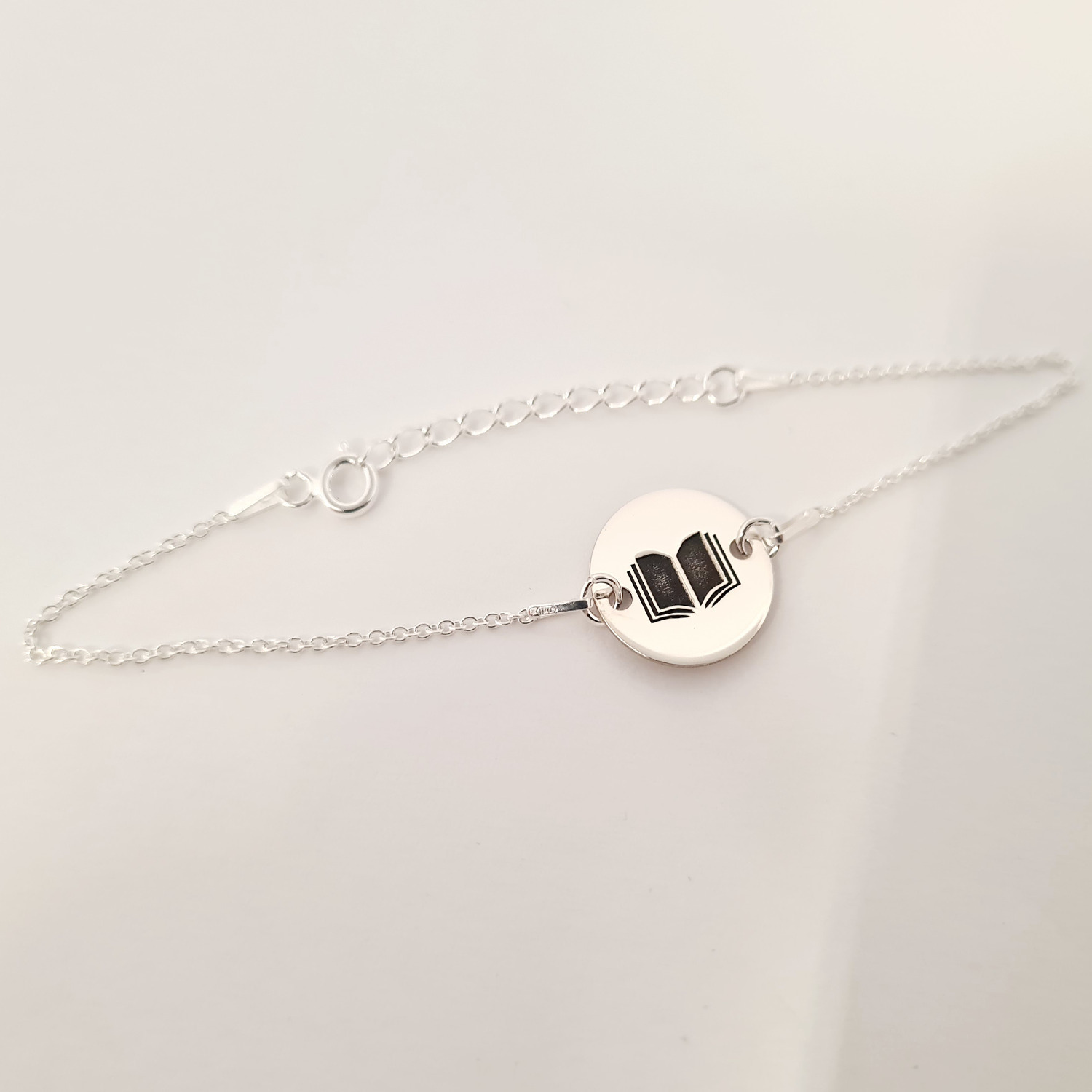 Bratara personalizata cu simbol materie scoala - Carte - Banut de 15 mm cu lantisor - Argint 925