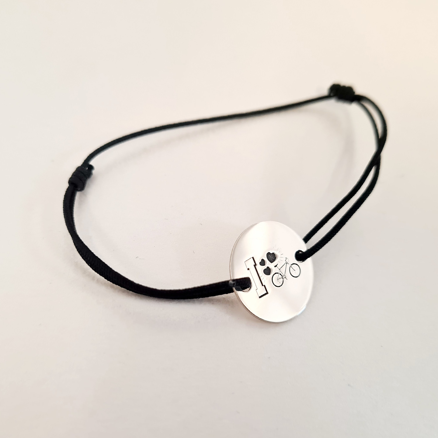 Bratara personalizata cu simbol materie scoala - Educatie fizica - Banut de 15 mm cu snur reglabil - Argint 925