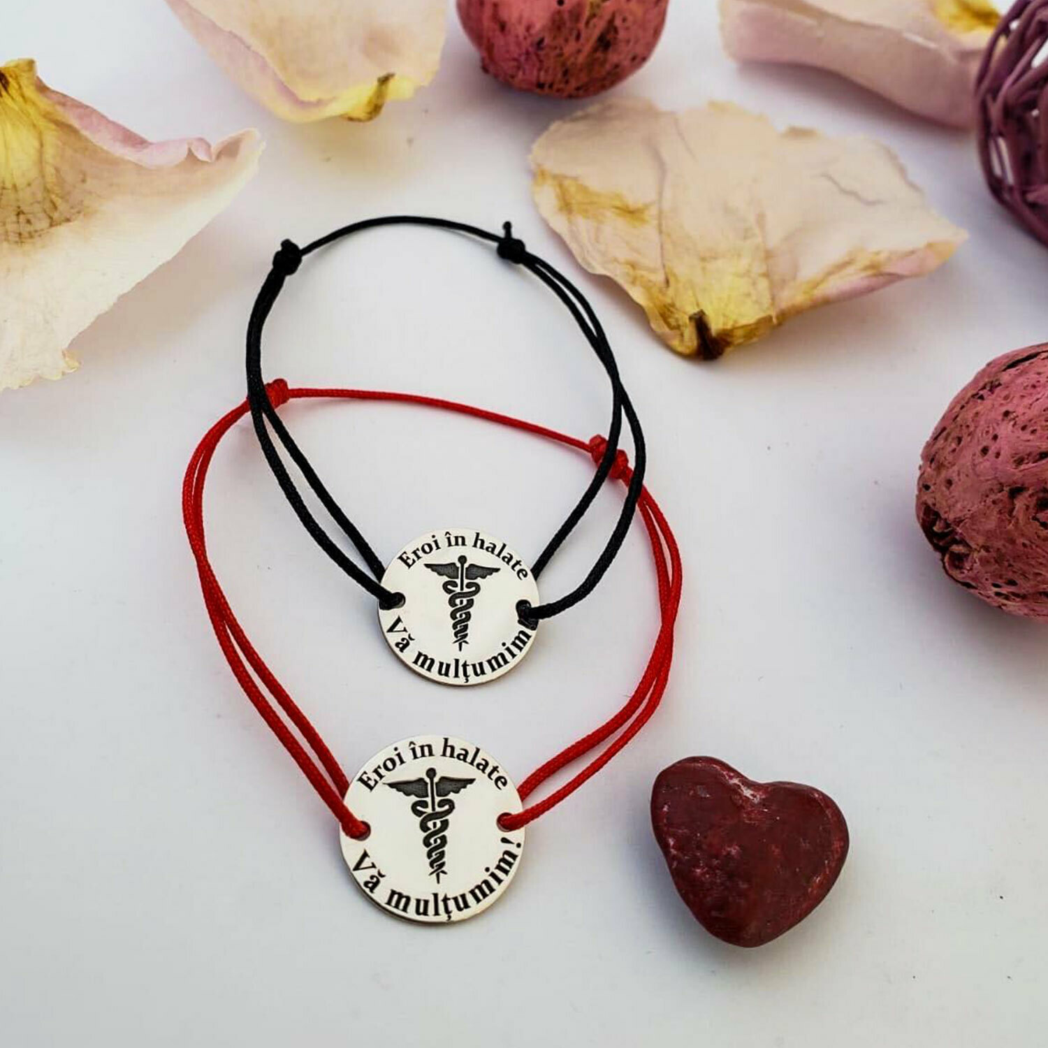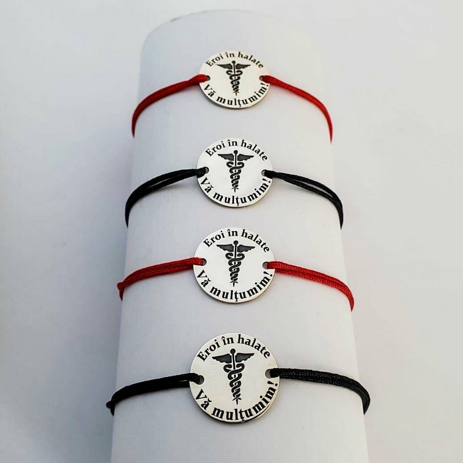 Pentru a ne arata sprijinul, am creat o bratara din Argint care sa fie simbolul recunostintei noastre fata de cadrele medicale, cei care sunt in prima linie zilele acestea, cu mesajul: Eroi in halate - va multumim!