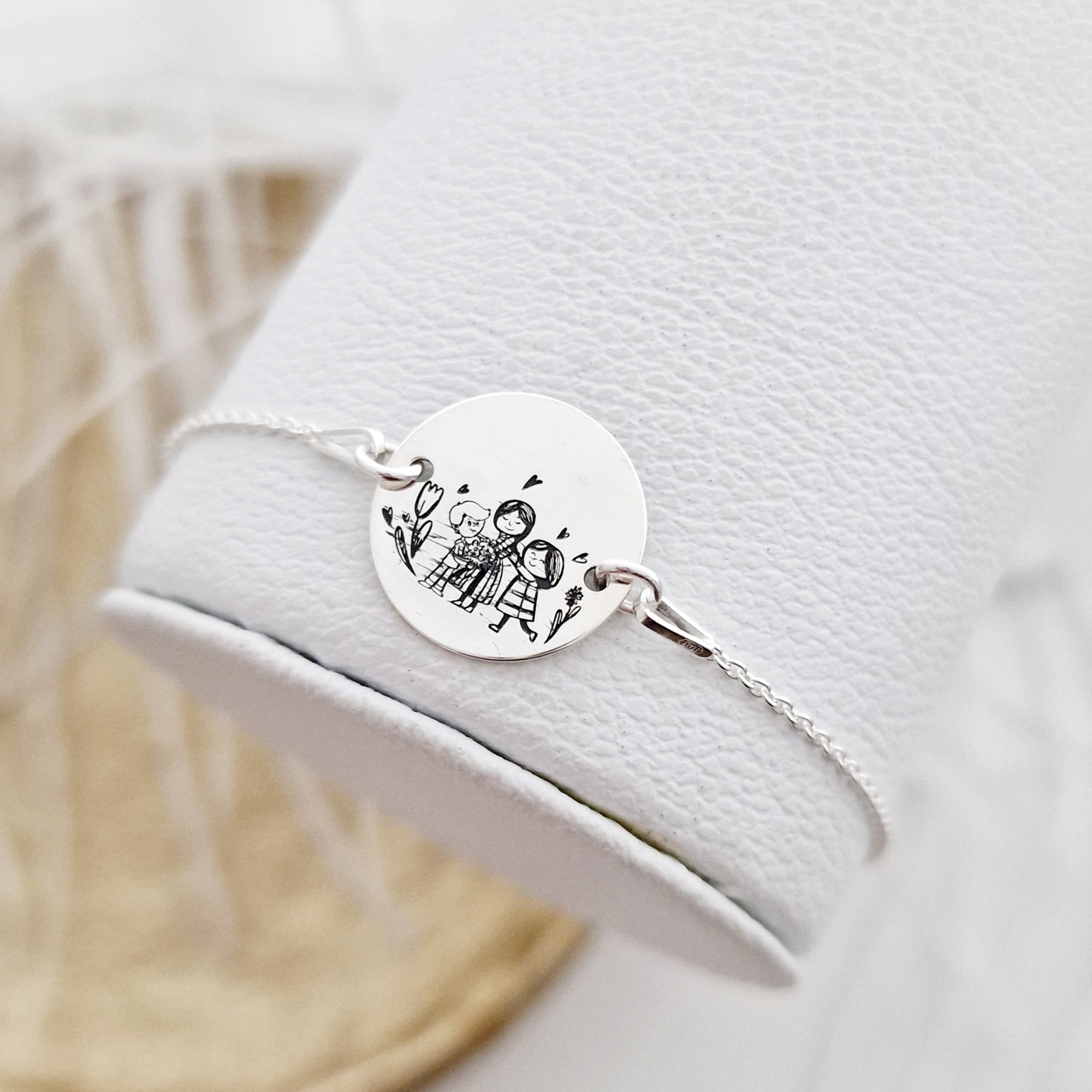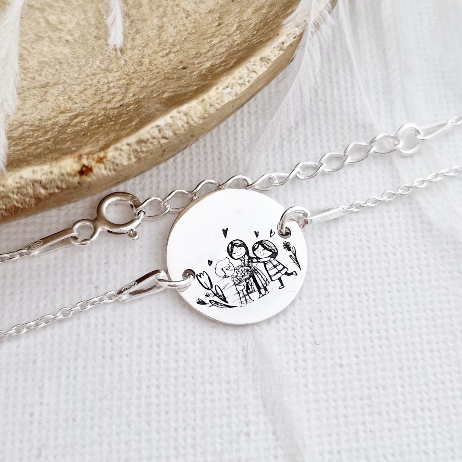 Bratara personalizata - Mama - fiica - fiu - Banut de 15 mm - Argint 925 - cu lantisor
