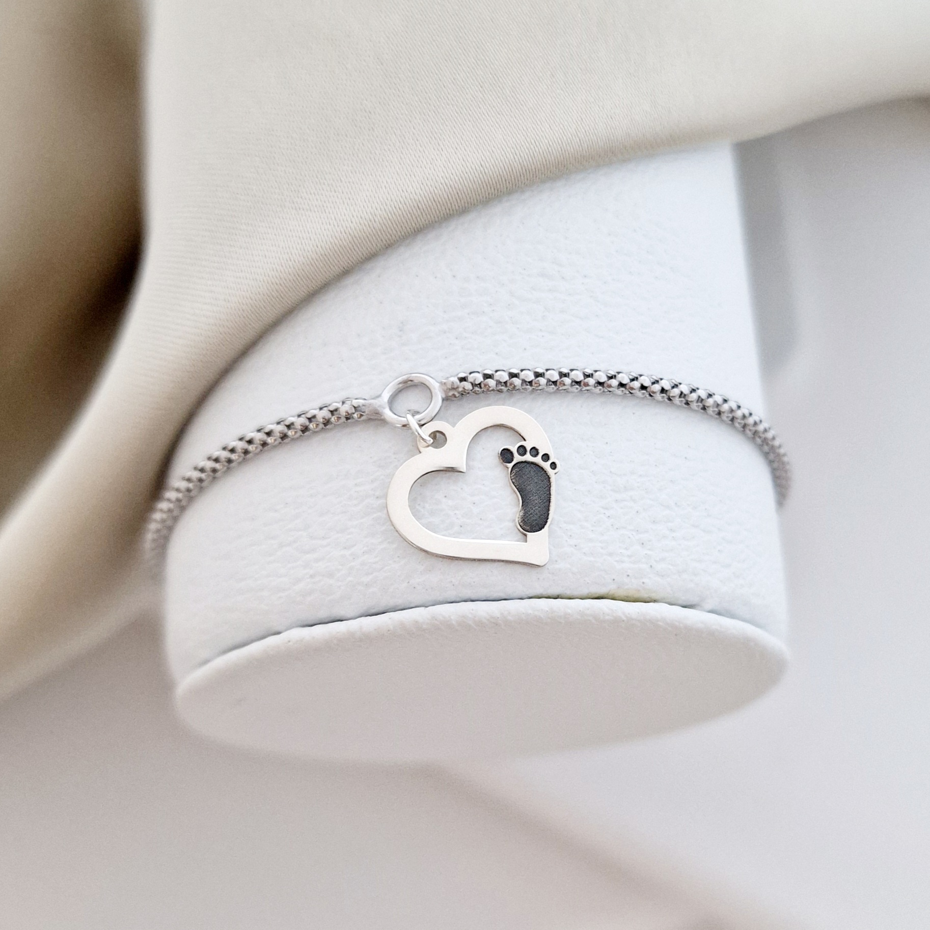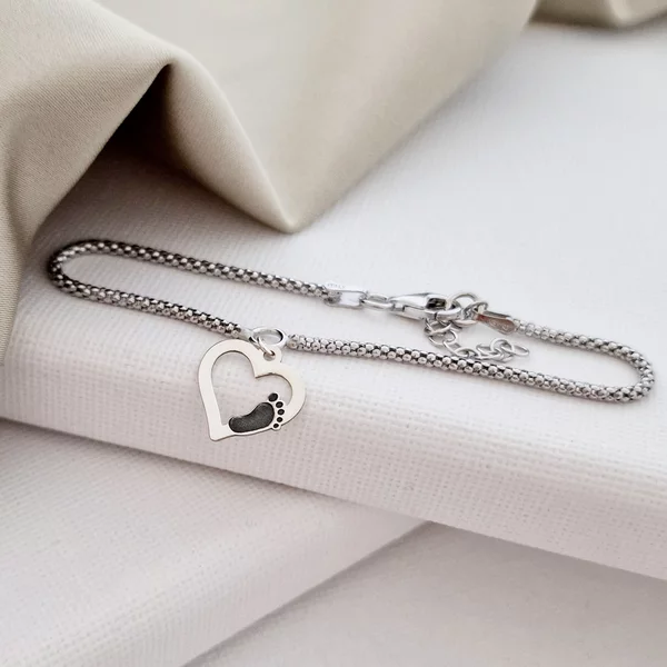 Bratara snake dama - Iubire materna - Charm contur inima cu piciorus - Argint 925