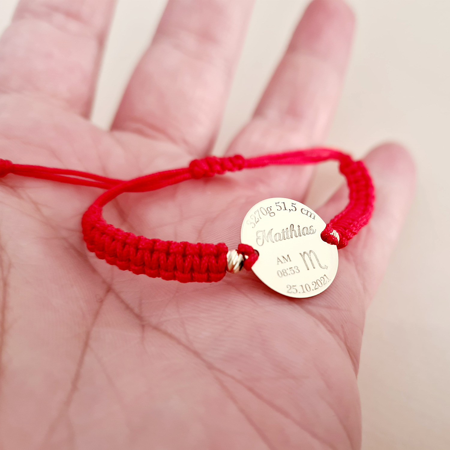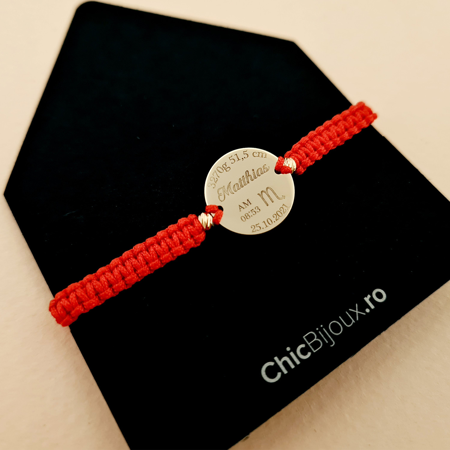 Personalizarea bratarii se face prin gravura cu laser de inalta precizie, direct pe placuta din aur sau argint. Poti adauga numele copilului, o data importanta, initiale, un mesaj (in functie de spatiu) sau un simbol drag. La bratari poti selecta lantisor de fetita sau baiat, precum si snurul in culoarea preferata, model impletit sau clasic