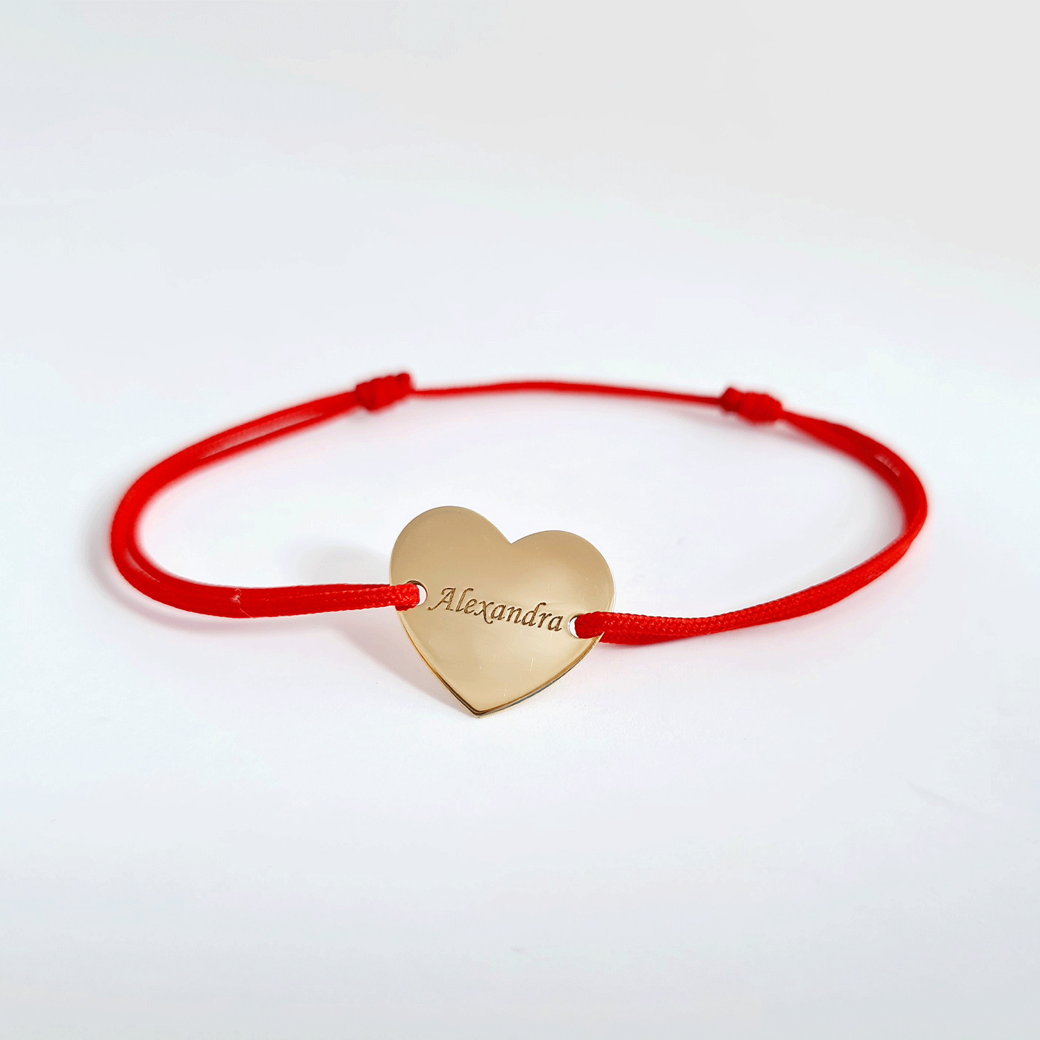 Bratara Inima de 15 mm - Personalizata cu nume/cuvant - Aur Galben 14K - snur reglabil